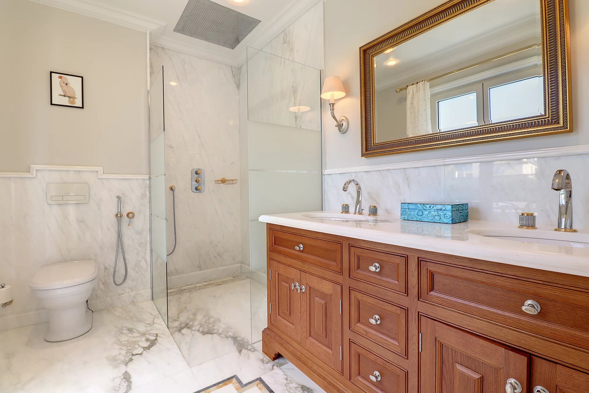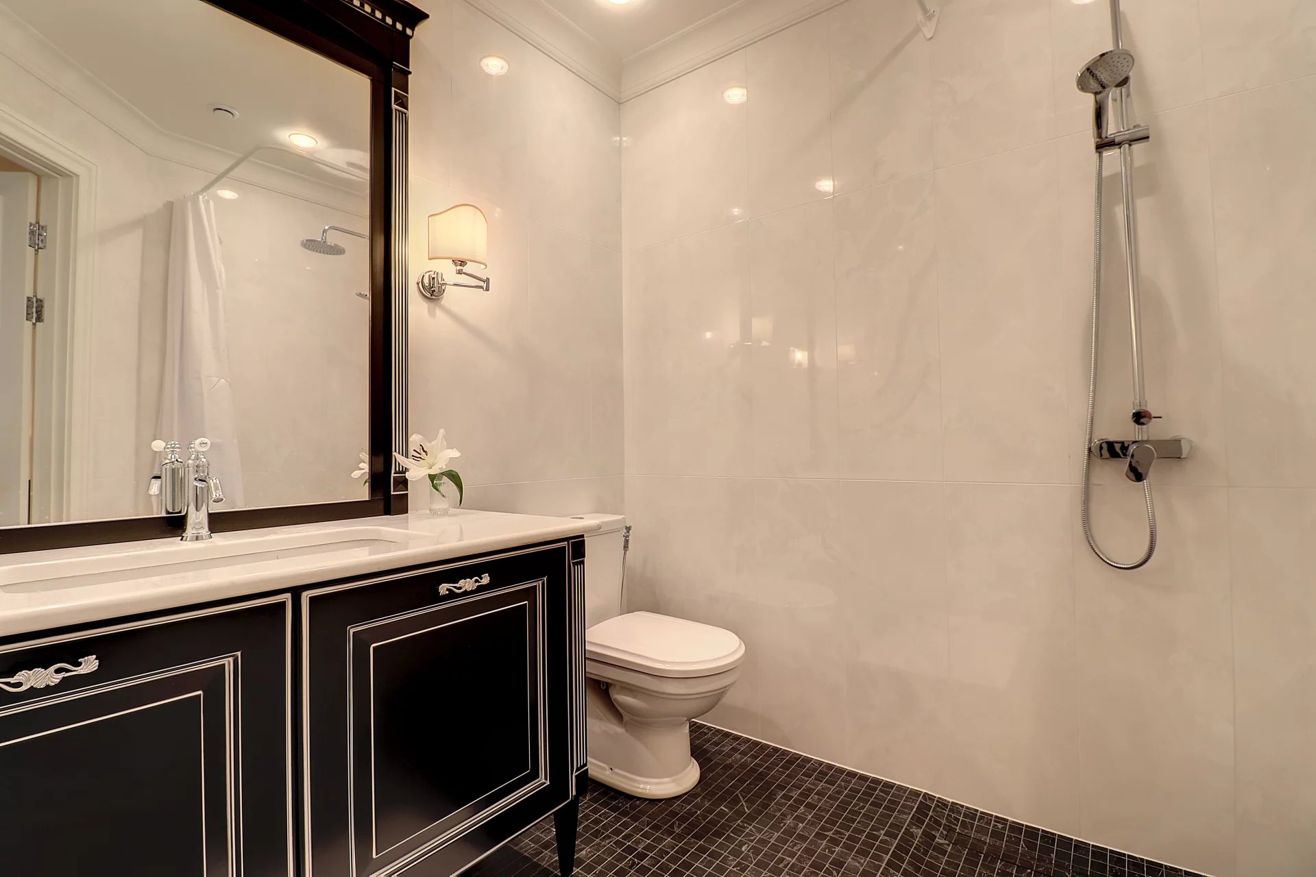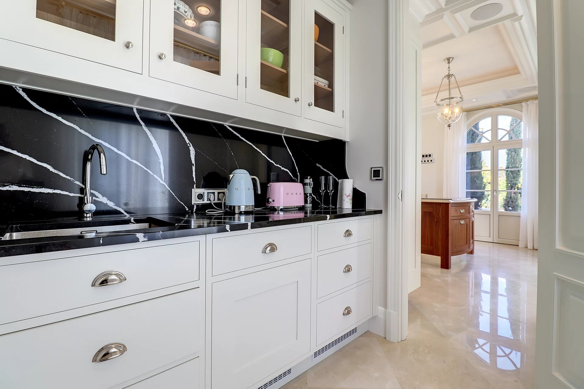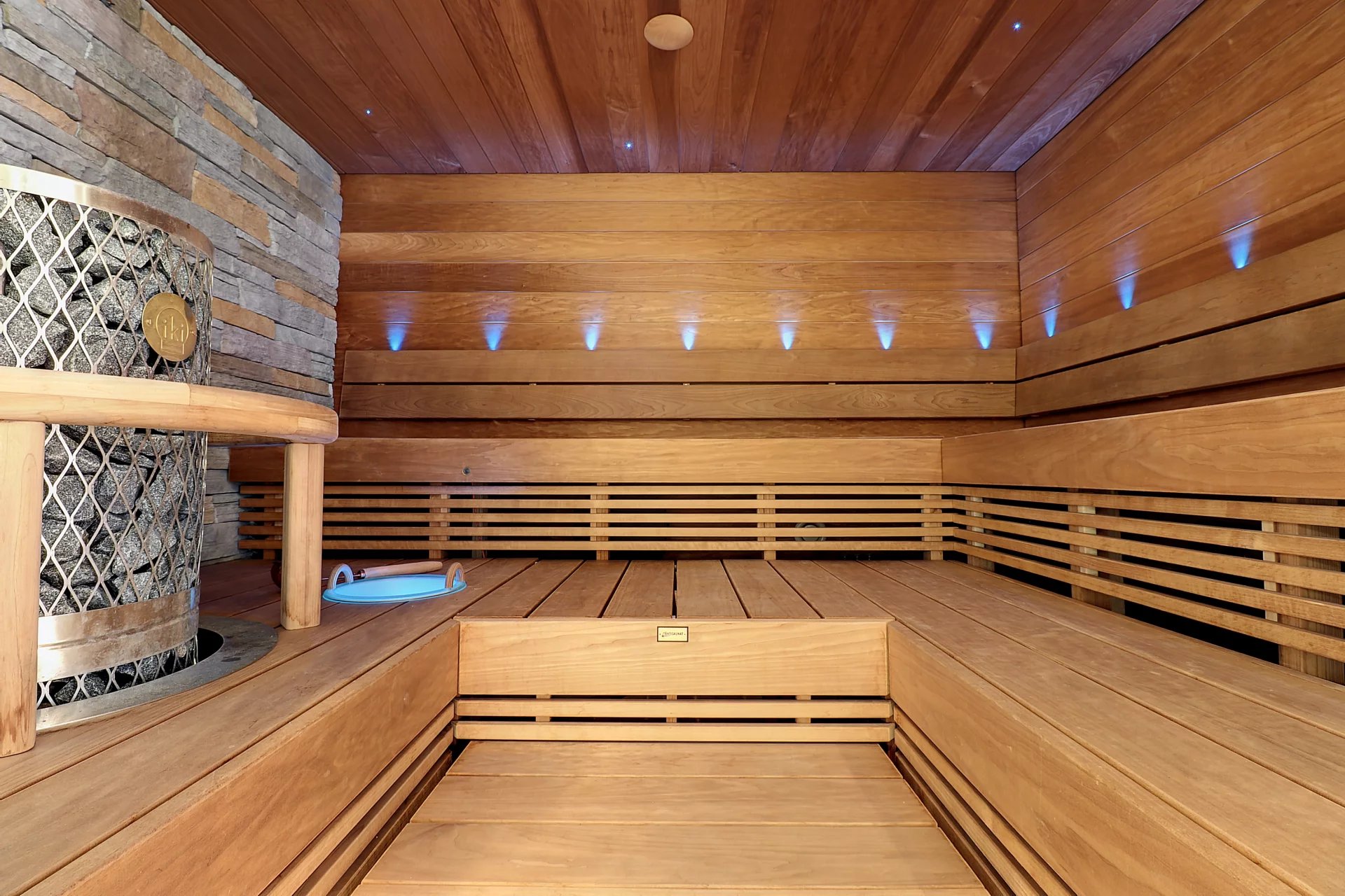 A l'étage inferieur, un coin reception avec un grand Bar Américain, Piscine intérieur chauffée, spa, hammam, salle de sport, salle de cinema, panic room, tout y est !