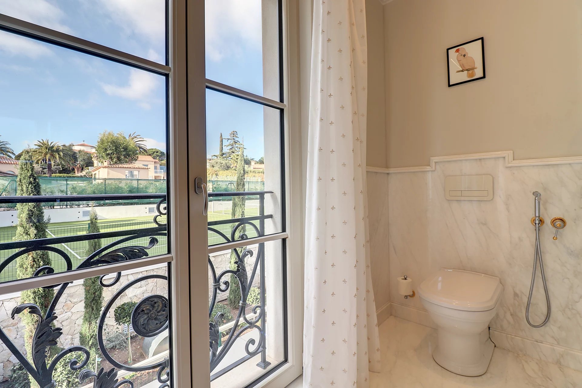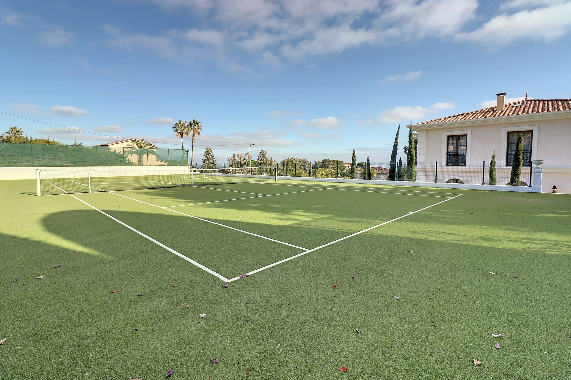A l'extérieur, beau jardin fleurie, piscine immense chauffée, terrain de Tennis et maison de gardien.