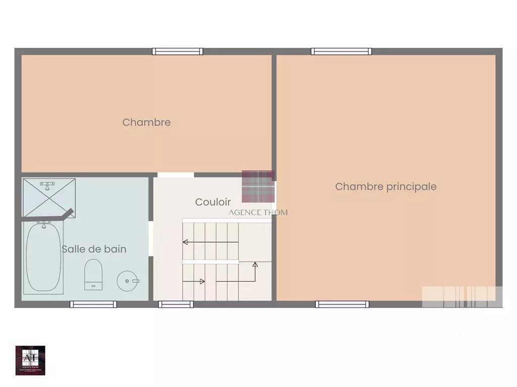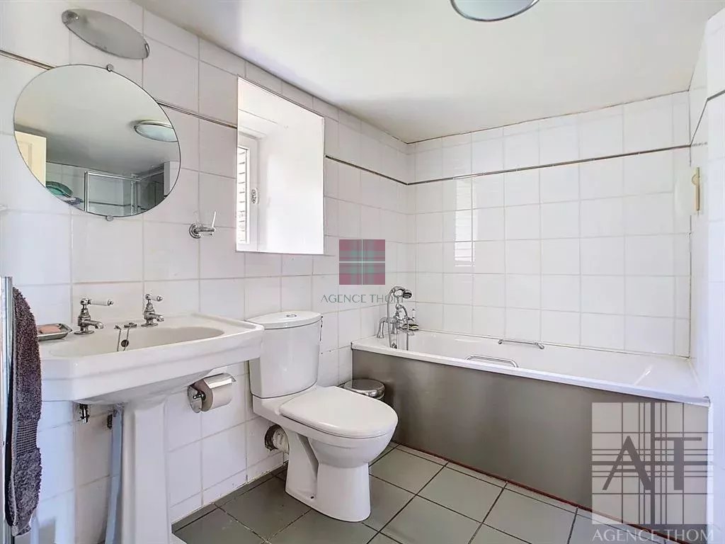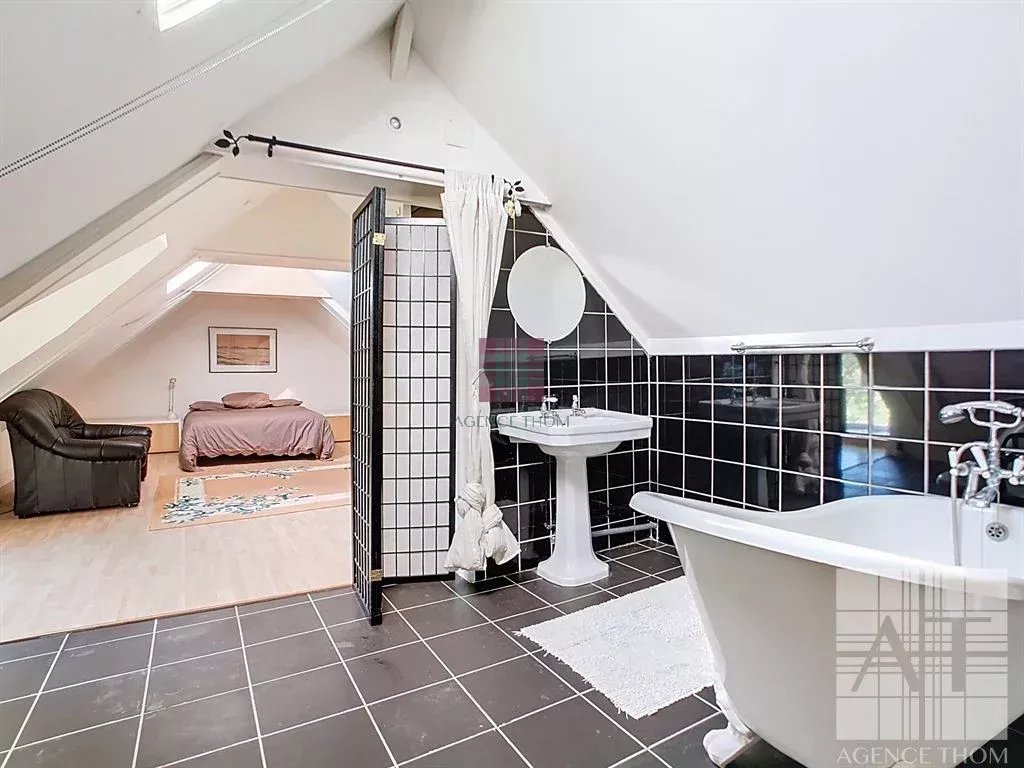 À létage, le palier dessert deux chambres baignées de lumière, orientées sud est, ainsi quune salle de bain équipée dune baignoire, dune douche et de WC. Le dernier niveau propose une grande chambre supplémentaire et une seconde salle de bain avec WC, idéale pour accueillir famille ou invités.