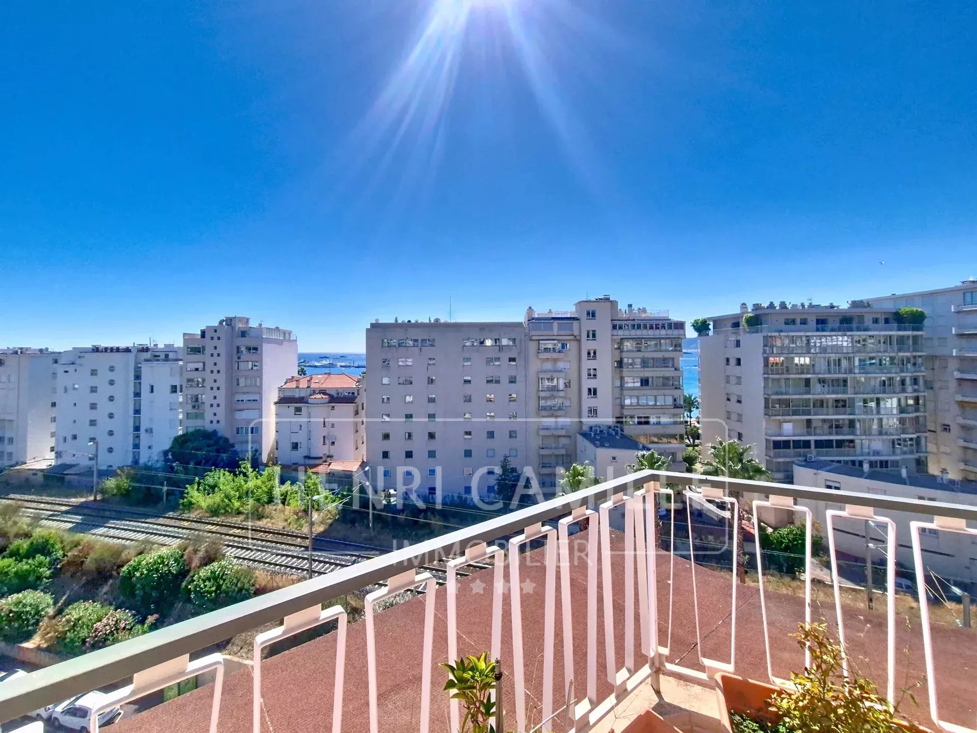 En dernier étage d'une résidence sécurisée située à 5 mn à pied des plages de la Croisette et de la Rue d'Antibes, 3/4 pièces de 87 m² LC (120 m² habitables) composé d'une entrée, 2 chambres, 1 salle de douche, 1 buanderie, un double séjour, un toilette, une cuisine séparée. 2 loggias de plus de 30 m² et une très grande terrasse de 57 m² exposée Sud et Est. Des travaux de rénovation sont à prévoir. Cave et parking. Toutes les commodités à pied (bus, commerces...).
