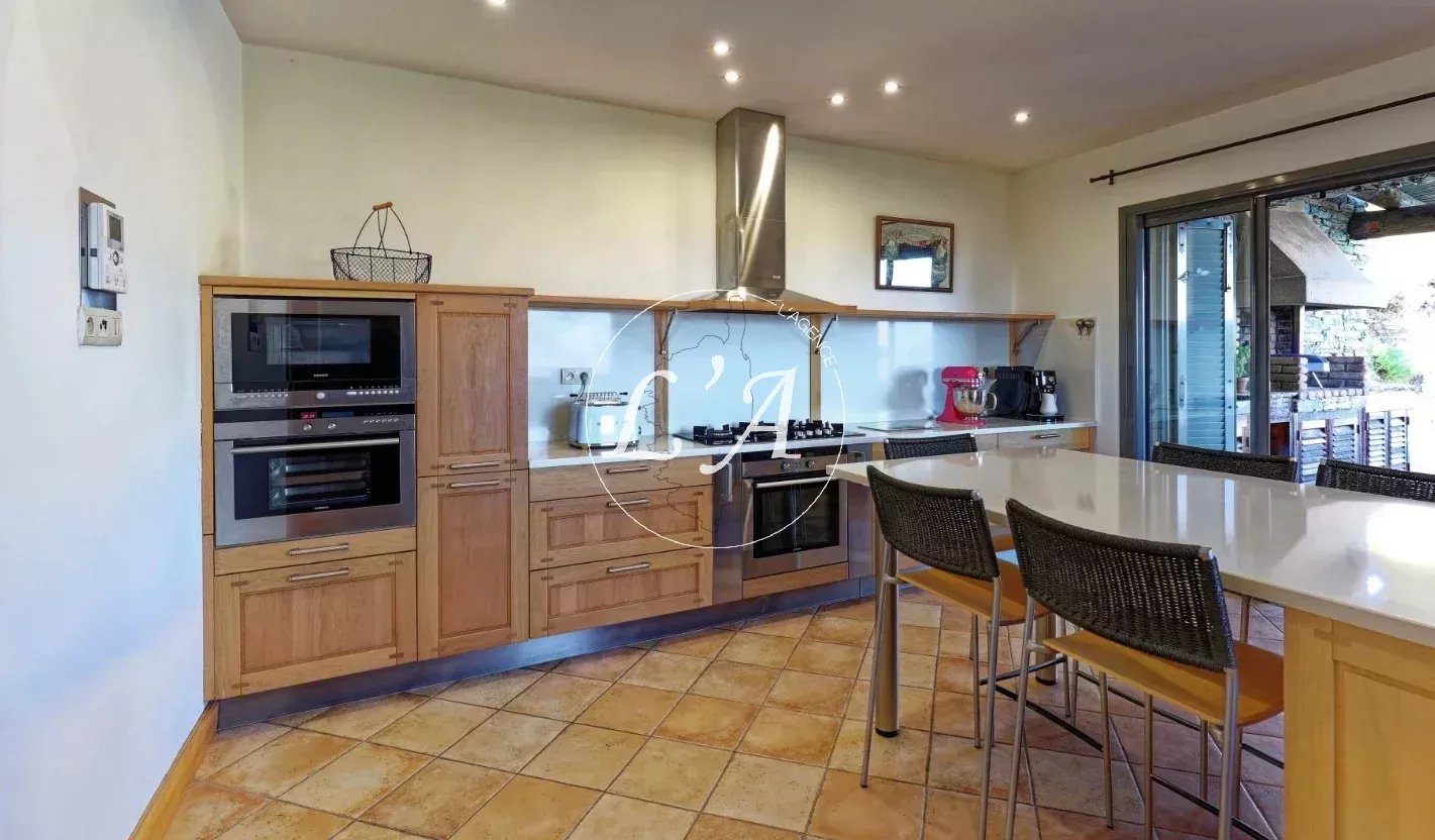Dès votre entrée, vous serez immédiatement conquis par la noblesse des matériaux : pierres apparentes taillées avec soin, boiseries raffinées, larges baies vitrées ouvrant sur un panorama saisissant.