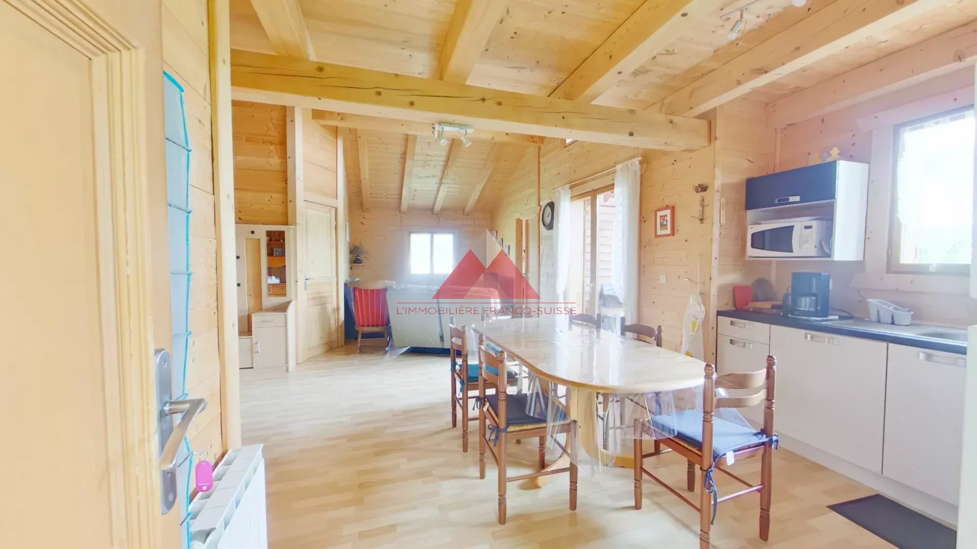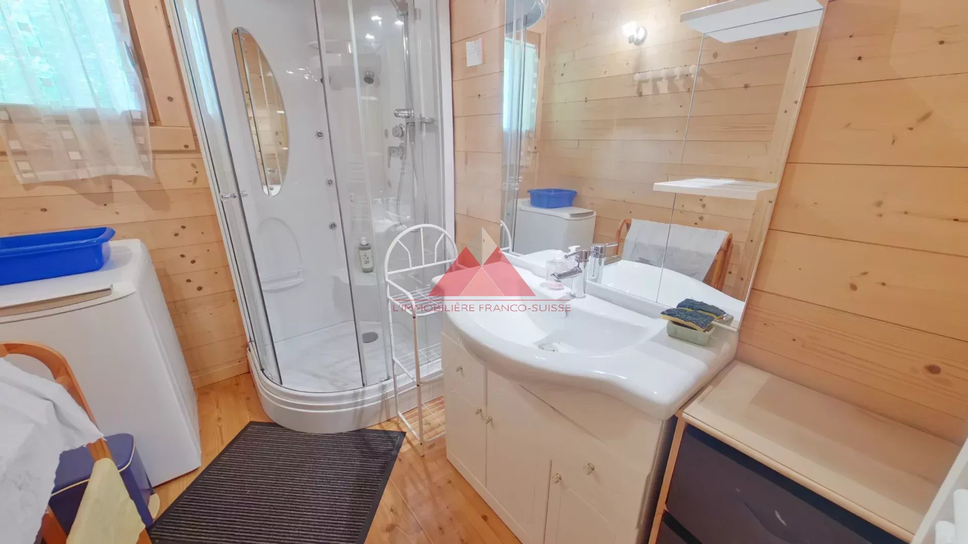 Chalet individuel de 2009, de 55m² habitable et 70m² en surface totale, disposant d'un parcelle de 352m², d'une belle terrasse exposée plein sud et d'un local pour rangement.