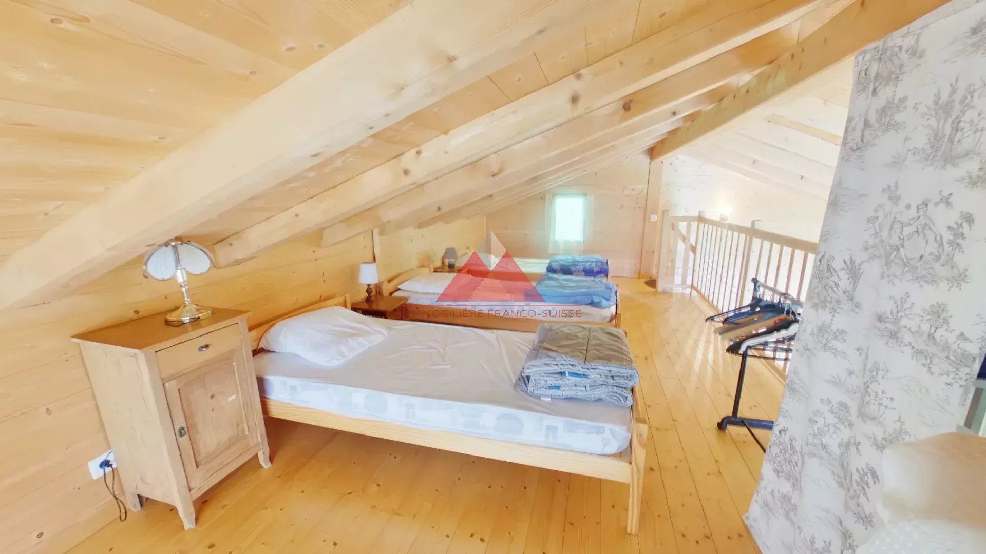 A l'étage une grande mezzanine dortoir avec mansarde.