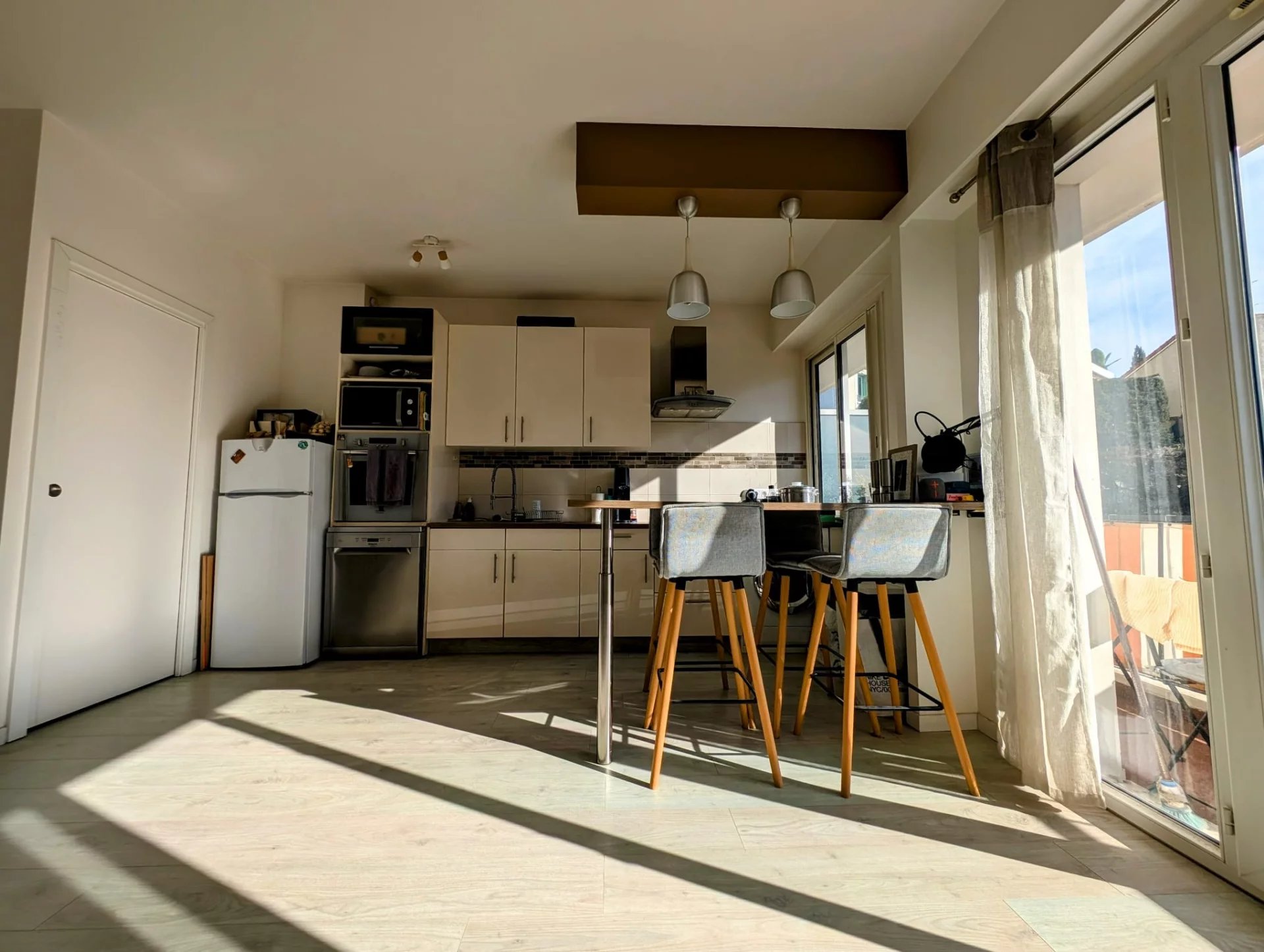 Magnifique appartement refait à neuf dans le quartier prisé de Cimiez, dans une copropriété calme et arboré. Composé d'une cuisine ouverte sur un beau séjour lumineux donnant sur une terrasse de 9 m2, une salle de bain, un cellier, un wc séparé, une cave et une place de parking fermée dans l'immeuble. Possibilité d'acquérir un garage en supplément Charges de copropriété : 233,00€/mois (chauffage, eau, entretien des parties communes et espaces verts...) Les honoraires sont à la charge du vendeur. Les informations sur les risques auxquels ce bien est exposé sont disponibles sur le site Géorisques : georisques.gouv.frnt.