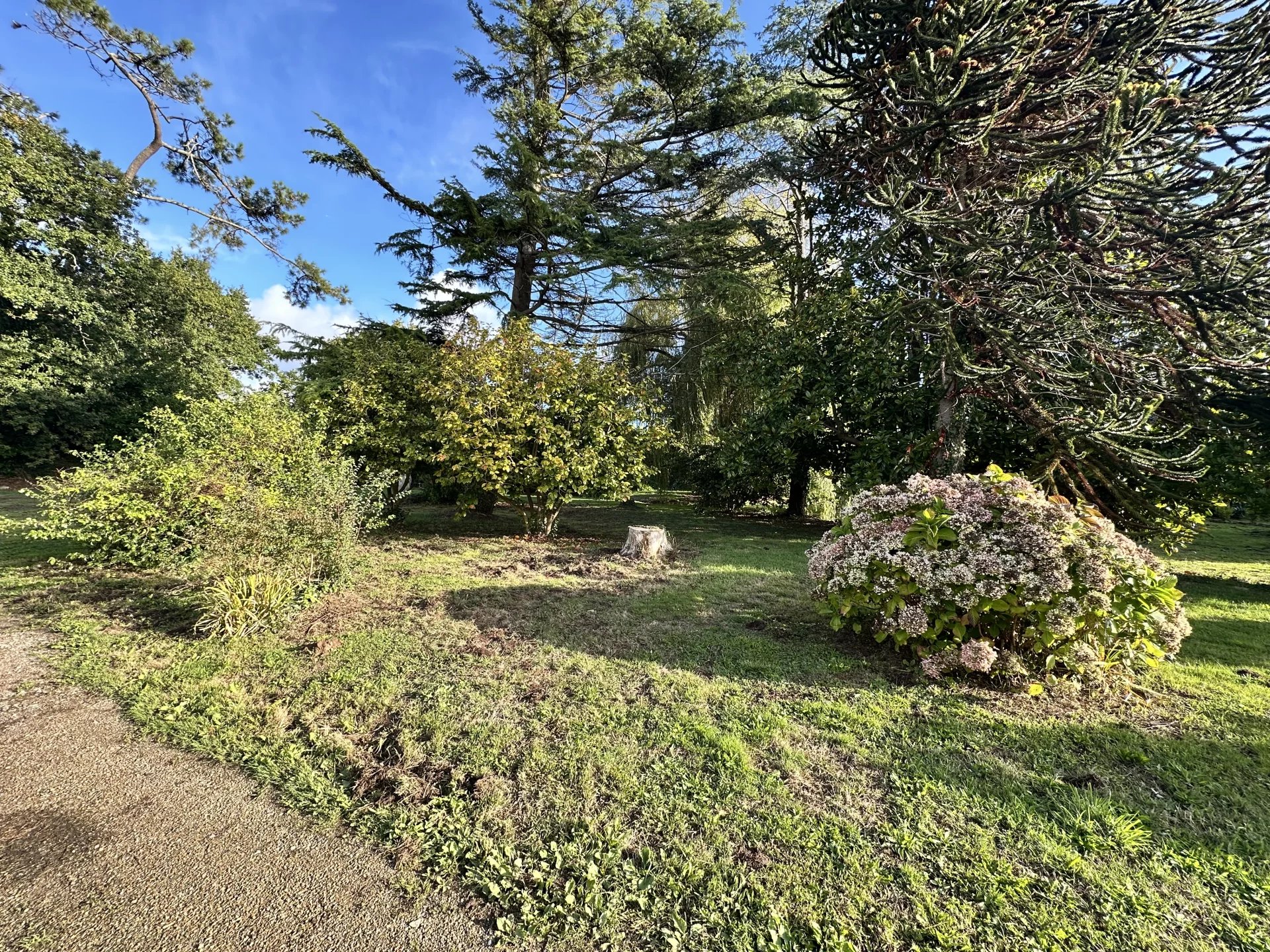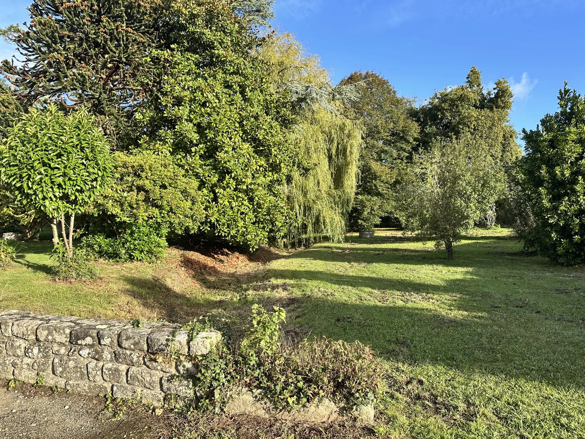 Nichée dans la verdure avec son parc de 4739 m², pour un projet de rénovation, cette maison actuellement se compose de trois chambres, une pièce de vie orientée Sud, SdB, toilettes, cuisine, sous-sol complet et atelier dans le jardin.