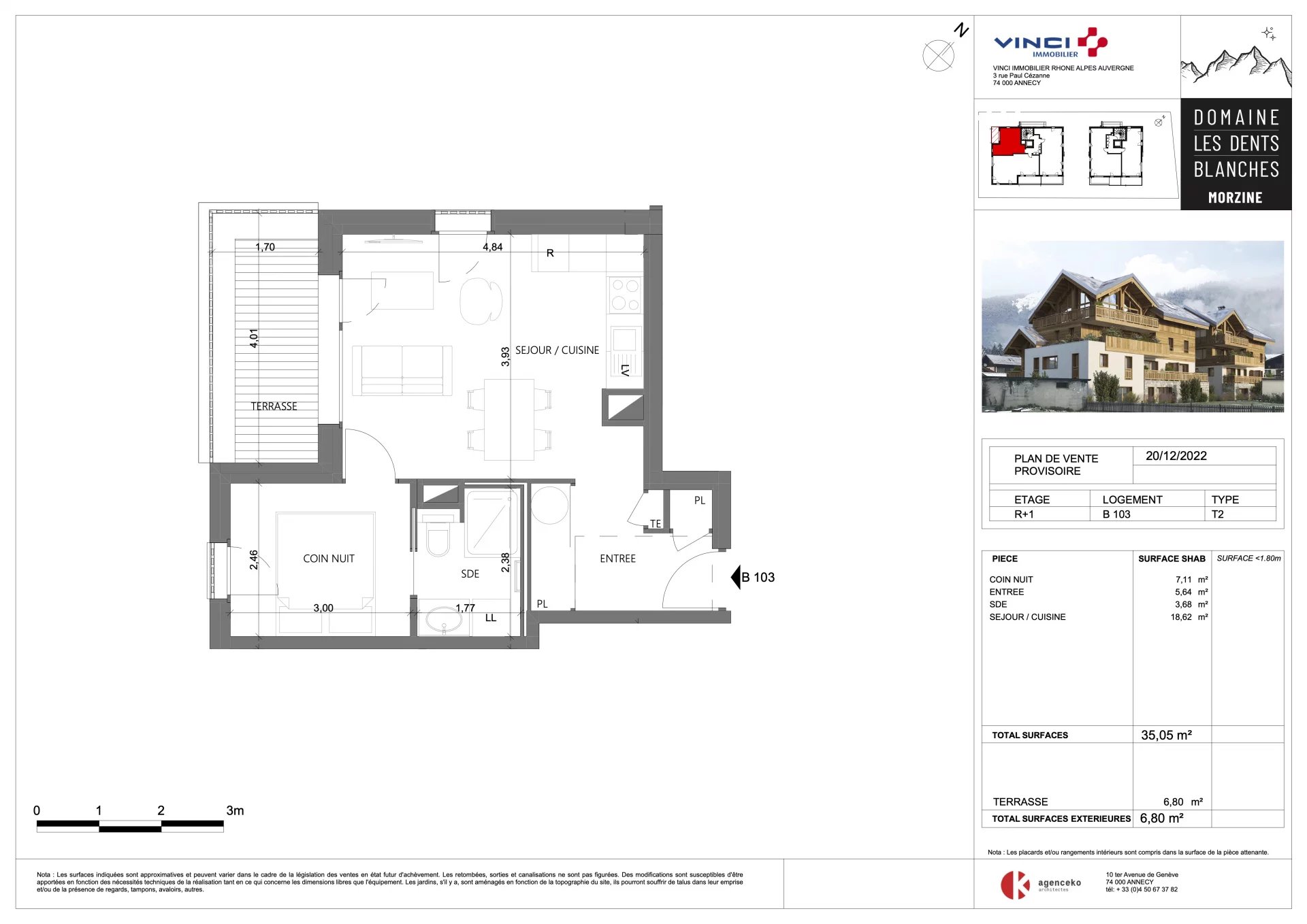 Appartement d'une chambre de haute qualité dans une nouvelle construction au centre de Morzine. Situé à quelques pas du centre de Morzine, cet emplacement est idéal de par son calme, son ensoleillement et sa proximité. Ce secteur offre une vue panoramique sur Le Pléney et Super Morzine. Tout ce que la station puisse offrir est au pas de votre porte. Pour ceux à la recherche de tranquillité et de facilité d'accès aux pistes, c'est l'opportunité idéale. Ces nouvelles résidences de 3 niveaux sont composées de 14 appartements de haut standing, allant de 1 à 5 chambres, avec des équipements et des finitions de grande qualité. Cet appartement est doté d'une cuisine et d'une salle de bains entièrement équipées, d'une cave et d'une place de parking extérieure. L'appartement B103, situé au premier étage, offre une chambre à coucher, une salle de bains, un salon/cuisine ouvert sur une surface totale de 35,05 m². L'appartement dispose également d'une terrasse de 6,80 m² orientée sud-ouest. Vous pouvez personnaliser votre appartement selon un catalogue de finitions disponible et créer votre appartement selon votre goût. Les caractéristiques comprennent : - Réduction des frais de notaire (2,2%) - Récupération de la TVA (20%) - Chauffage au sol - Vendu avec des garanties de construction de dix ans - Isolation thermique et acoustique optimale - Faible consommation d'énergie Veuillez noter : les photos sont destinées à démontrer la qualité et le style de construction des projets précédents du promoteur. La propriété est couverte par le règlement de copropriété. Une opportunité rare d'acheter dans le projet. Veuillez nous contacter avec les détails de vos besoins et nous vous proposerons des appartements correspondant à vos critères. Date de livraison: 2ème Trimestre 2025 Les informations sur les risques auxquels ce bien est exposé sont disponibles sur le site Géorisques http://www.georisques.gouv.fr