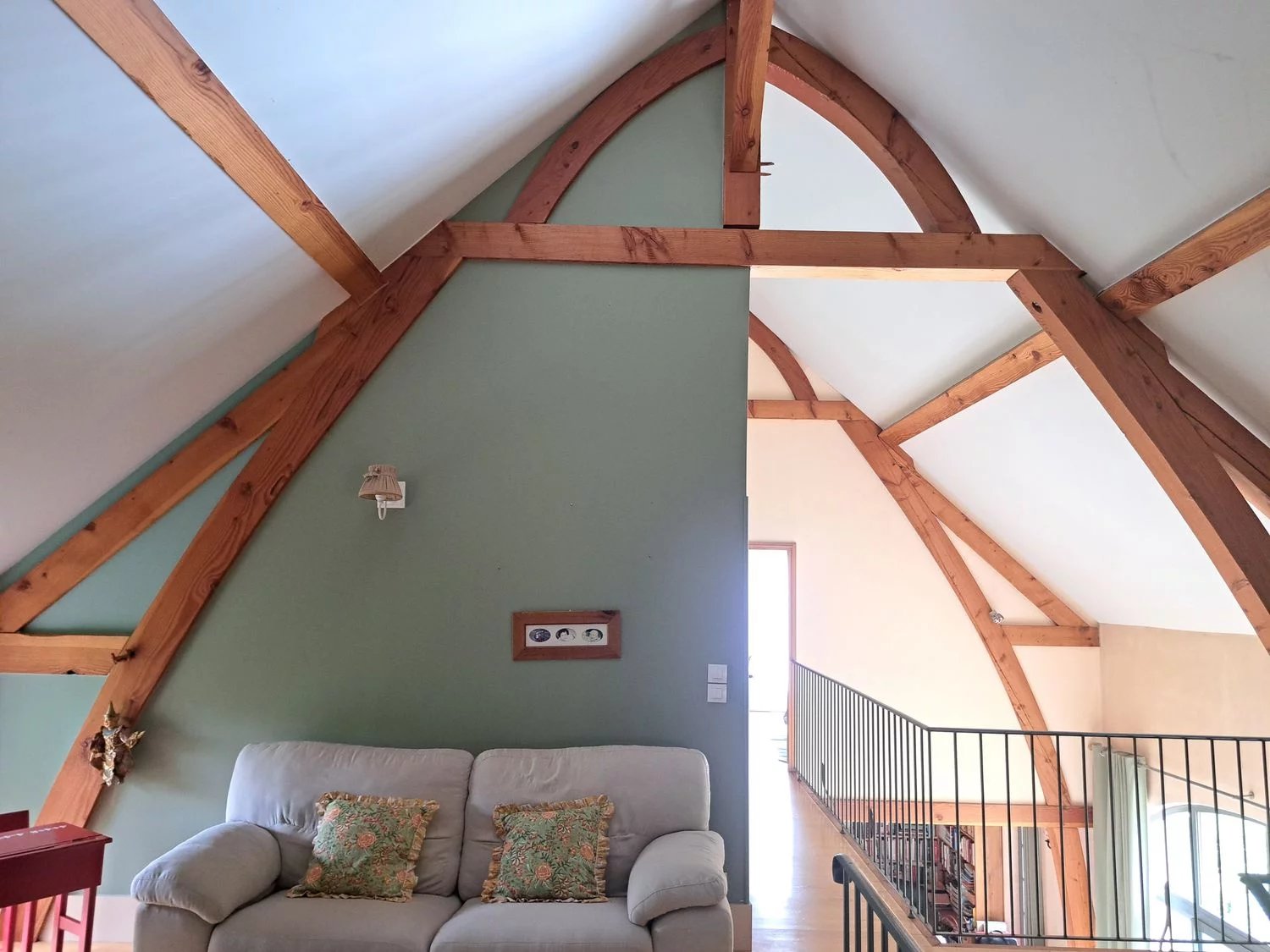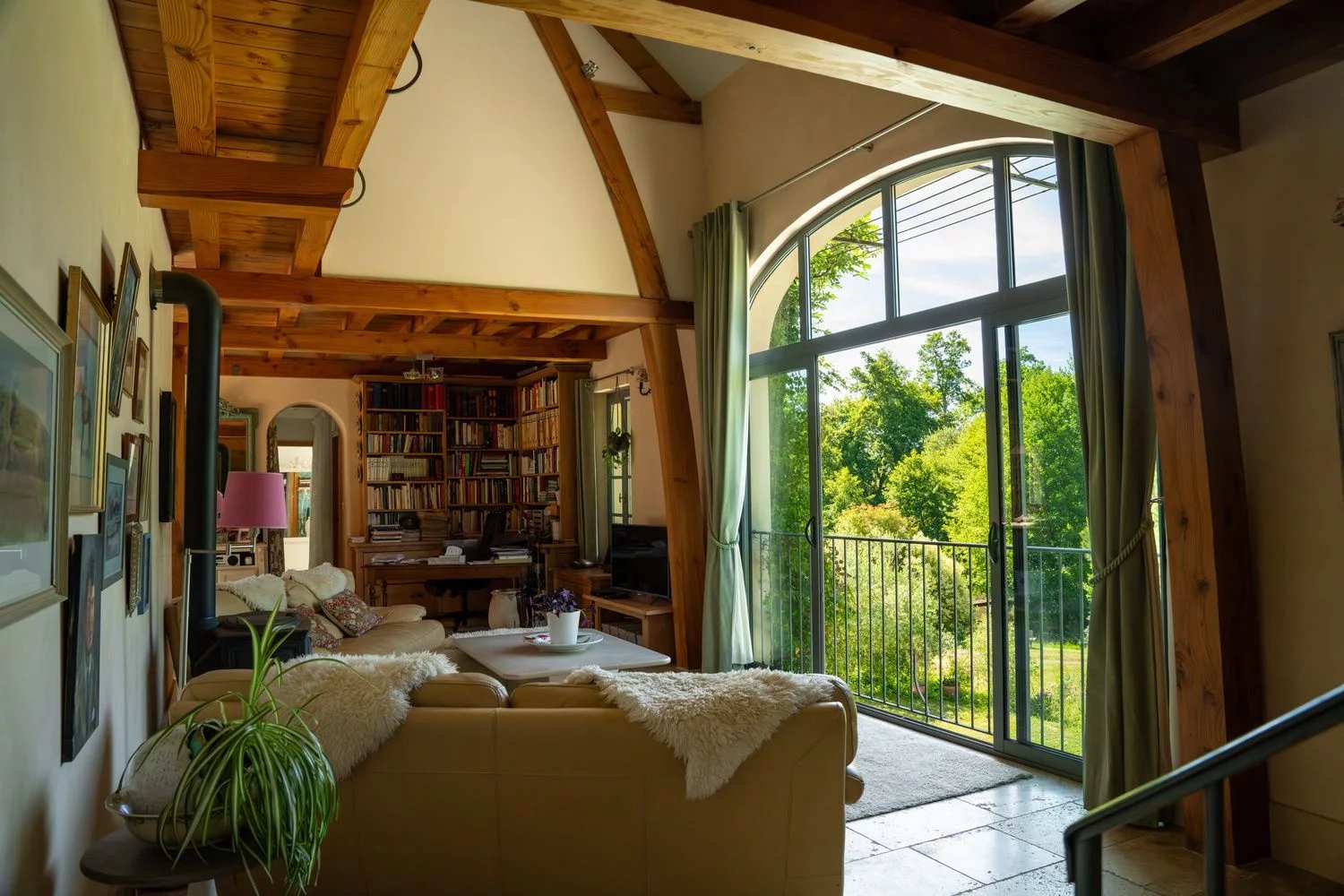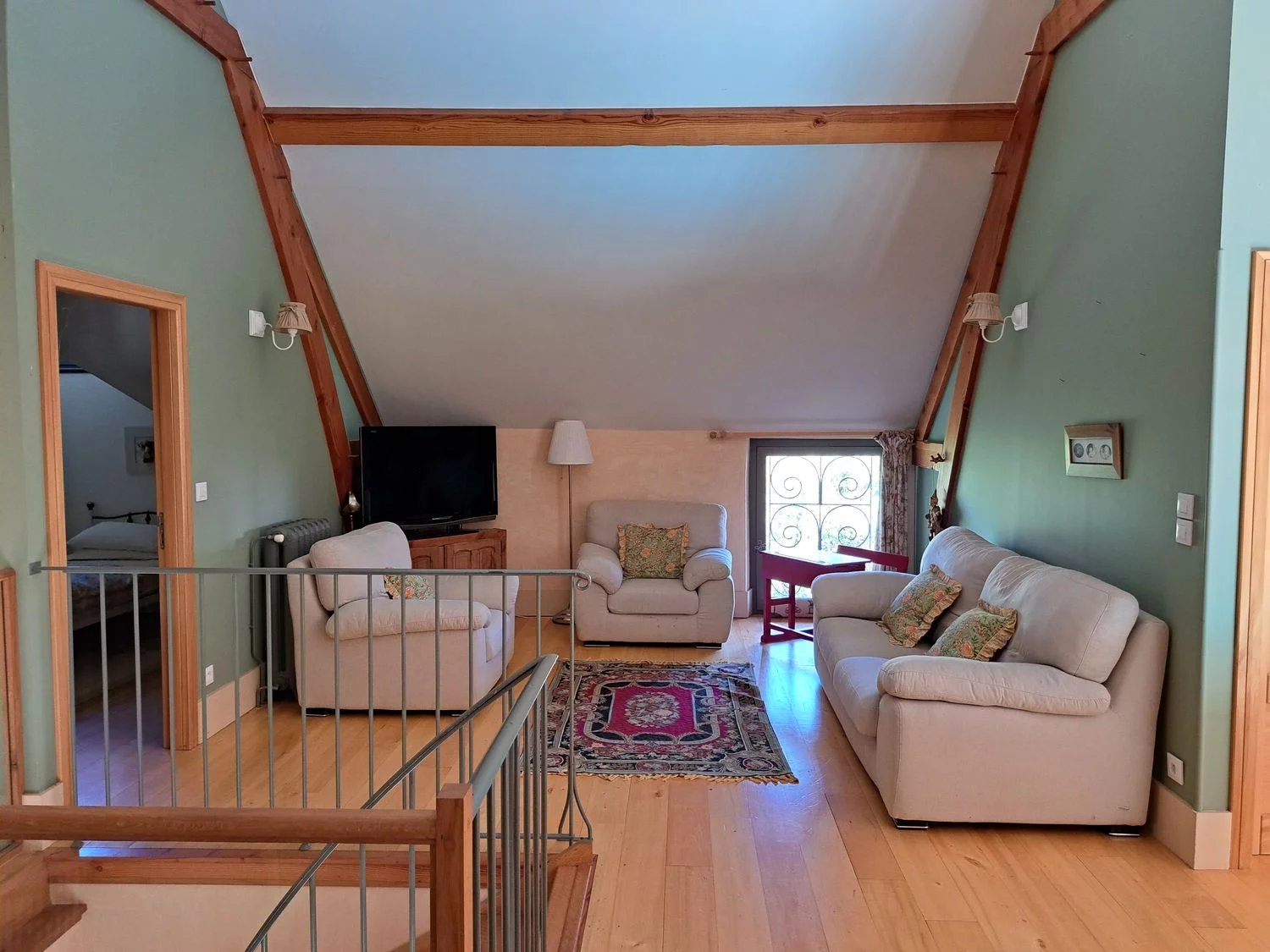 La maison bénéficie également d' un terrain de 1,5 hectare avec un étang, idéal pour la détente ou la pratique d'activités aquatiques. Un espace bucolique avec une serre permet de protéger vos plantes en hiver, tandis qu'un parc clôturé accueille des chevaux, offrant un cadre idéal pour les amoureux de la nature et de l'élevage.