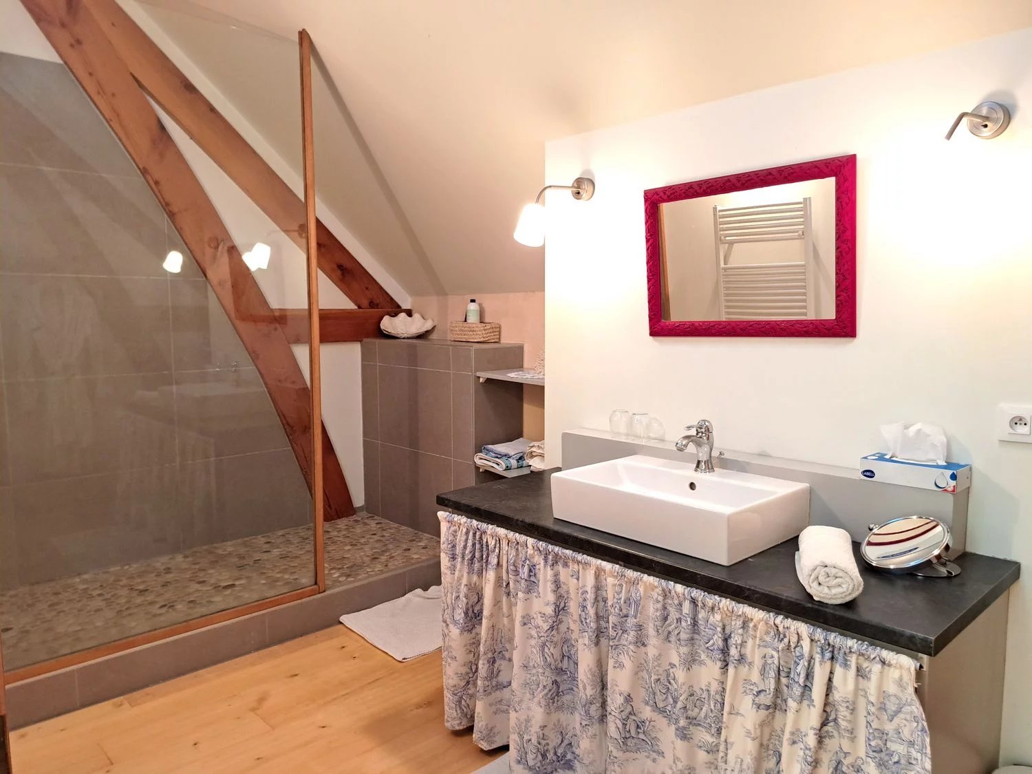 Au premier étage, un palier distribue trois charmantes chambres, idéales pour une famille, ainsi qu'une grande salle d'eau, parfaite pour accueillir plusieurs occupants ou invités.