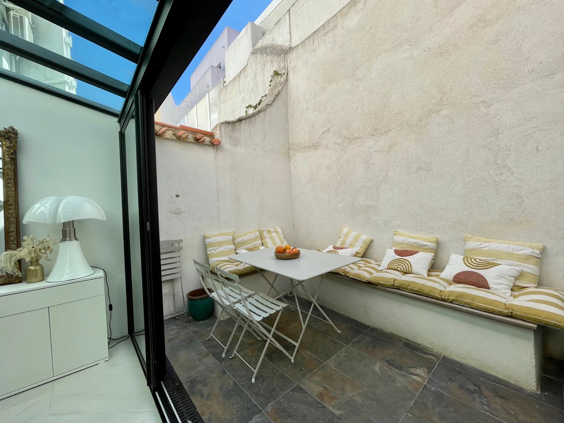 immobilière Côté Mer vous propose dans le très recherché quartier de Samatan, à deux pas de la mer et à seulement 5 minutes de la plage des Catalans, cette maison entièrement rénovée en 2020 allie confort moderne et cachet du secteur. Édifiée sur 2 niveaux plus combles aménagés, elle se compose : - d’un séjour lumineux ouvrant sur un patio exposé plein sud de 10 m². - d’une cuisine avec aperçu mer. - à l’étage, une chambre principale bénéficiant d’une belle vue mer, une chambre enfant, ainsi qu’une salle d'eau spacieuse. - enfin, des combles aménagés offrant environ 10 m² à hauteur d’homme viennent compléter ce bien. La maison a été entièrement isolée et climatisée, garantissant confort et performance énergétique. Idéalement située, elle profite d’un environnement calme et prisé, à proximité de la Place Sainte-Eugène, des commerces, écoles et axes autoroutiers. Une place de parking en location est disponible à seulement 200 mètres. Un bien rare à la vente dans ce quartier emblématique que vous pouvez visiter avec David 06 85 36 95 24. Honoraires de l'agence à la charge du propriétaire.