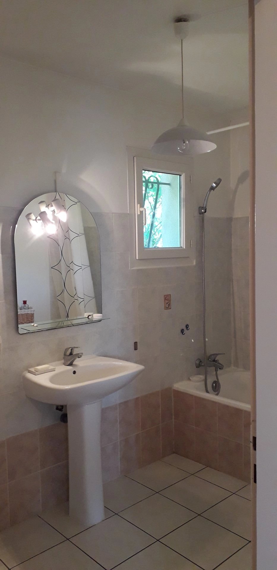 Villa mitoyenne de 93,67 m² de surface au sol totale dont 86,90 m² de surface totale habitable sur un terrain clos et arboré. Au rez-de-chaussée : un salon/séjour ouvert sur la cuisine aménagée et équipée de plaque de cuisson, hotte aspirante et four, un wc et un cellier. A l'étage : Palier, 3 chambres, wc et salle de bain (baignoire, lavabo sur pied).