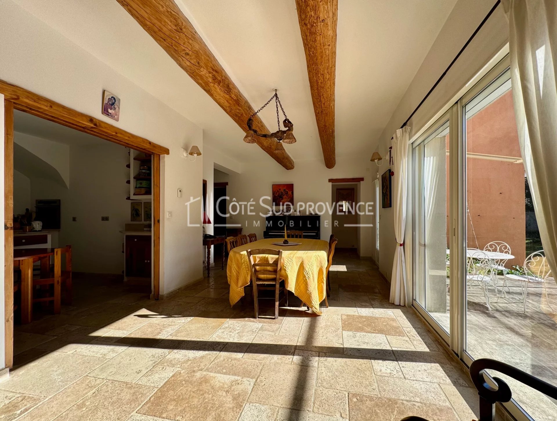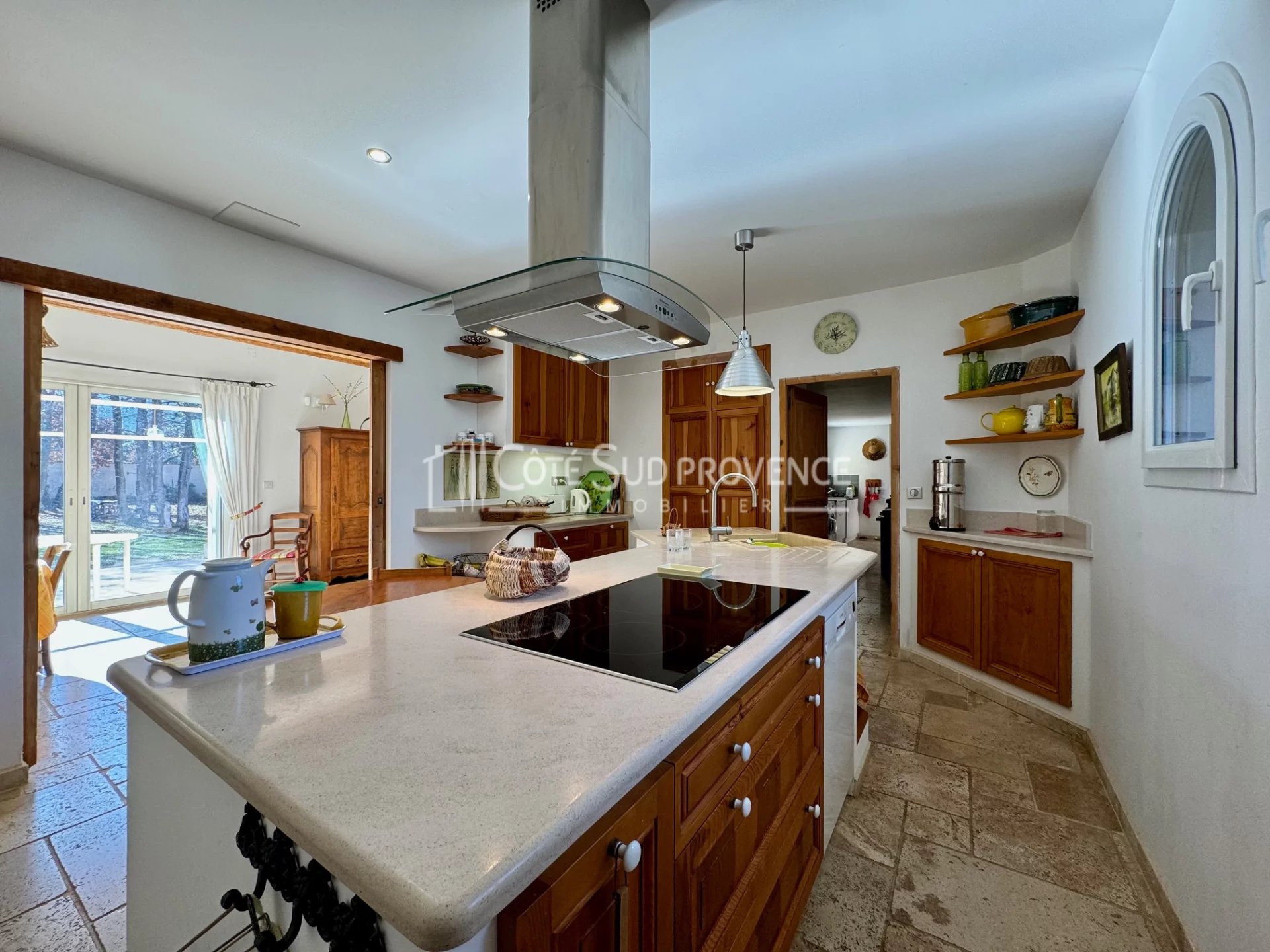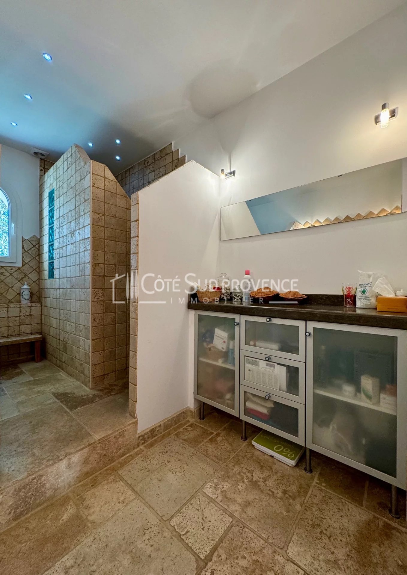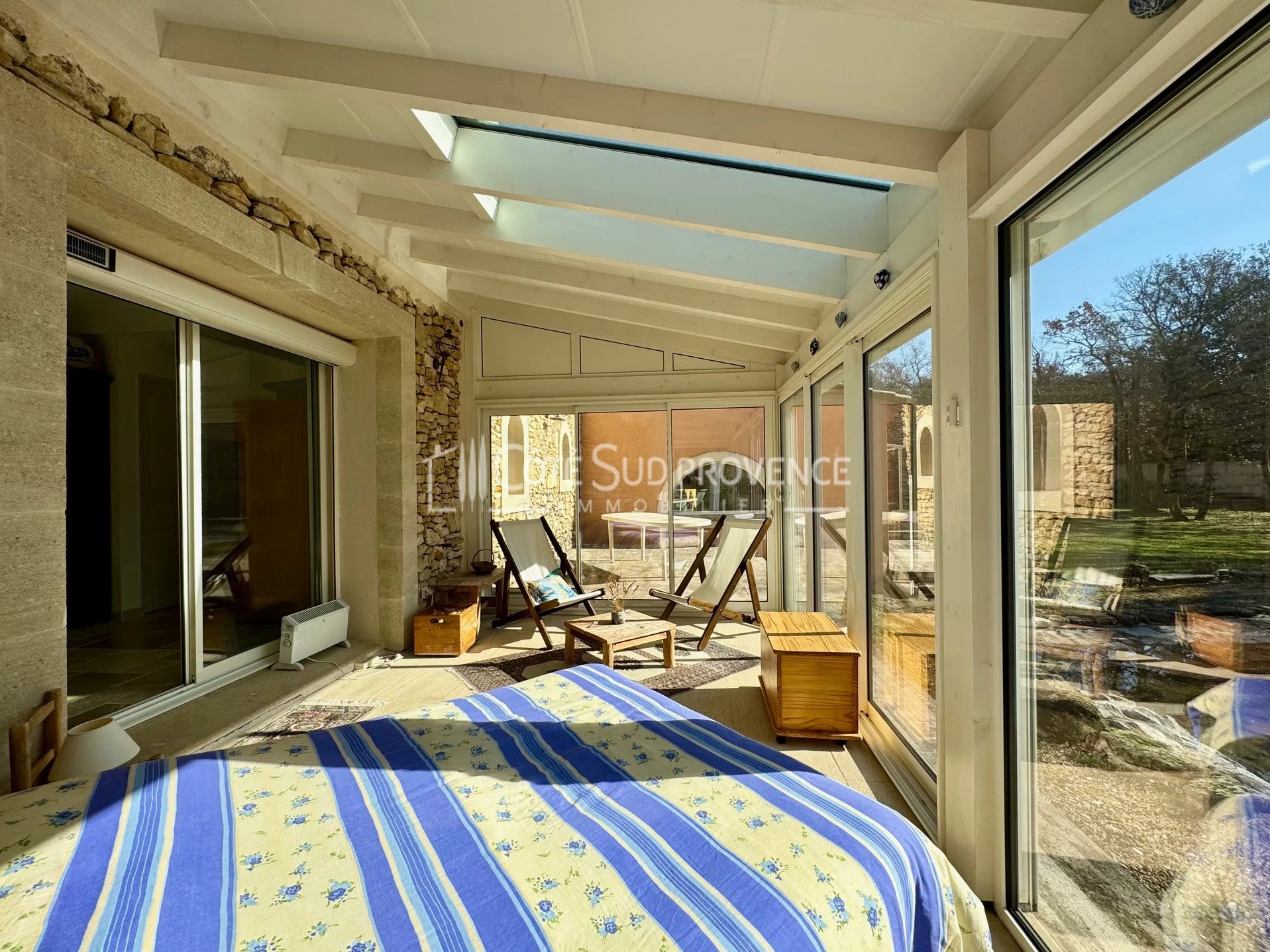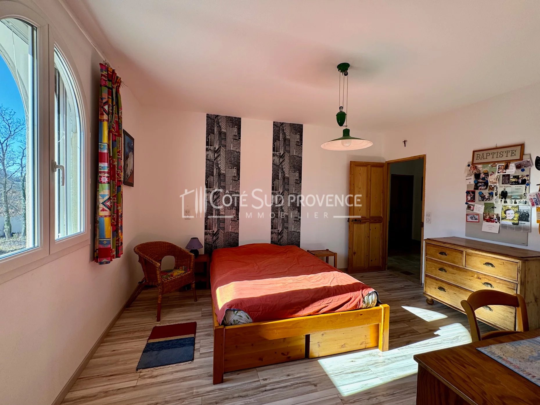 A 40 mn d'Avignon TGV, 3 mn de tous les commerces, secteur résidentiel pour cette Villa d’environ 250 m² sur deux niveaux construite en 2008 avec double garage et piscine naturelle. Hall d'entrée, cuisine, séjour , salon cheminée, 5 chambres, 4 salles d'eau, chalet bois indépendant habitable, gîte attenant et double garage, l’ensemble sur un terrain arboré et clos de murs avec piscine bassin