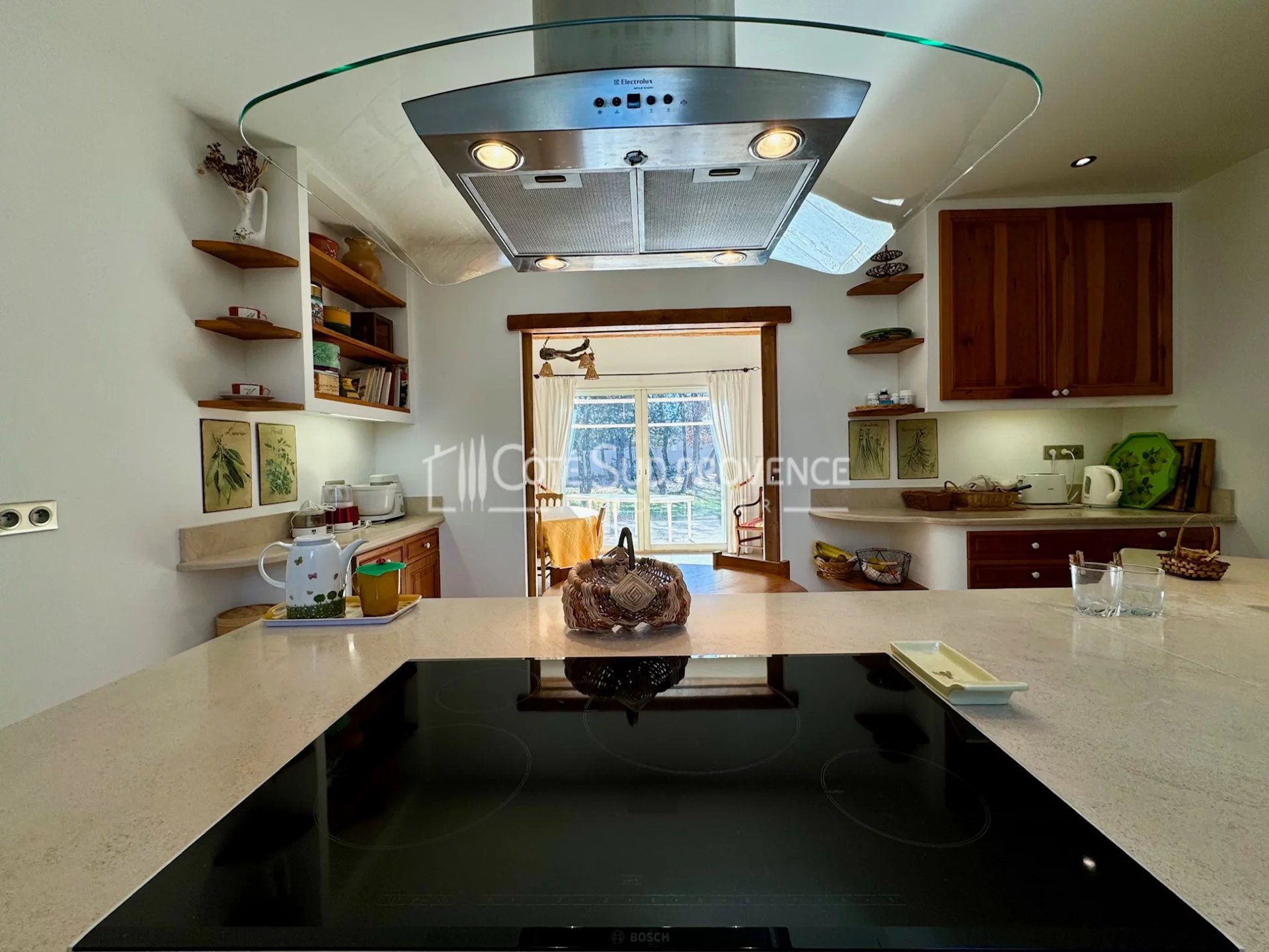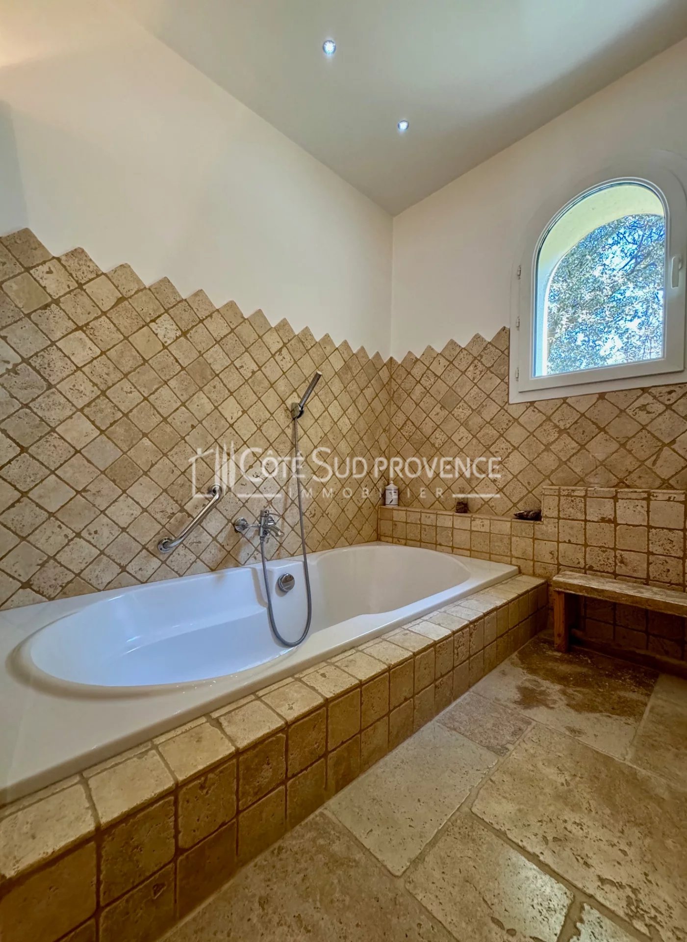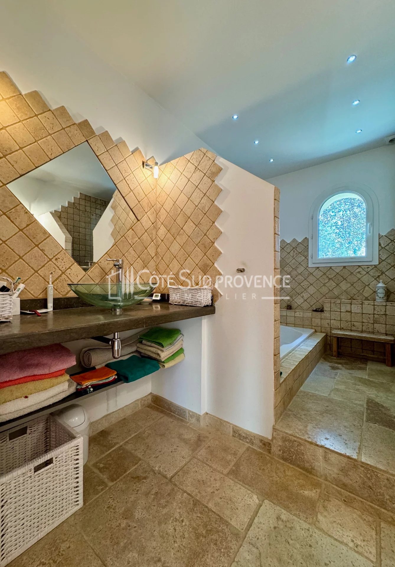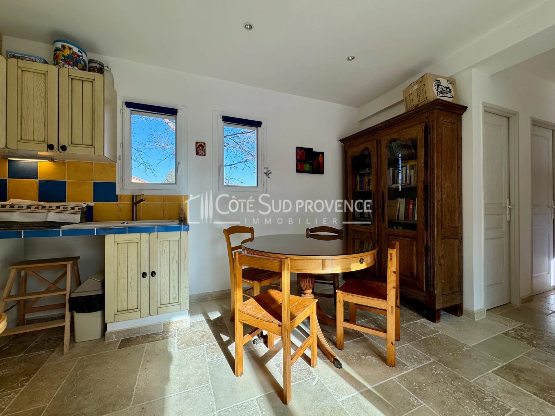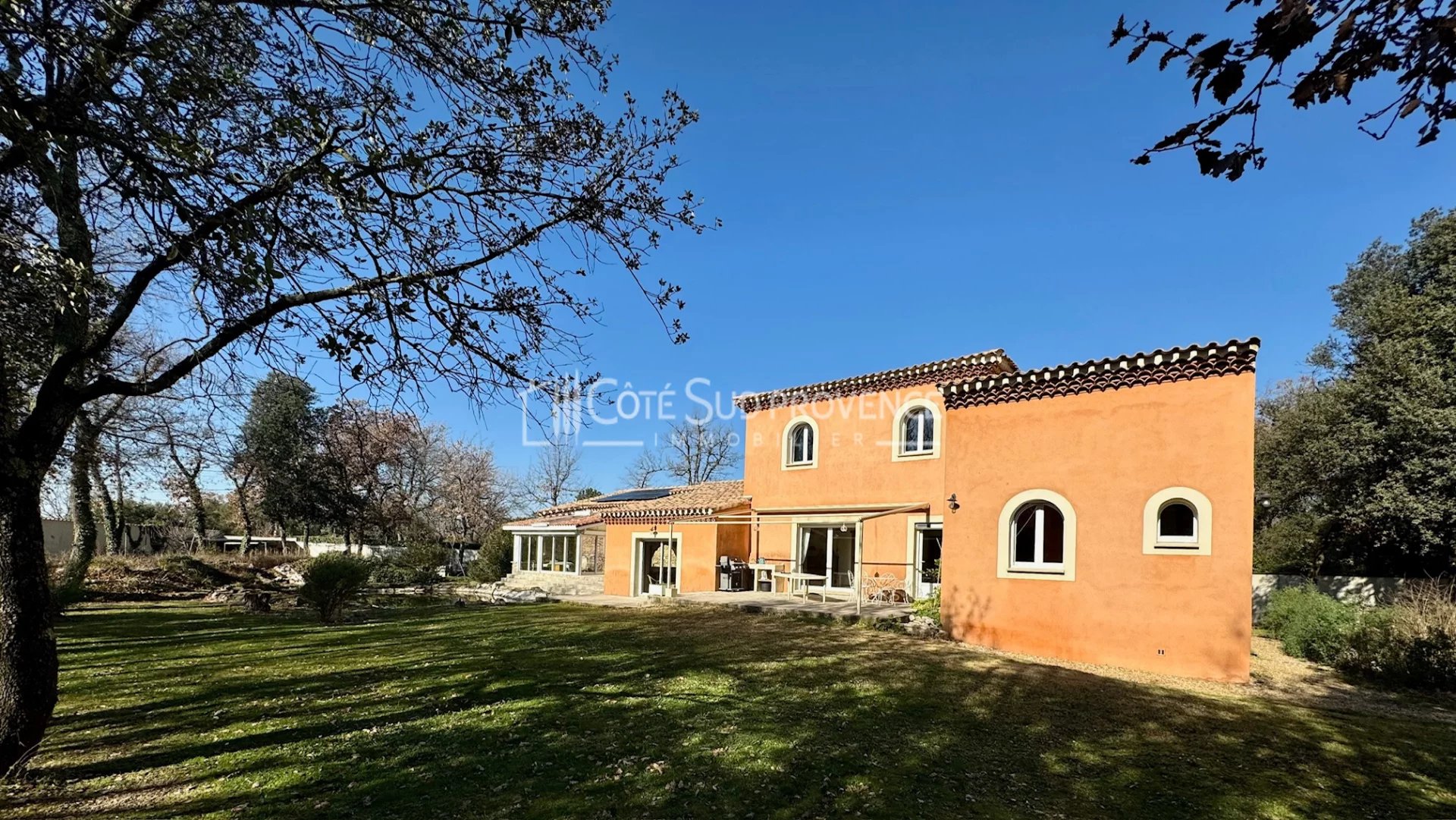 A 40 mn d'Avignon TGV, 3 mn de tous les commerces, secteur résidentiel pour cette Villa d’environ 250 m² sur deux niveaux construite en 2008 avec double garage et piscine naturelle. Hall d'entrée, cuisine, séjour , salon cheminée, 5 chambres, 4 salles d'eau, chalet bois indépendant habitable, gîte attenant et double garage, l’ensemble sur un terrain arboré et clos de murs avec piscine bassin