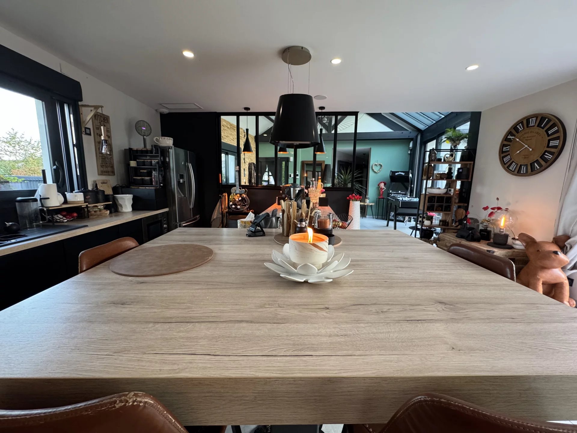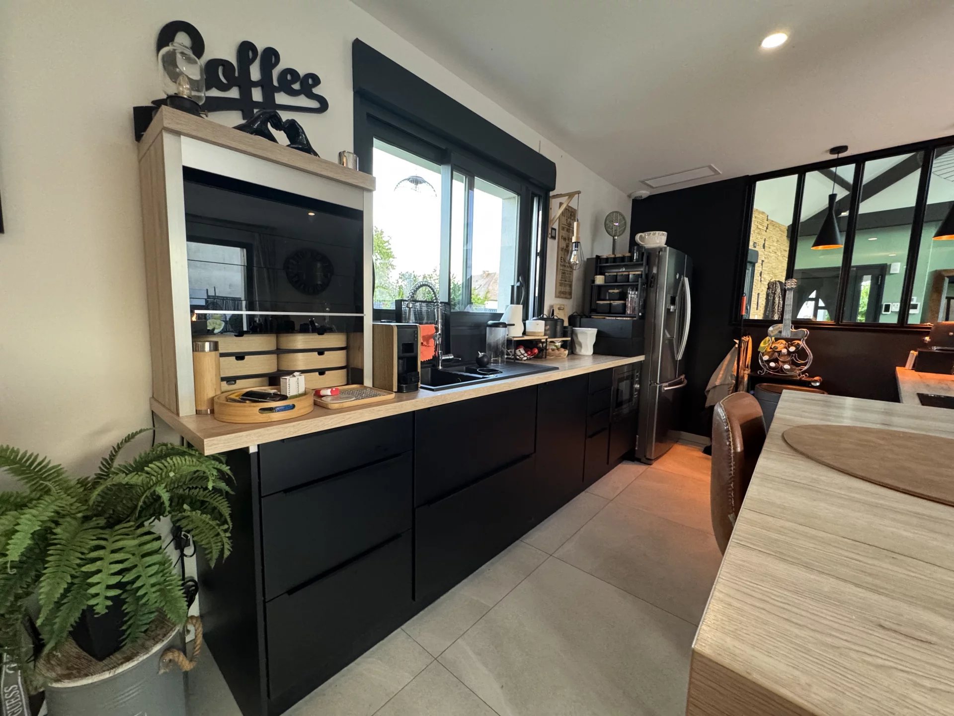 . Une cuisine ouverte moderne , équipée et fonctionnelle avec îlot et nombreux rangements .