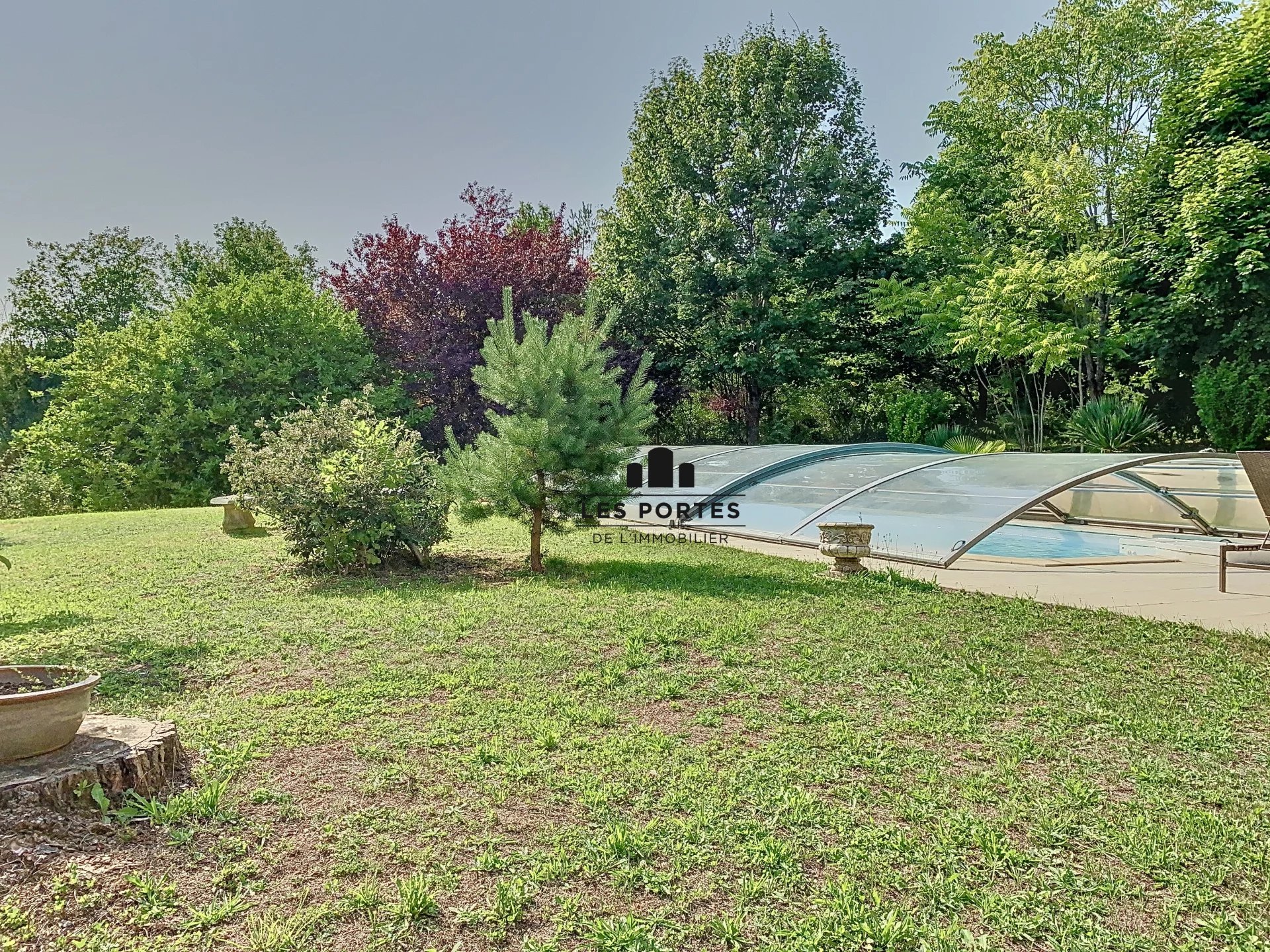 En exterieur: une piscine equipée d'un dôme pour votre sécurité, un chalet de jardin, un carport. Un jardin arboré pour les amoureux des grands espaces et de la nature vient compléter ce bien.