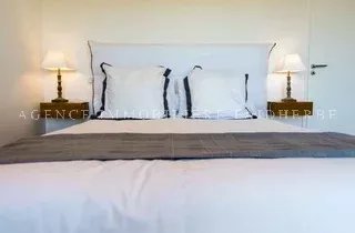 Situata in un residence a Les Salins, questa villa contemporanea si sviluppa al centro di un splendido giardino paesaggistico, ideale per rilassarsi e godere del clima mediterraneo. La proprietà offre una piscina di 3 x 10 m, un campo da pétanque e un barbecue, perfetti per momenti conviviali all’aperto. La villa dispone di 4 camere da letto, 1 bagno e 3 bagni con doccia, oltre a una cucina completamente attrezzata che si apre sul soggiorno e sulla sala da pranzo. È dotata di allarme, aria condizionata e Wi-Fi per un soggiorno confortevole e sicuro. Distribuzione della villa: Piano terra: Cucina attrezzata + lavanderia/dispensa Soggiorno e sala da pranzo Camera matrimoniale (140 cm) con bagno con doccia e WC Camera matrimoniale (160 cm) con bagno con doccia adiacente + WC separato Primo piano: Camera matrimoniale (160 cm) con terrazza vista piscina + bagno con doccia sul pianerottolo e WC separato Camera padronale (160 cm) con bagno privato, WC, ampi armadi e terrazza Tariffe: Giugno & Settembre: €/settimana Luglio & Agosto: 18.750 €/settimana Tassa di soggiorno: €6,91 / giorno / adulto
