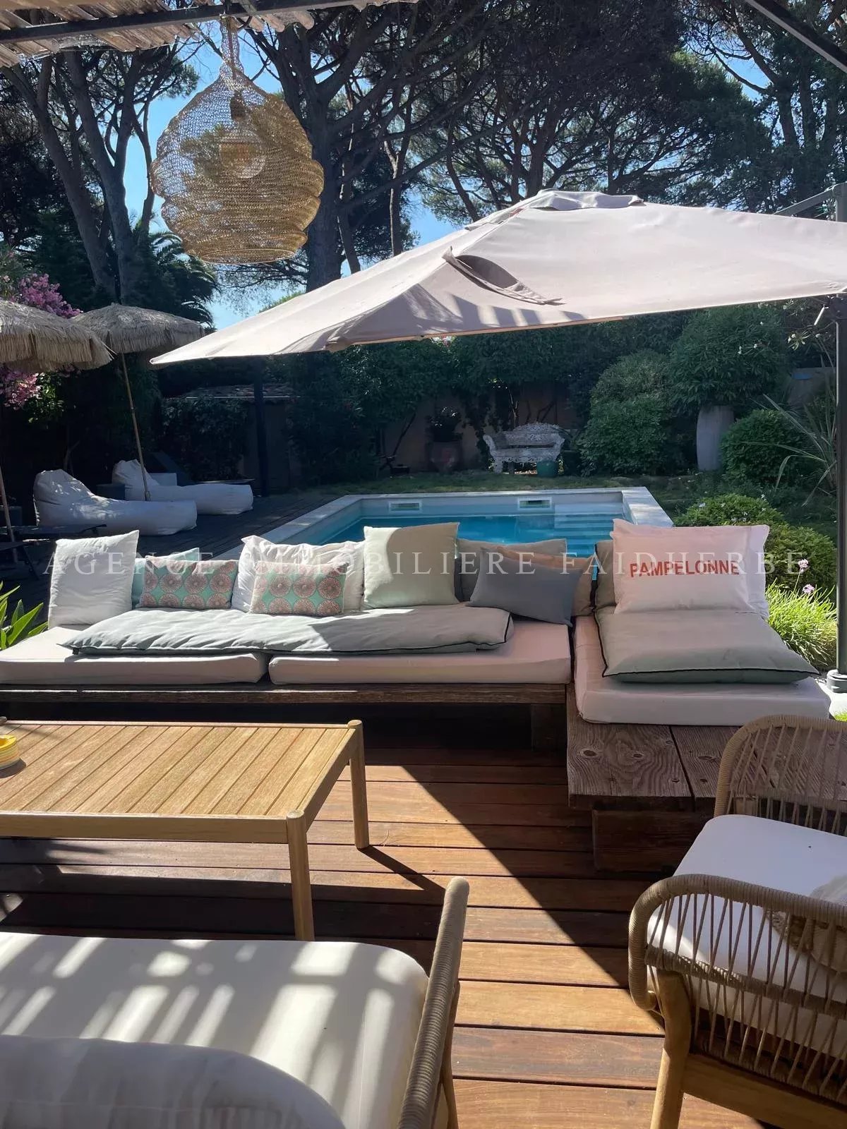 A pochi passi dalla spiaggia dei Canebiers, questa affascinante casa provenzale unisce autenticità e comfort moderno. Composizione: Piano terra: ampio soggiorno/pranzo che si apre su una terrazza coperta, cucina aperta e attrezzata, bagno ospiti, 1 camera con bagno con doccia, WC e TV. Primo piano: 2 camere da letto (letto matrimoniale 160 cm) che condividono 1 bagno con doccia e WC. Lato giardino: 3 camere indipendenti con bagno con doccia, WC e TV. Annex e dotazioni: Lavanderia con lavatrice, asciugatrice, frigorifero e congelatore aggiuntivi. Aria condizionata in tutta la casa. Wi-Fi. Cassaforti nelle camere. Tariffe: 12.500 € / settimana Spese: Pulizia: 500 € Biancheria: 150 €/settimana Tassa di soggiorno: 6,91 €/giorno/adulto