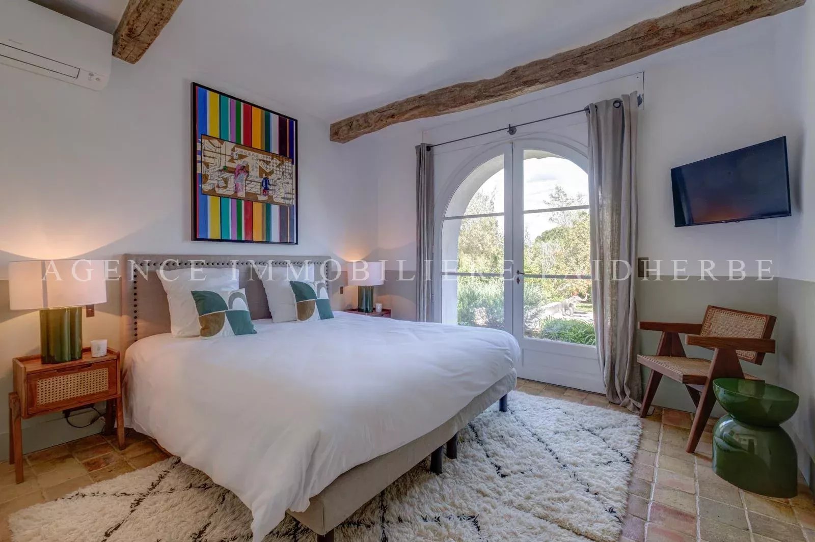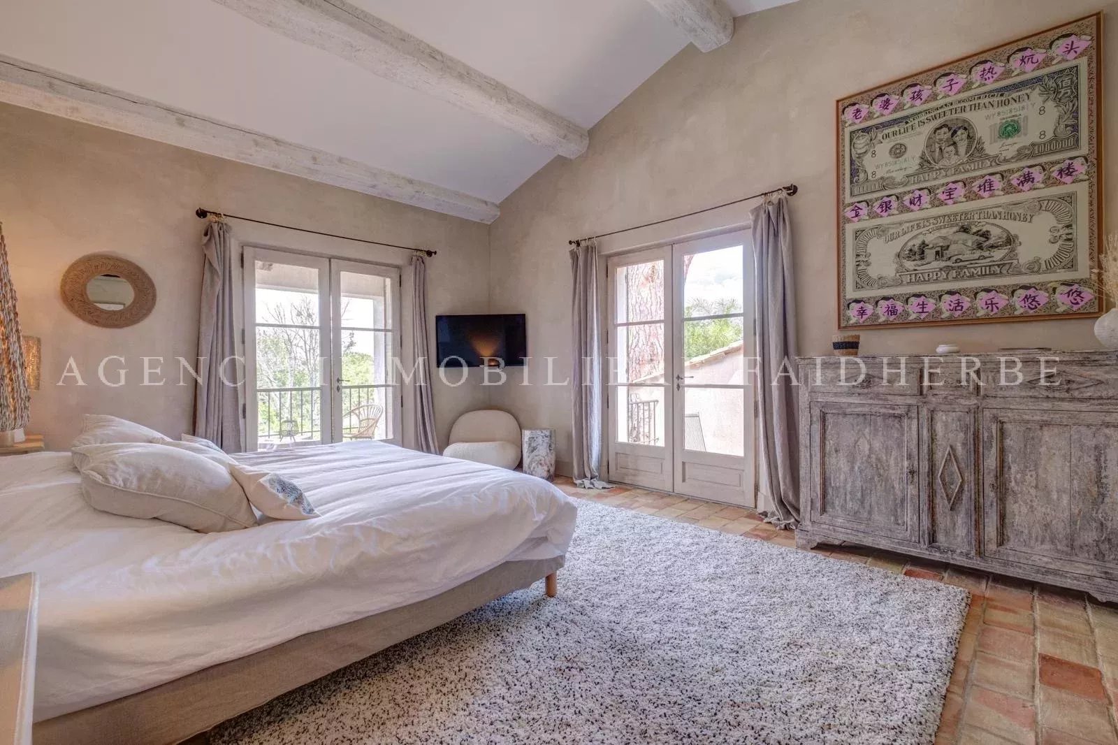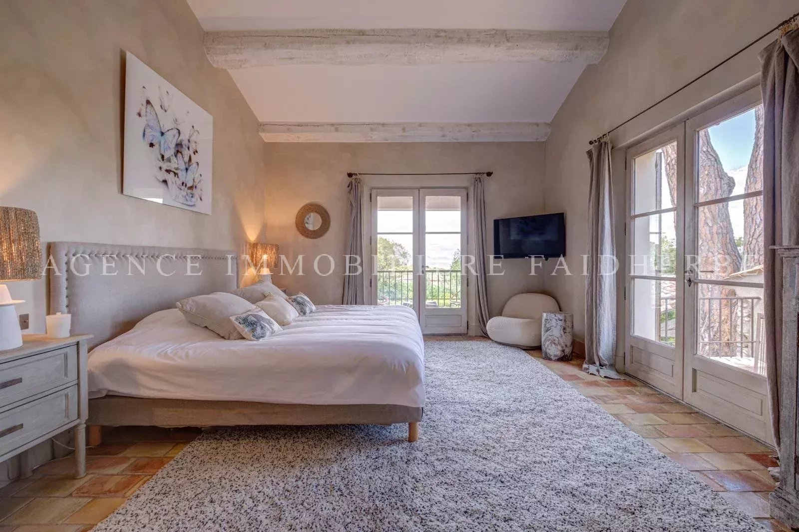 Cette villa provençale, récemment rénovée et idéalement située à proximité de Tahiti et de la plage des Lices, offre un cadre de vie exceptionnel. Elle propose un hébergement confortable et spacieux pour accueillir toute la famille et les amis. A l'entrée de la propriété un studio indépendant, équipé d'un lit King size et d'une salle de douche avec toilettes, offre un espace privé supplémentaire pour les invités. Dans la maison principale, au rez-de-chaussée vous trouverez une première chambre avec un lit en 160, salle de douche attenante, offrant intimité et commodité. La deuxième chambre dispose d'un lit en 180 et d'une salle de bain privée avec toilettes. À l'étage, deux chambres communicantes avec lits en 160, idéales pour les parents et les enfants. Une salle de douche et des toilettes sur le palier assurent un confort optimal pour tous les occupants. La chambre principale comprend un grand dressing, une salle de bain privée avec douche, baignoire et toilettes. Depuis le balcon de la chambre principale, vous pourrez profiter d'une vue imprenable sur la mer. Les espaces de vie comprennent un salon avec cheminée, une salle à manger et une cuisine entièrement équipée. Une grande terrasse extérieure, couverte et meublée pour accueillir jusqu'à 10 personnes, offre un cadre idéal pour les repas en plein air et les moments de détente. Cette villa est également dotée d'une piscine, d'un grand barbecue traditionnel pour des repas en plein air et un grand jardin pour se détendre. Un terrain de pétanque complète ce bien. Ménage journalier : 1 fois par semaine pendant 3 heures Linge de maison inclus Frais supplémentaires : Heure de ménage supplémentaire : 30€/heure Ménage de sortie : 30€/heure Taxe de séjour : 6,91€ par personne et par jour