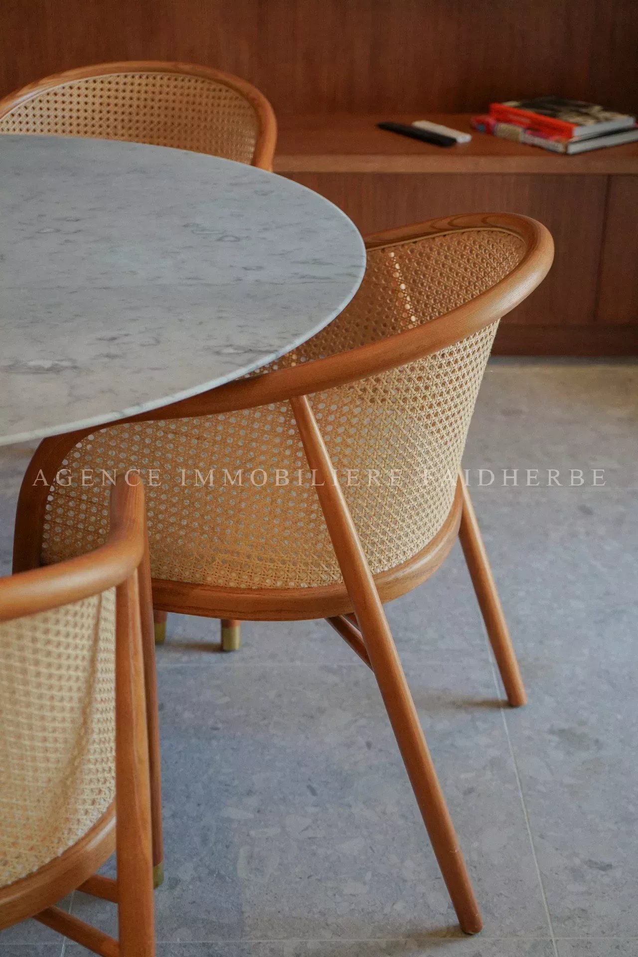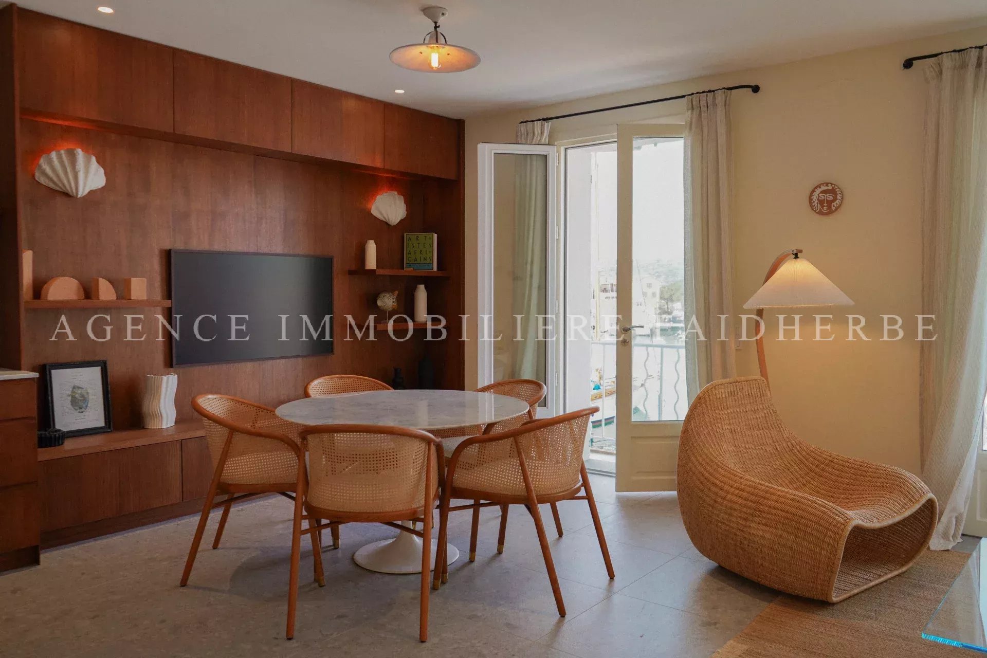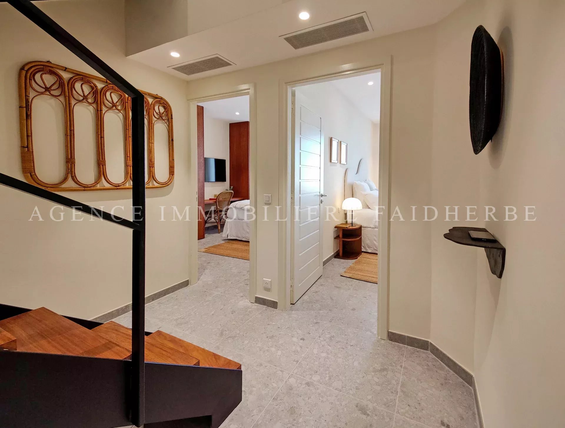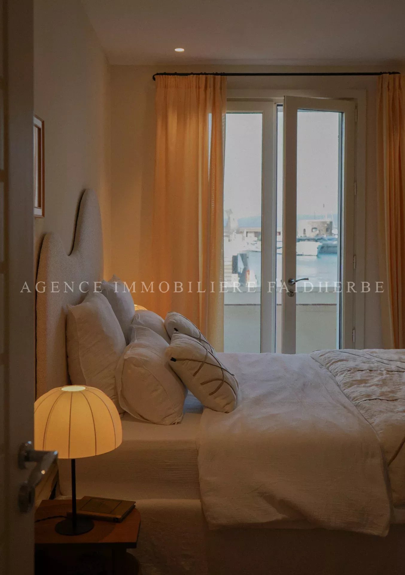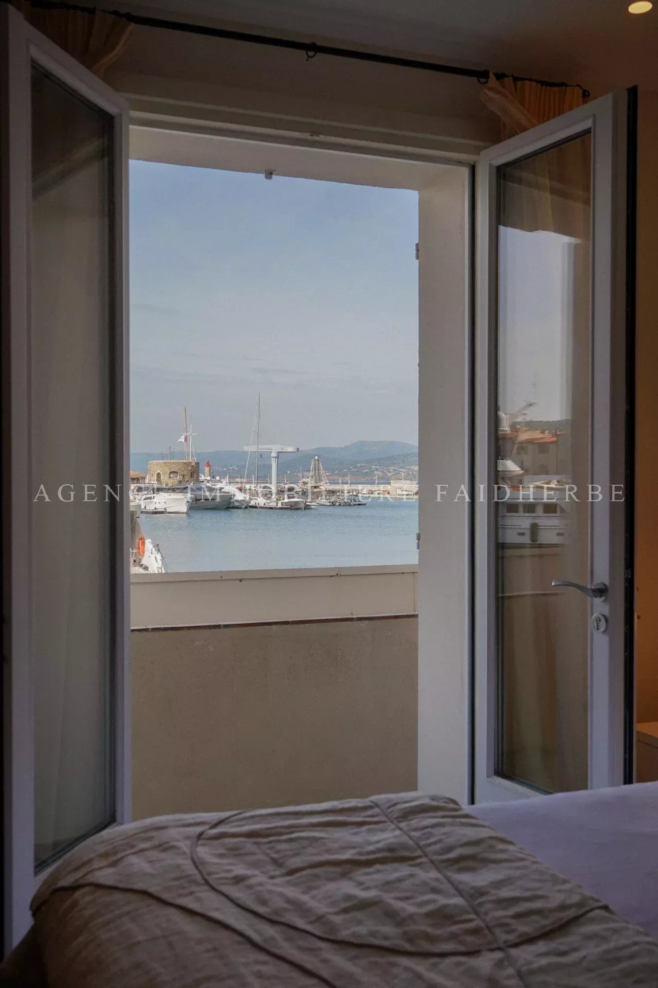 Questo elegante appartamento duplex con due camere da letto si trova tra il piano terra e il primo piano e offre una splendida vista sul porto. Al piano superiore, una cucina a vista completamente attrezzata si affaccia sulla sala da pranzo e sul soggiorno con balcone con vista sul porto, oltre a un bagno per gli ospiti. Al piano terra si trovano due camere da letto, ciascuna con bagno privato con doccia e servizi igienici. L’arredamento raffinato, l’uso di materiali di pregio e la posizione privilegiata nel cuore della vita tropeziana rendono questo appartamento una vera perla rara e un luogo ideale per una vacanza indimenticabile. Tariffe: Luglio, agosto, settembre: 6.250 € / settimana Costi aggiuntivi: Pulizia finale: 200 € Noleggio biancheria: 75 € / letto / settimana Pulizia extra: 30 € / ora Tassa di soggiorno: 6,91 € / giorno / adulto TS: 83119006620
