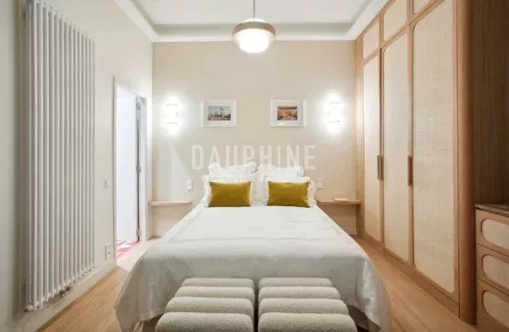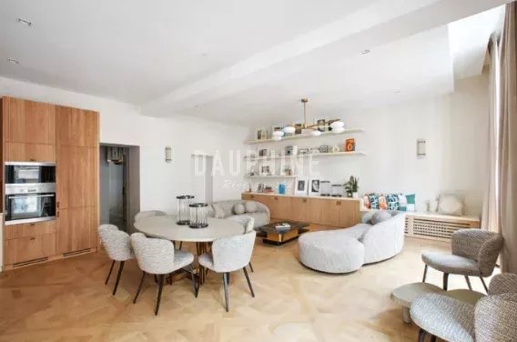 Situé à l'étage noble d'un bel immeuble ancien situé rue de l'Université coté rue des Saints-Pères, un appartement entièrement rénové par un architecte avec des matériaux de qualité et une hauteur sous plafond de 3,60 m vendu meublé et équipé. Il comprend une double réception de 45,91 m2 donnant sur rue avec cuisine ouverte toute équipée, une chambre de maitre avec dressing et salle de bains de 18 m2, et 2 chambres de 12 m2 et 15 m2 avec dressings donnant sur cour,une salle de bains, buanderie, wc séparés.