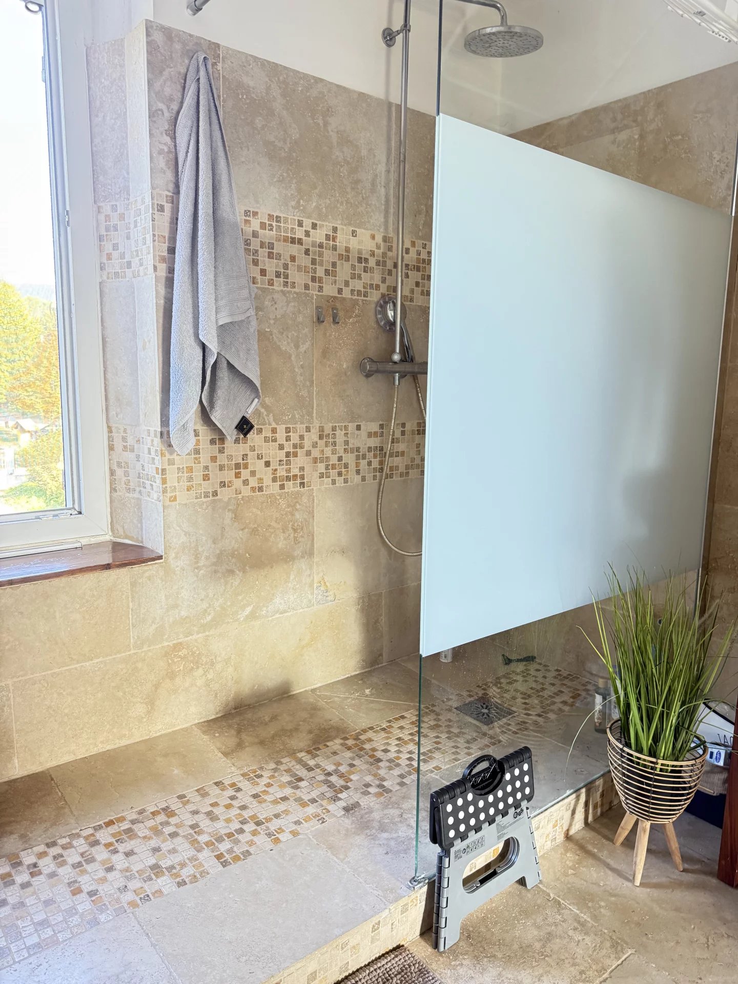 Salle de bains équipée d’une douche et d’une baignoire