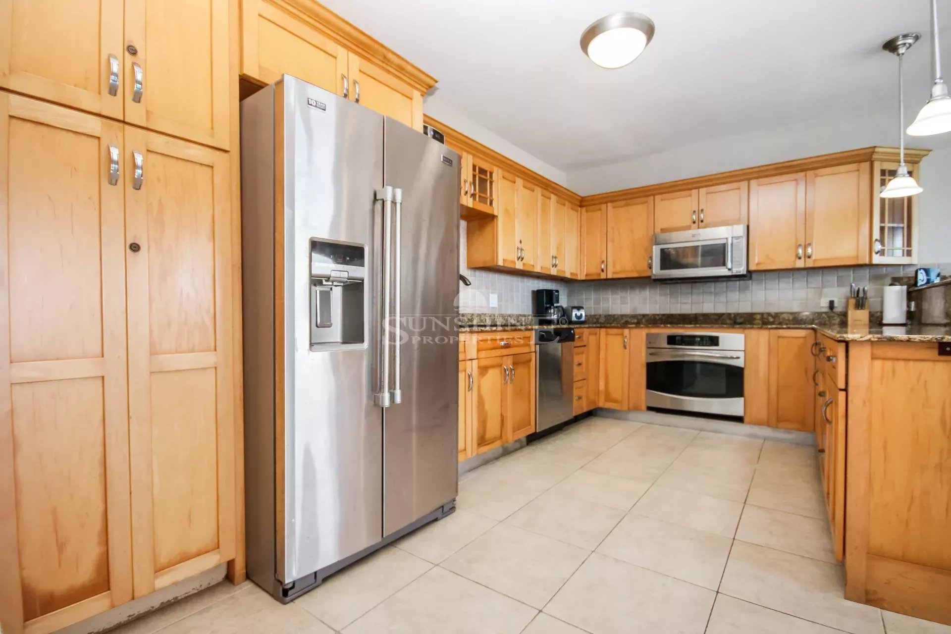 La cuisine dispose de comptoirs élégants et d'un espace de rangement généreux, parfait pour les passionnés de cuisine. Savourez vos repas dans la salle à manger tout en admirant le cadre tranquille à travers de grandes fenêtres qui baignent l'intérieur de lumière naturelle.