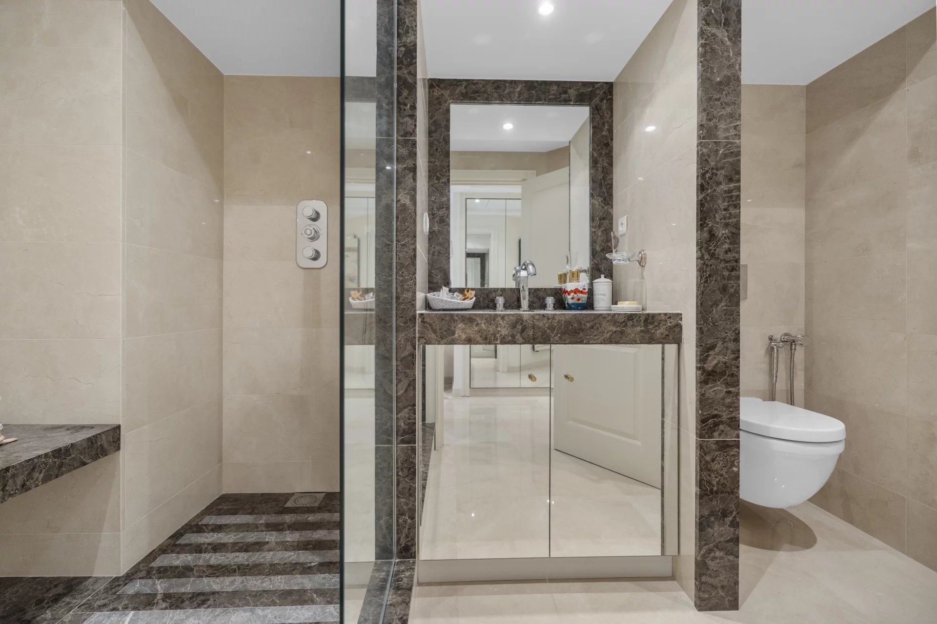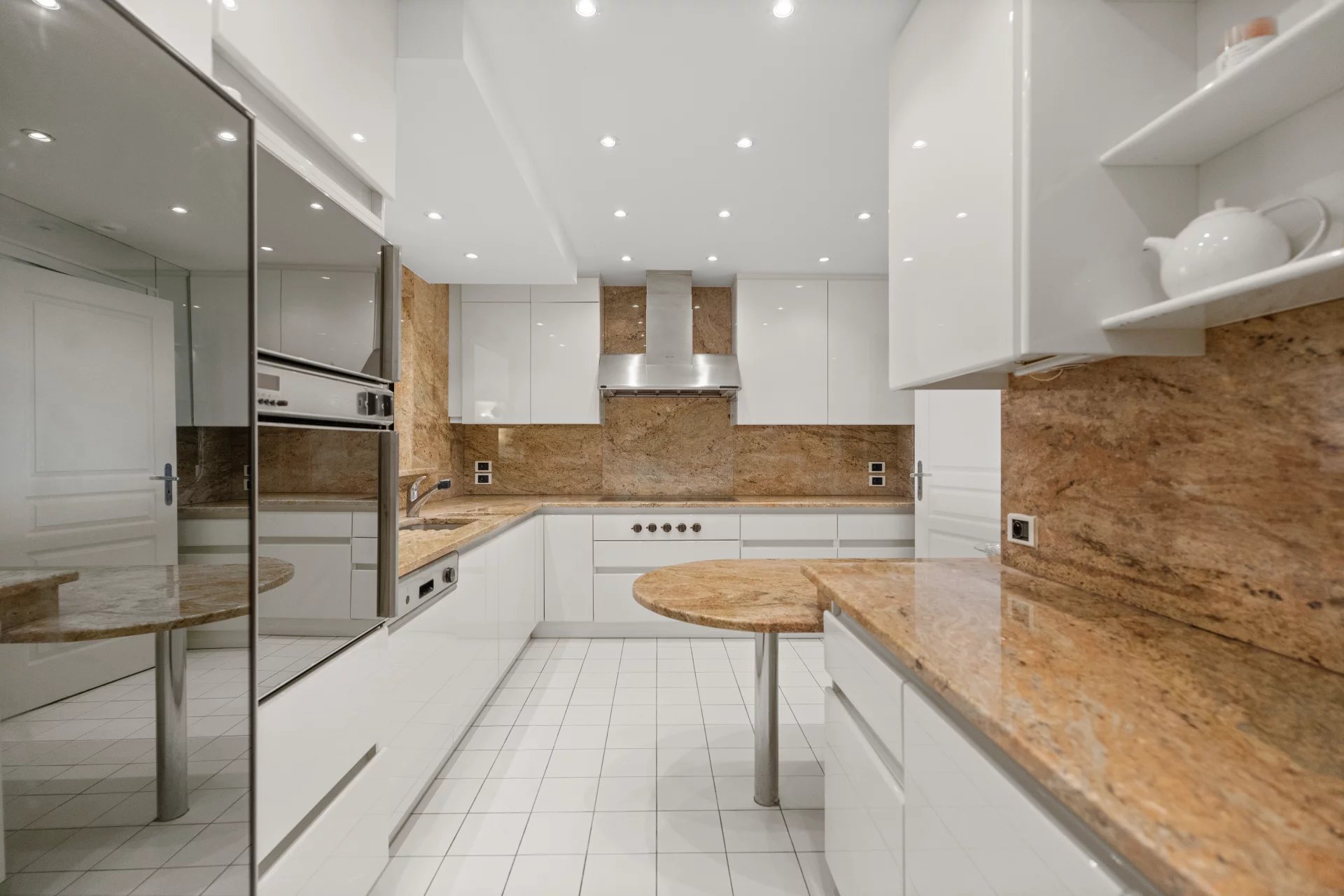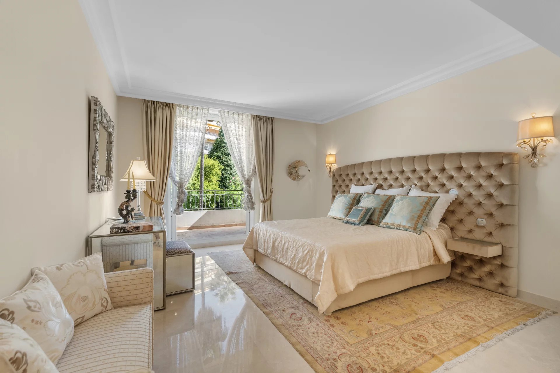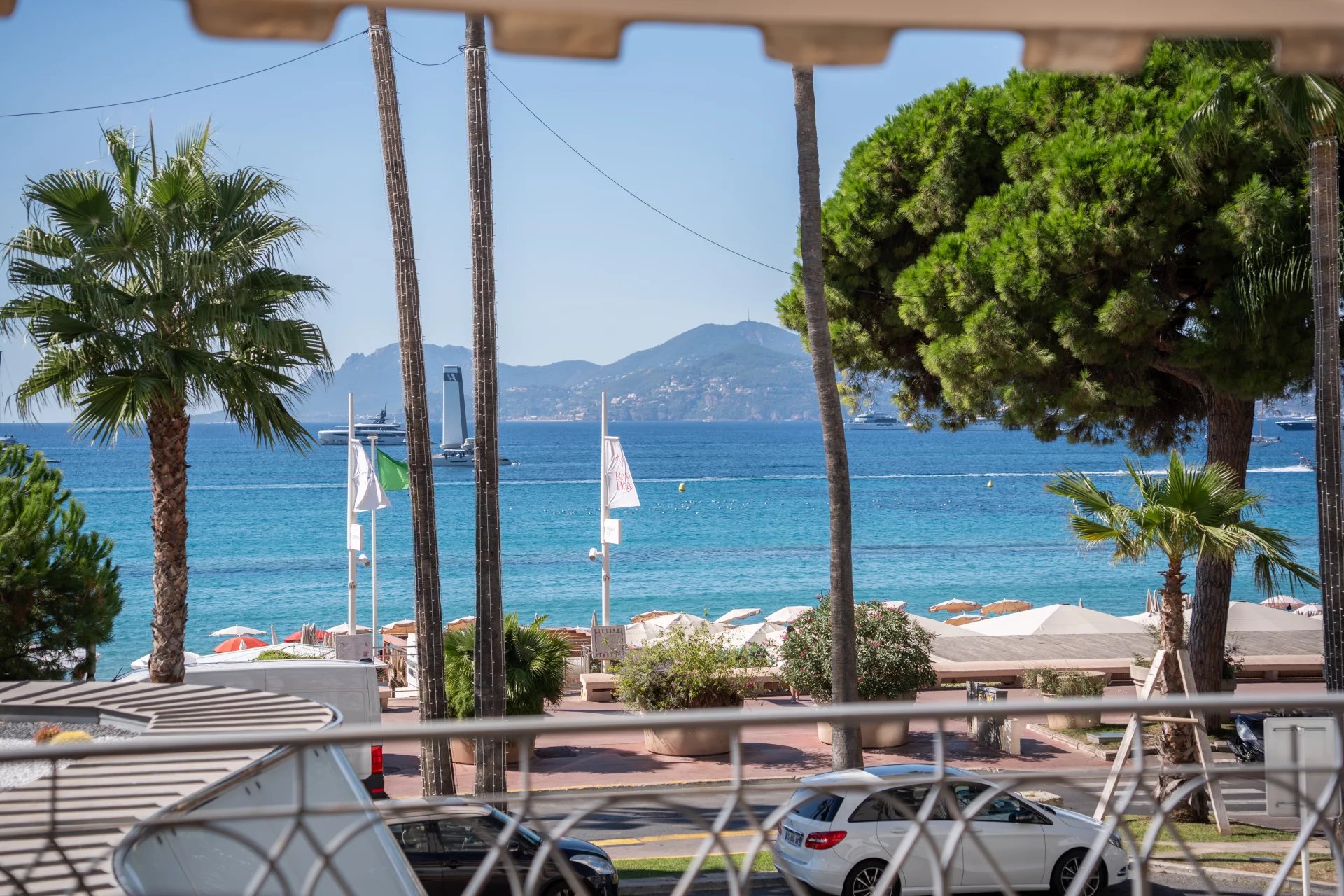 A Cannes, sur le Boulevard de La Croisette, entre les hôtels Carlton et Martinez, dans une résidence de grand standing avec gardien et service de sécurité 24/24h et 7/7j, spacieux appartement traversant de 4 pièces principales d'une superficie de 245 m2 avec studio attenant de 33 m2.