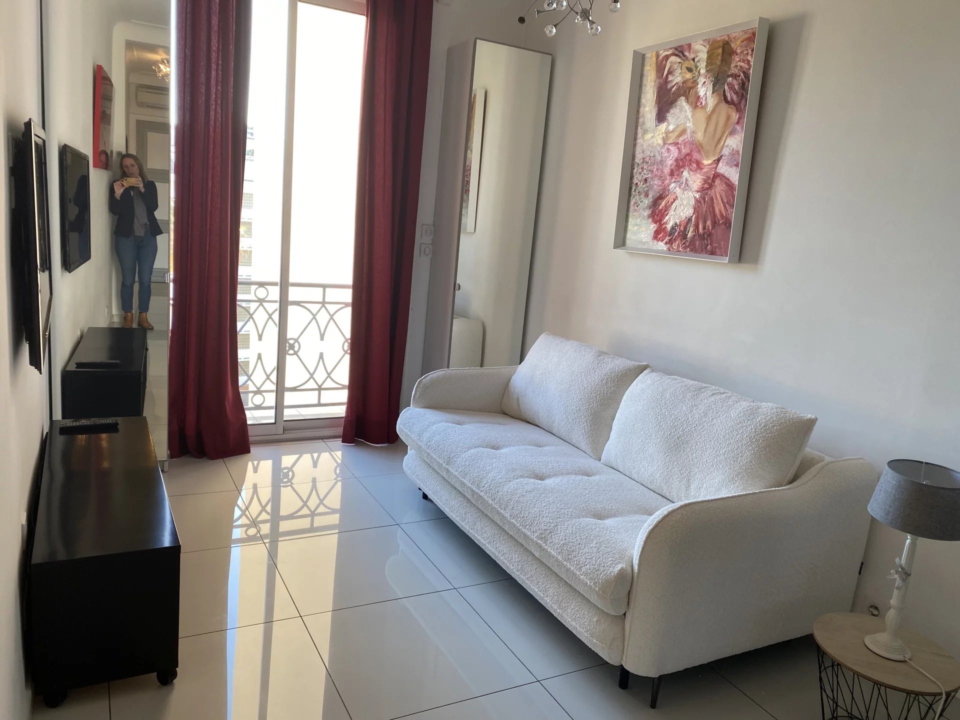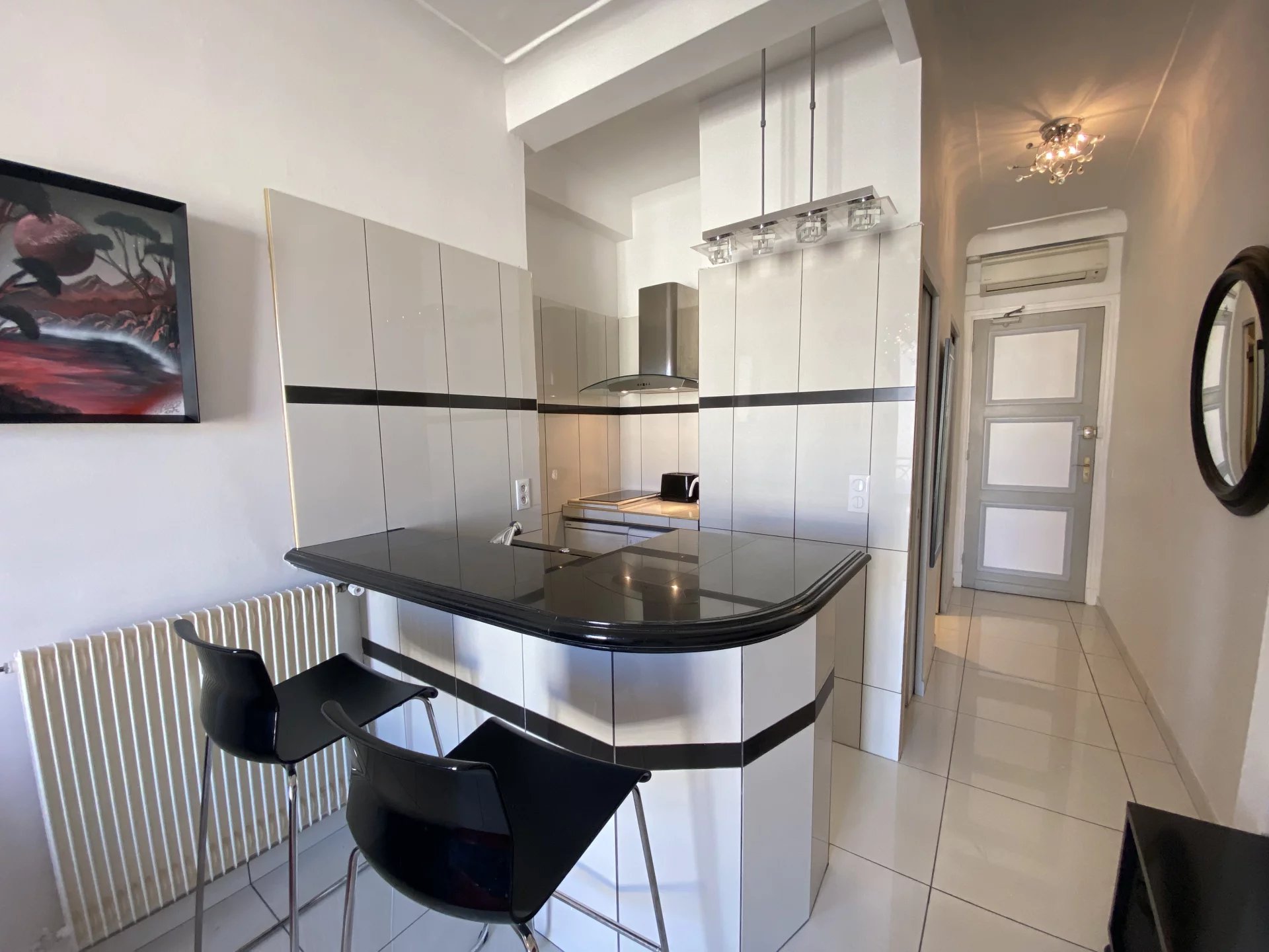 A Cannes, sur le boulevard de La Croisette, entre les Hôtels Carlton et Martinez, dans une résidence de grand standing avec sécurité 24/24h et 7/7j, studio d'environ 22 m2 avec balcon au calme coté jardin. Entrée avec placard, pièce principale, cuisine ouverte équipée avec bar, salle de douches avec WC. Climatisation réversible dans l'appartement. Appartement très bien situé, idéal pour investissement et pied-à-terre.