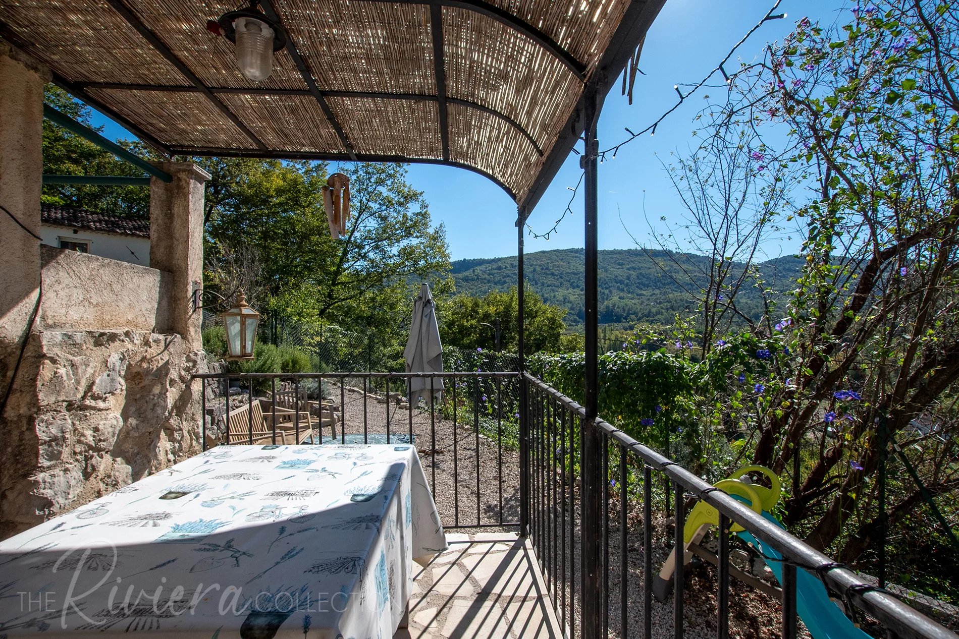 Un garage spacieux et un abri supplémentaire pour voiture offrent des commodités pratiques. Cette maison de campagne allie le style provençal authentique au confort, le tout dans un cadre magnifique typique de la Côte d'Azur.