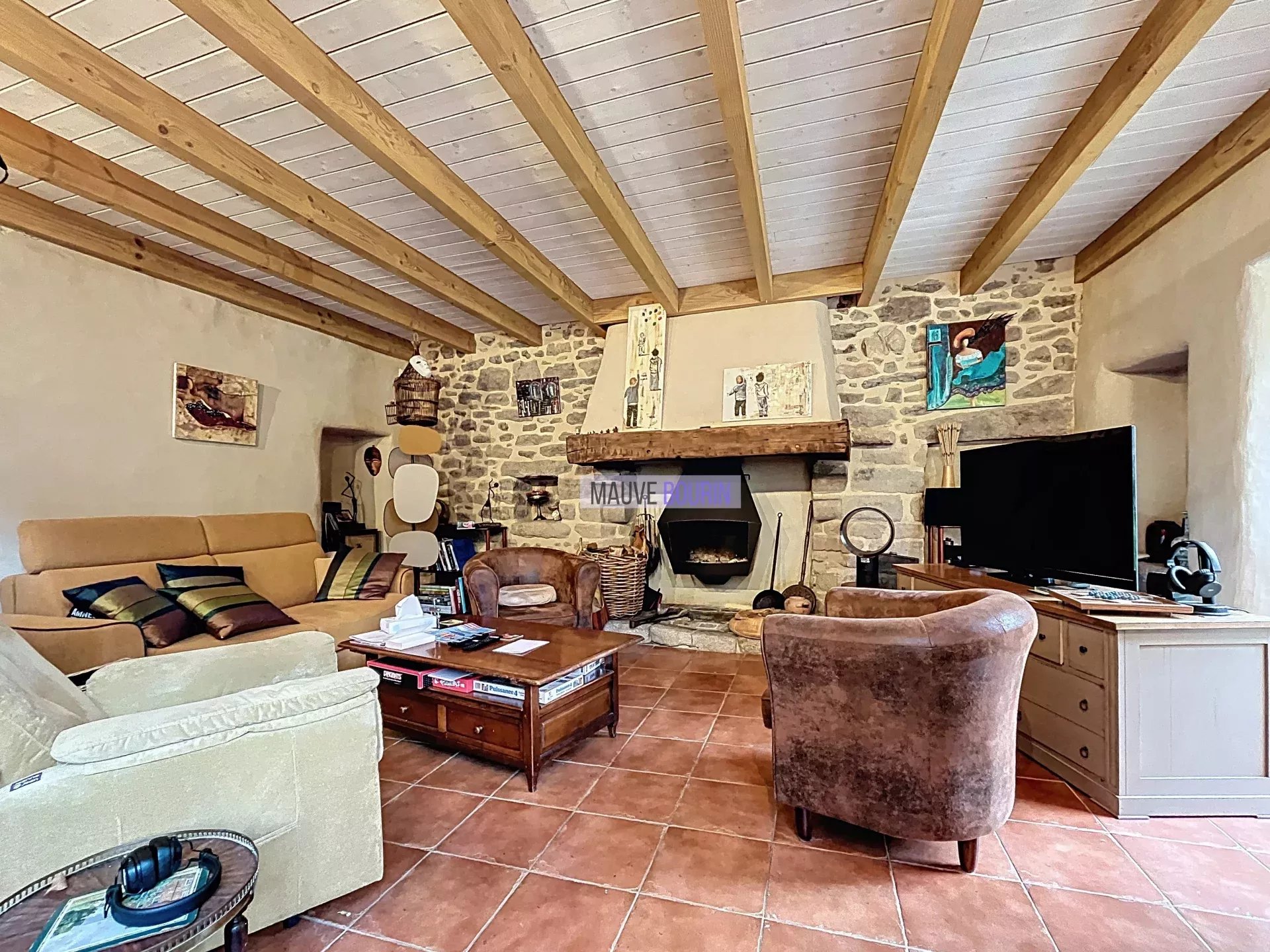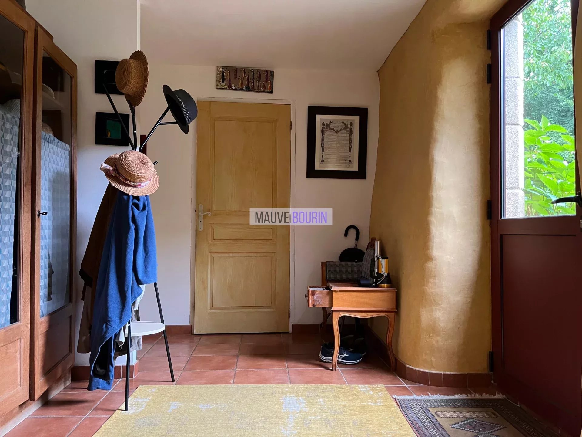 La maison principale de 178m² environ accueille ses occupants par un hall cathédrale baigné de lumière grâce à une large façade vitrée. Elle offre un salon avec cheminée ancienne et pierres apparentes, une cuisine et son arrière-cuisine, quatre chambres, une salle de bain, une salle de douche et trois WC. Une pièce supplémentaire, aujourd’hui utilisée en atelier, peut aisément être transformée en suite parentale de plain-pied avec salle d’eau. La maison dispose également d’une cave intérieure, ajoutant charme et fonctionnalité.