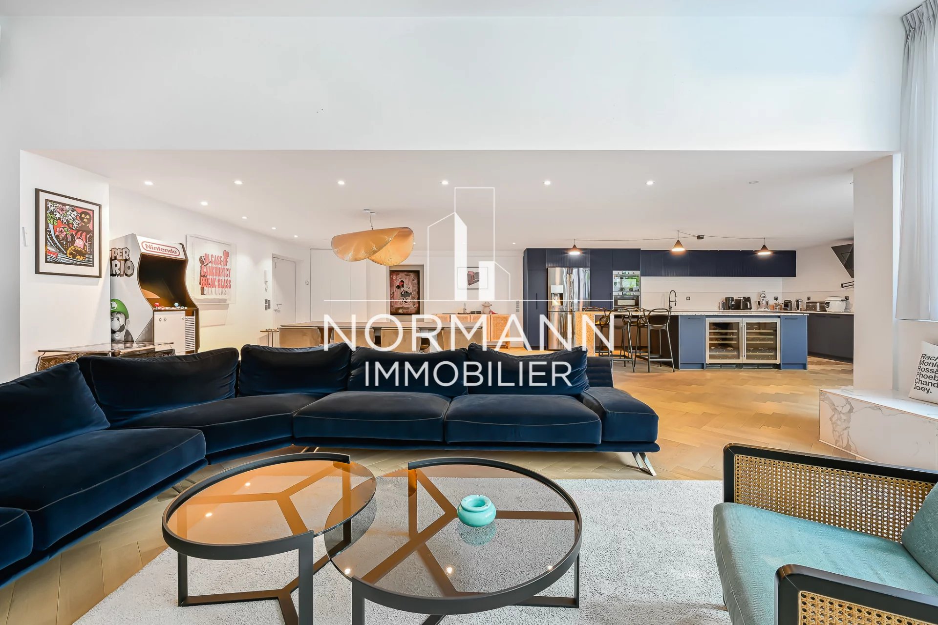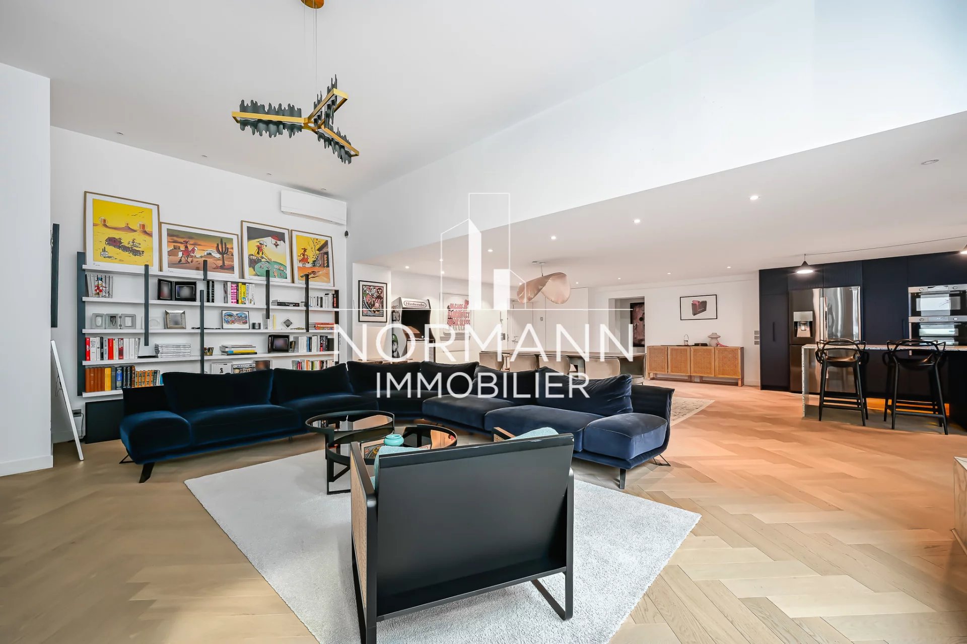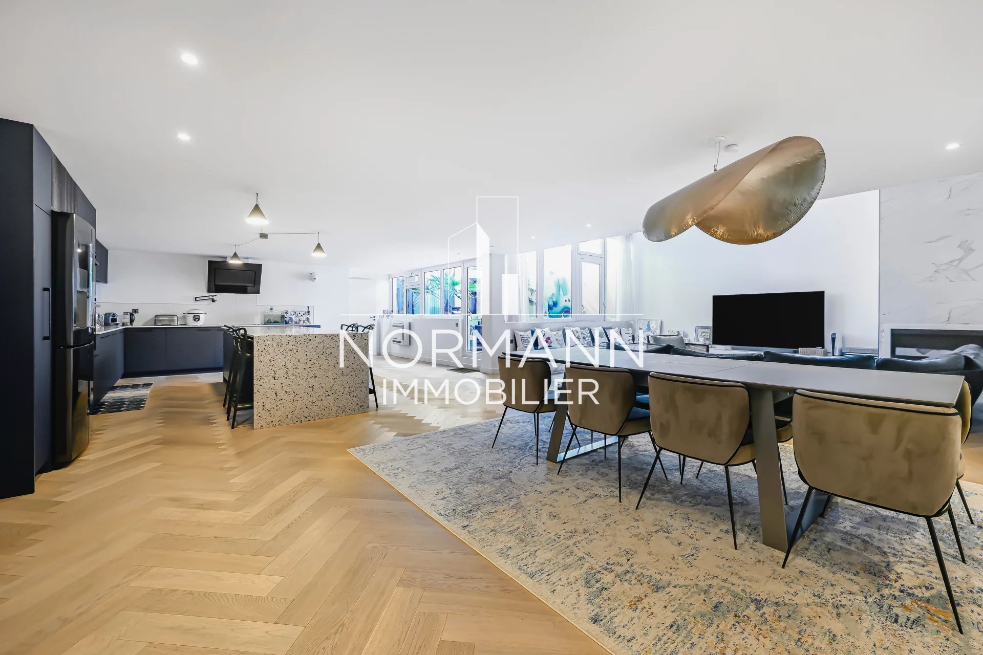 Il se compose d'une magnifique pièce de vie de 100m2 comprenant une grande cuisine ouverte entièrement aménagée et équipée, d'une salle à manger, d'un beau patio/ terrasse de 20 m² exposé sud-ouest, d'un très beau salon (3.5 m de hauteur sous plafond) avec cheminée à l'éthanol.