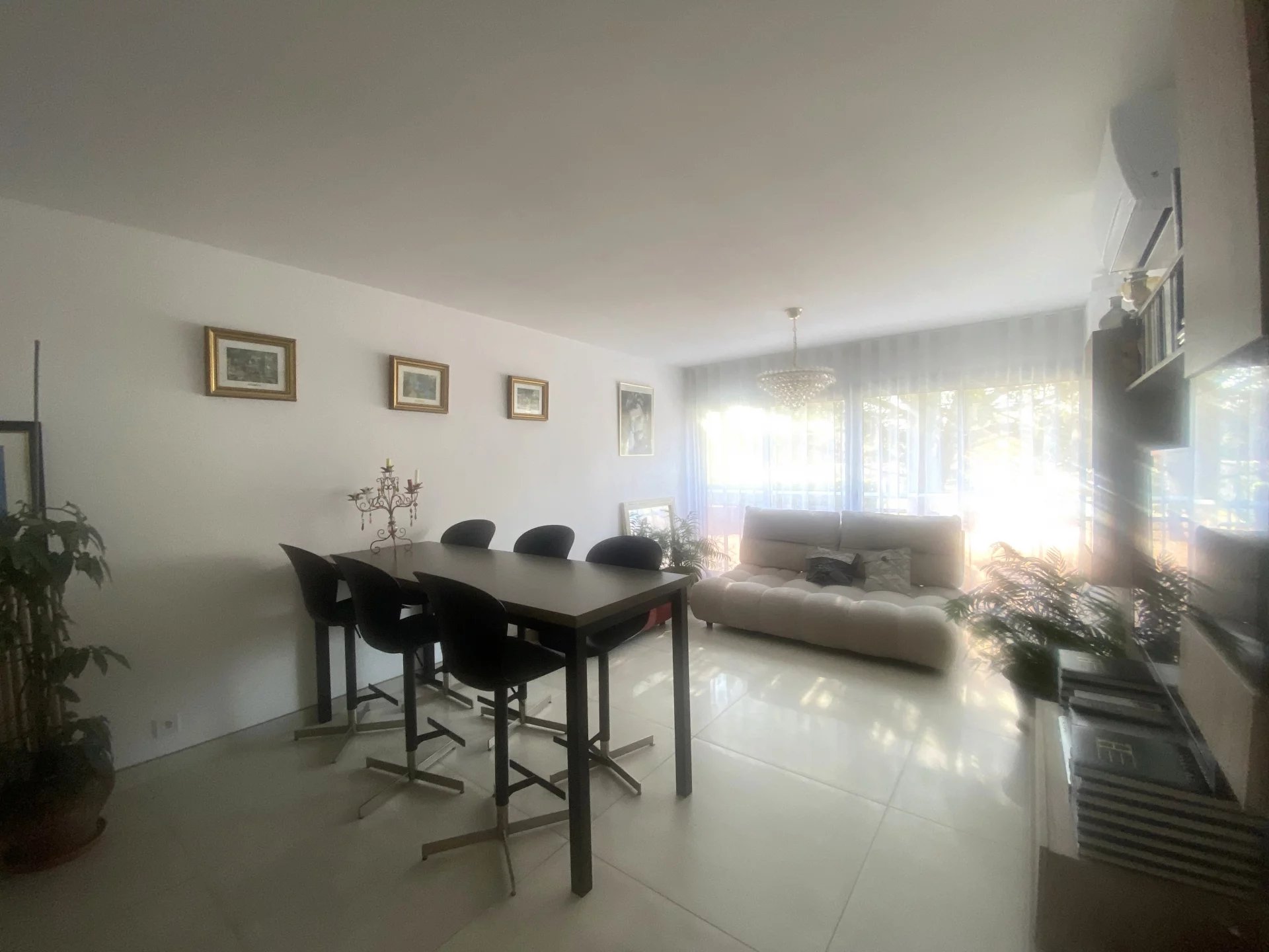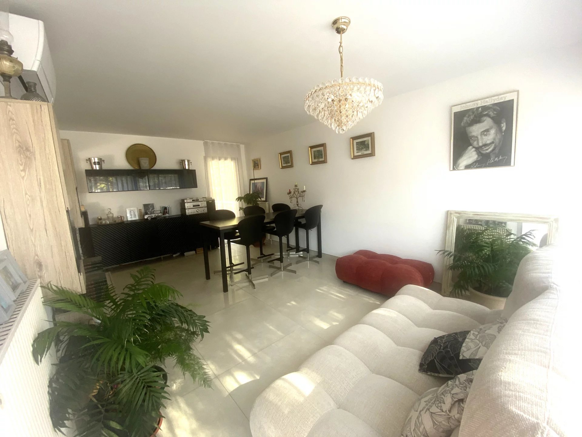 pouvant facilement être retransformée),un vaste séjour salle a manger ou salon, de 21.48 m², les deux profitant de grandes baies vitrées. Une deuxième chambre avec placard de 14.26 m².