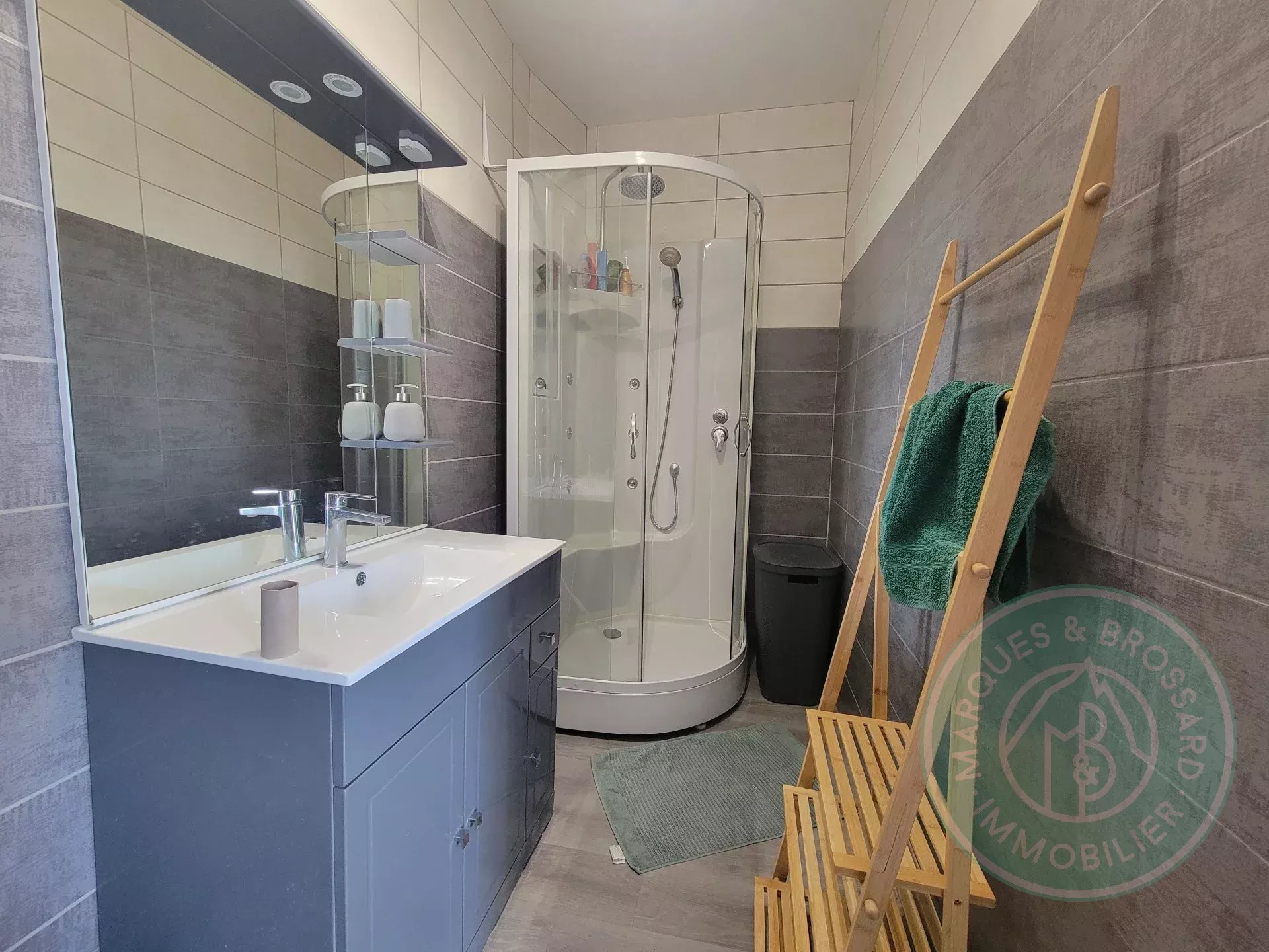 Au rez-de-chaussée : 2 chambres, une cuisine équipée ouverte sur un spacieux salon/salle à manger, une buanderie, un WC indépendant et une salle de douche.