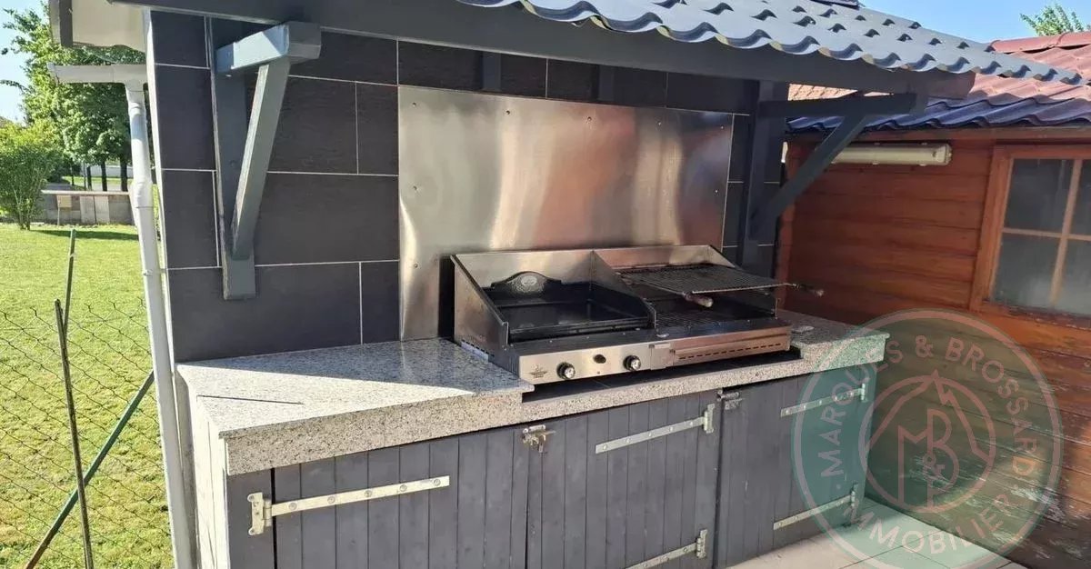 À l’extérieur, profitez d’un joli jardin clos, parfait pour les grands moments en famille ou entre amis, avec un coin cuisine d’été pour vos repas en plein air.