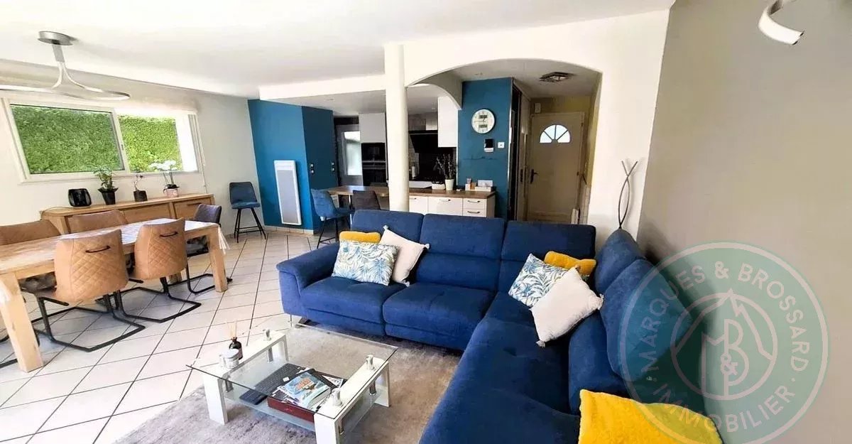 Luminosité, confort et ambiance chaleureuse caractérisent cette maison soigneusement entretenue. Conçue pour accueillir une famille, elle offre une vaste pièce de vie lumineuse avec une cuisine entièrement aménagée et équipée récemment, parfaite pour des repas en famille ou entre amis.