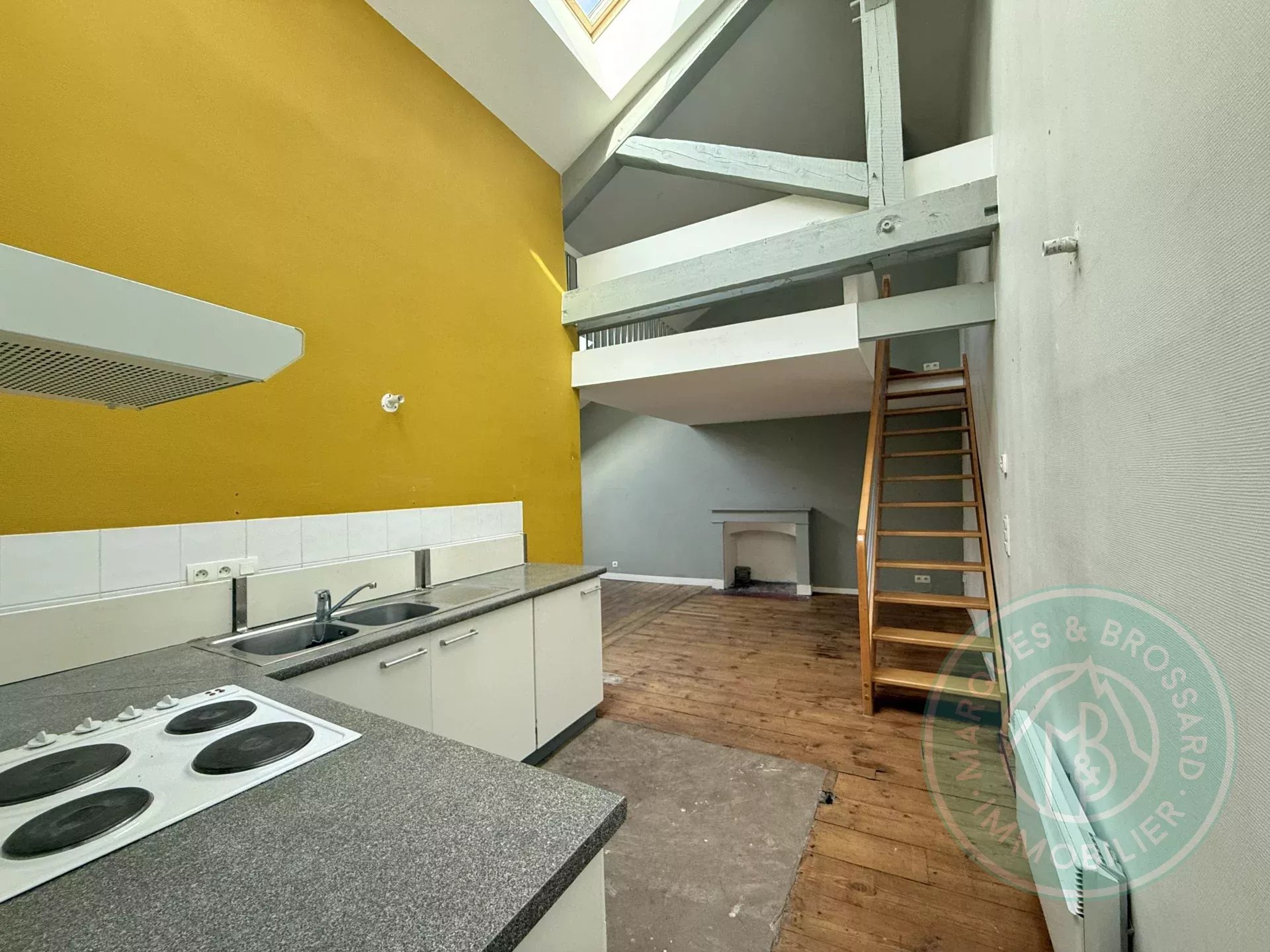 Au centre ville de Pau, dans une rue prisée du cœur historique, découvrez cet appartement au dernier étage d'un bel immeuble ancien. T2 bis en duplex avec une belle hauteur sous plafond et poutres apparentes composé d'une entrée, d'une cuisine ouverte sur un spacieux séjour, d'une chambre cocooning avec sa salle d'eau et une mezzanine au dessus du séjour, idéale pour installer un coin bureau. L’immeuble bénéficie d’un jardin privé et partagé entre les copropriétaires véritable havre de verdure en plein centre-ville Un bien rare à la situation exceptionnelle où le cachet de l’ancien rencontre le confort de la vie citadine à deux pas de toutes les commodités Contactez-nous pour plus de renseignements