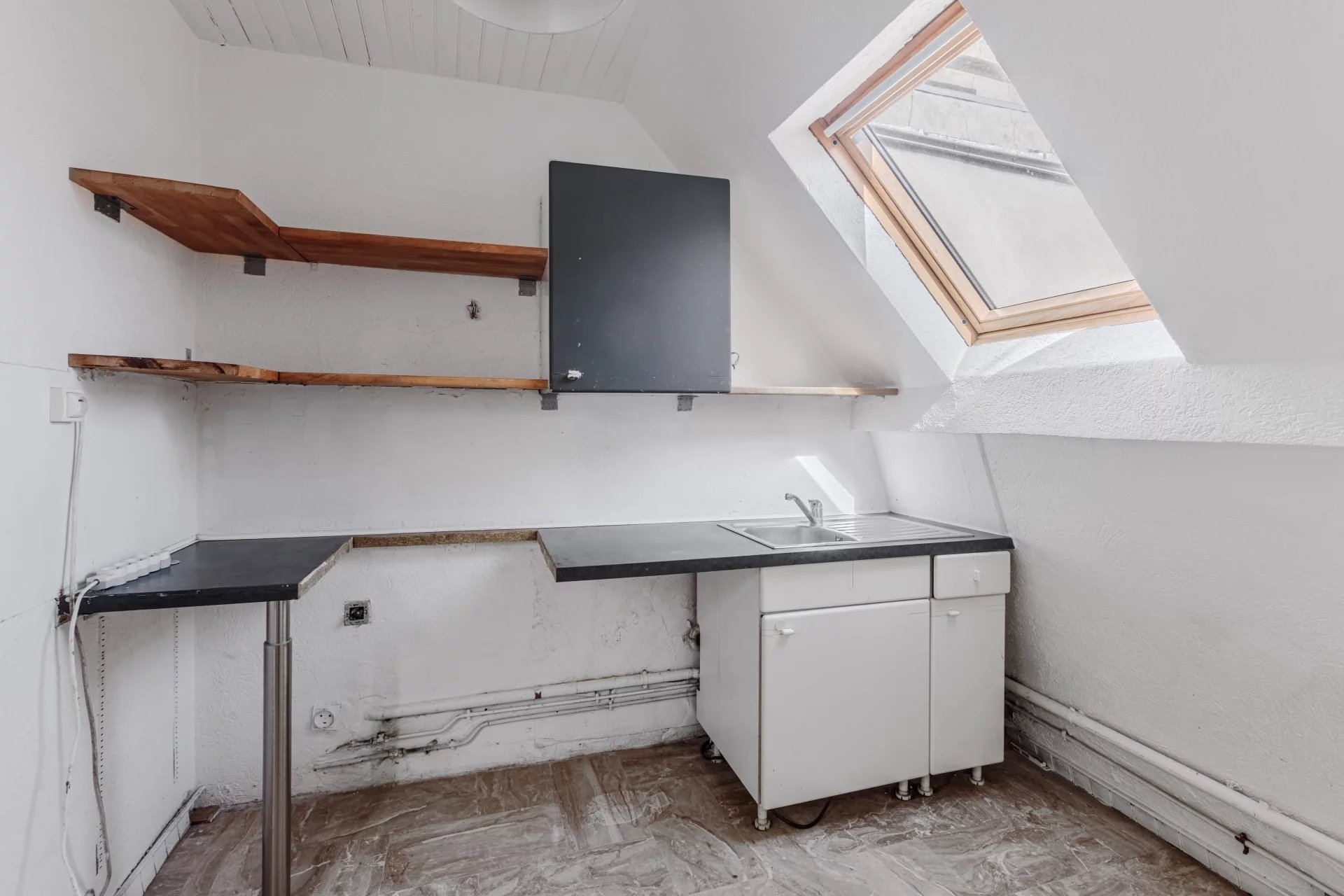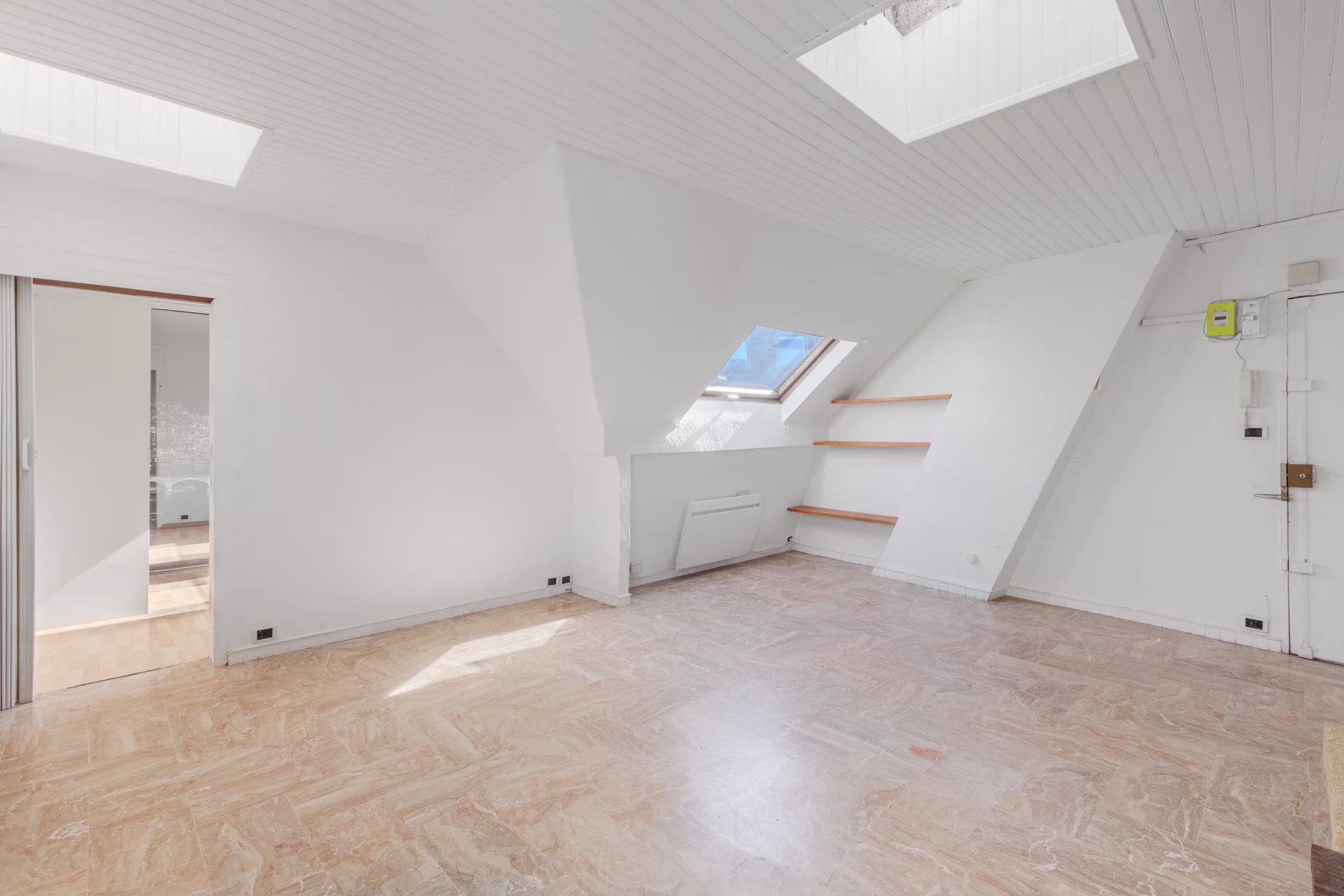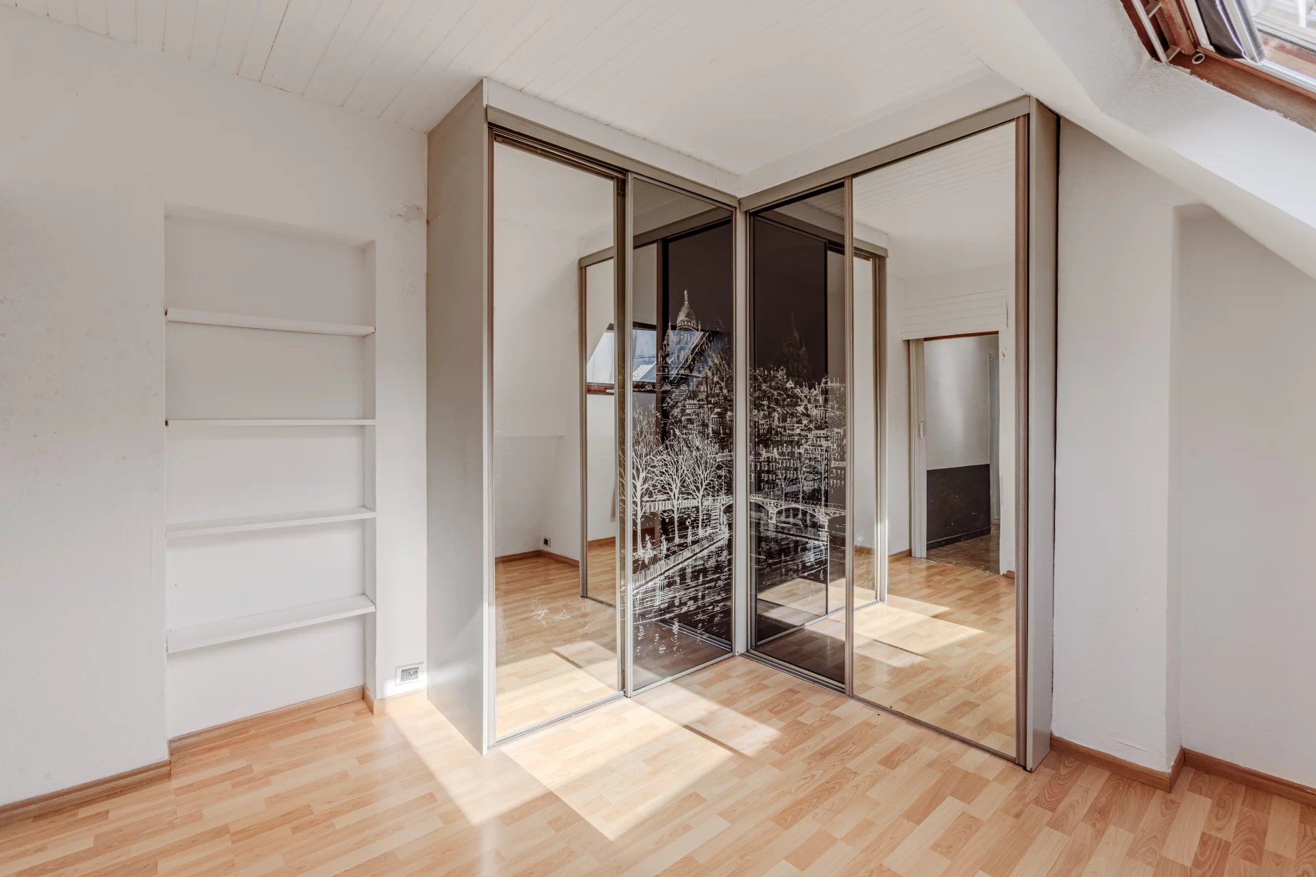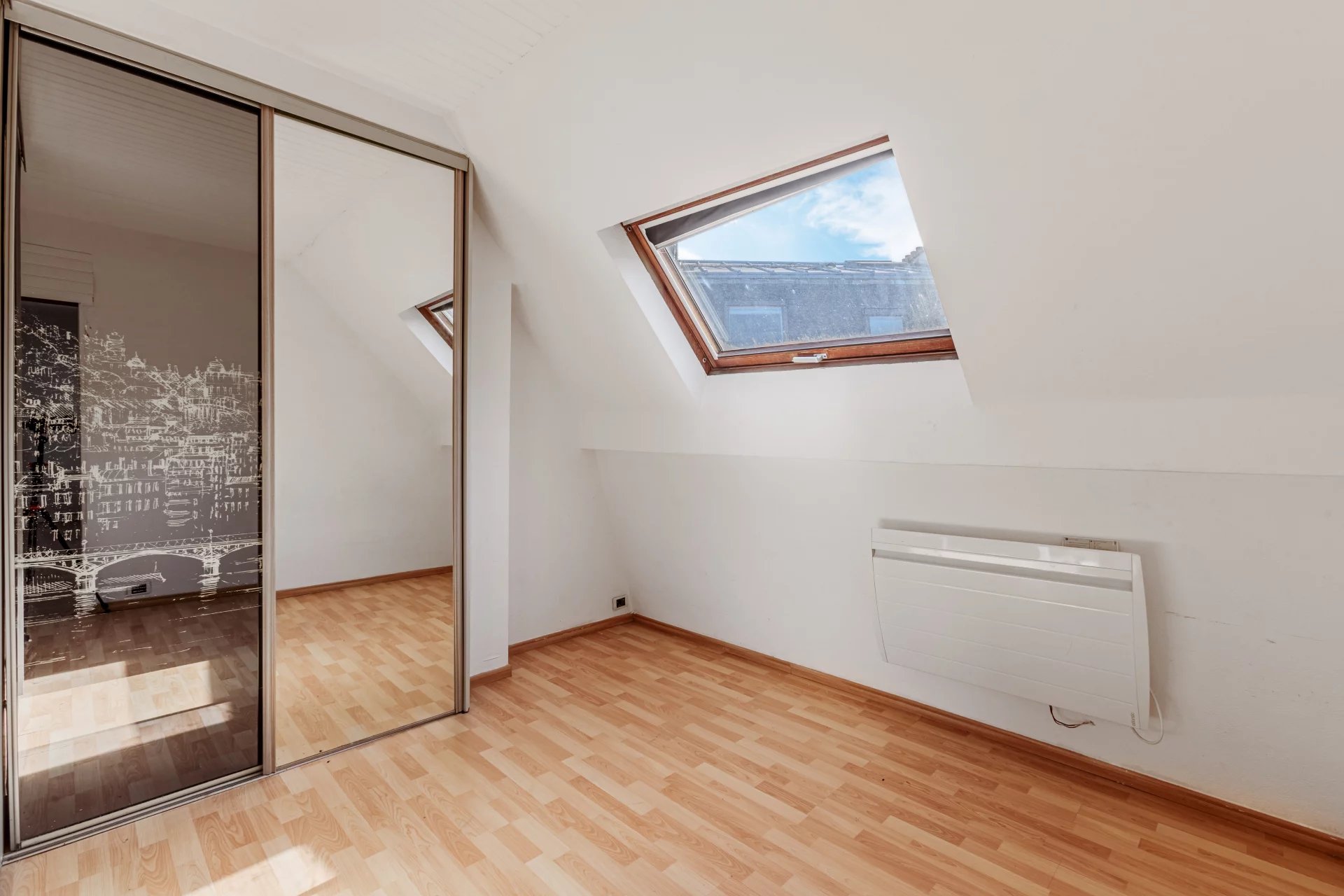 Métro Temple. Trois pièces de charme situé au dernier étage avec ascenseur dans une très belle copropriété en excellent état. SANS VIS A VIS, LUMINEUX et TRES CALME, il propose un séjour, deux chambres, cuisine indépendante, salle de bains avec WC. Fenêtres ou velux dans chaque pièce. Beaucoup de charme.