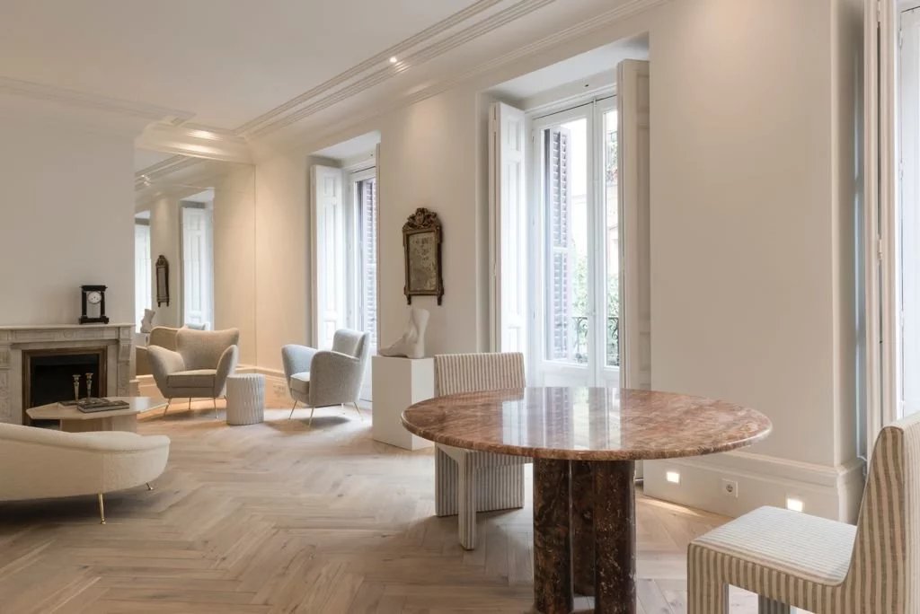 Everything in this property is first class: the design, the materials and finished as well as the efficient distribution of space. Ceiling height, which is well over 3 meters, and the three balconies overlooking the street are proof of its stature.