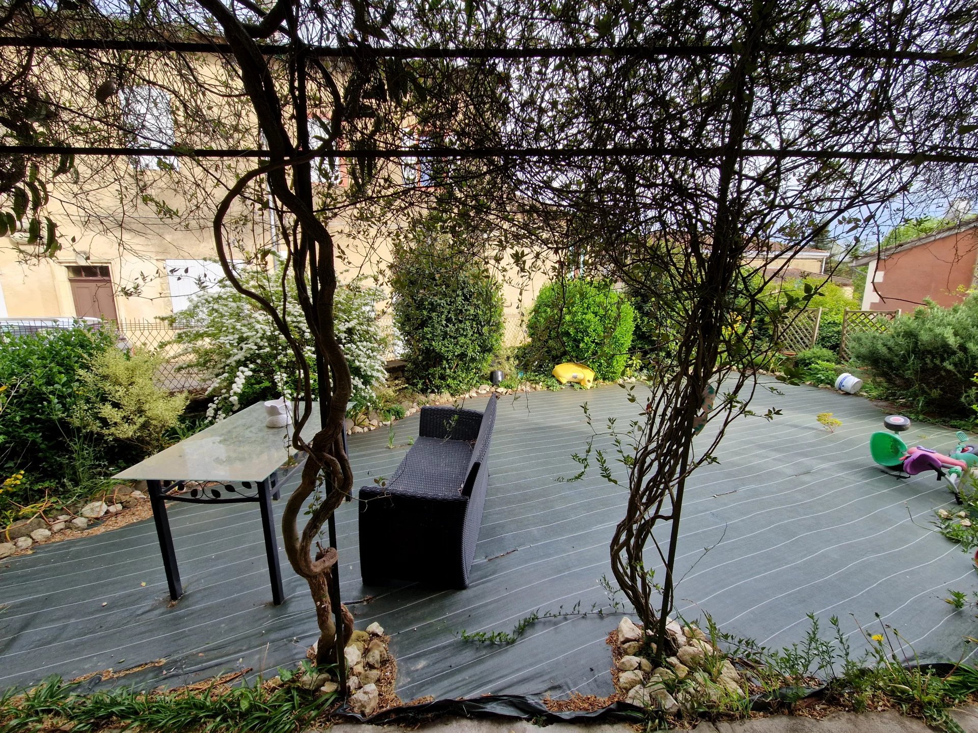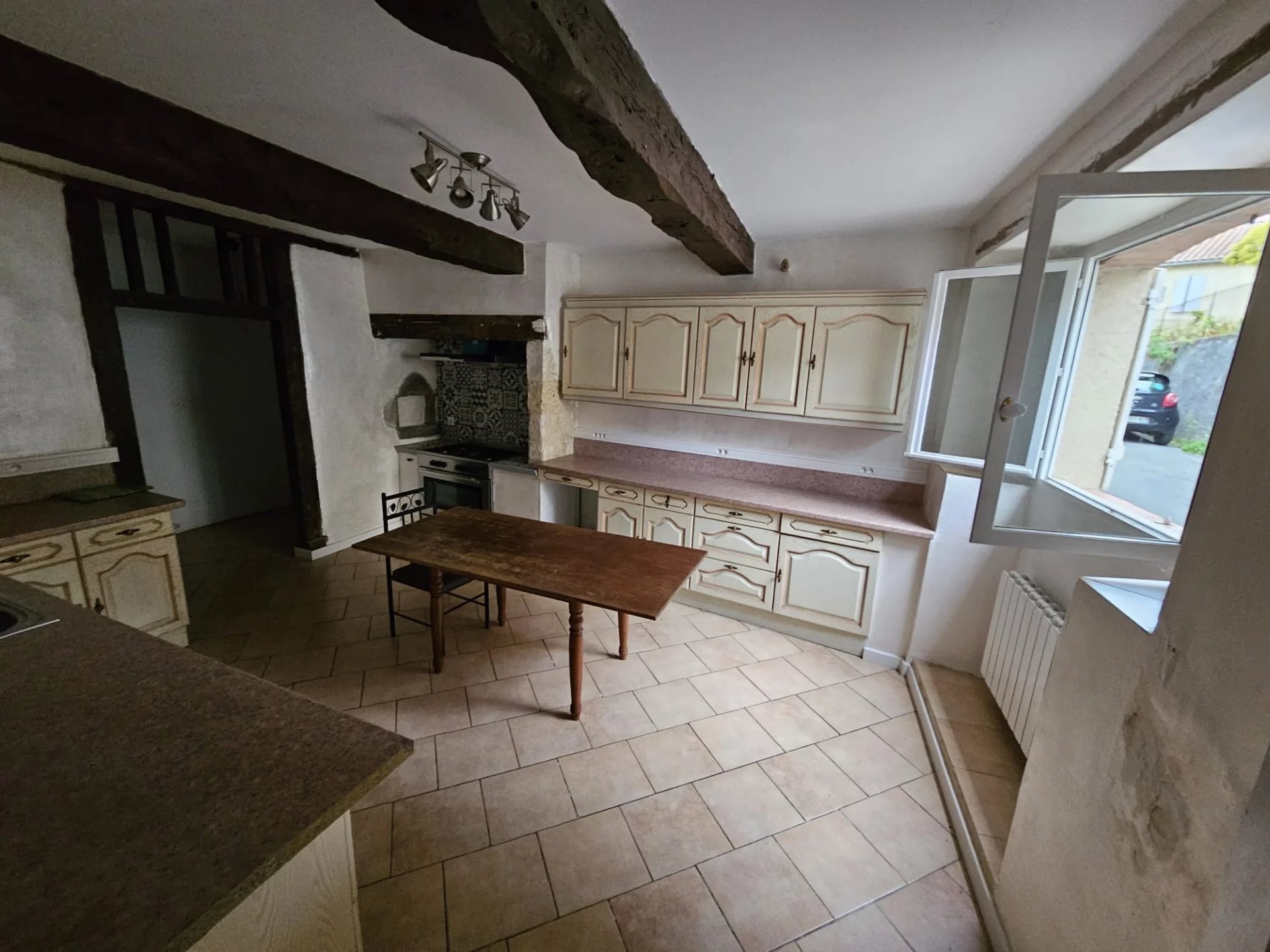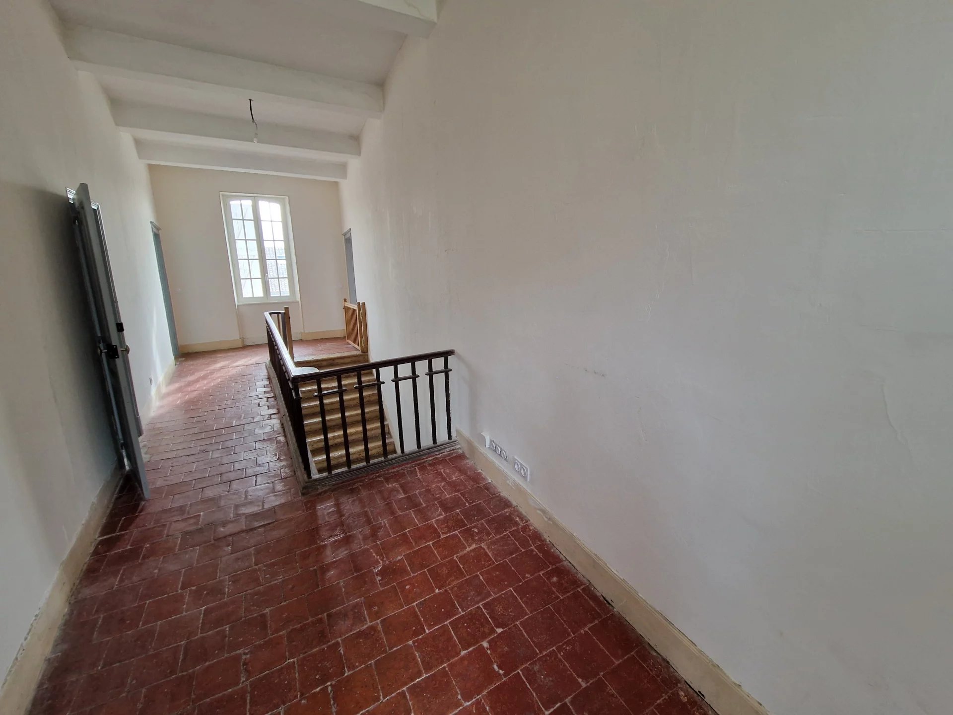 Dès l’entrée, le charme opère : superbe escalier en pierre, sols en tomettes, volumes authentiques et chaleureux. La maison offre une grande cuisine équipée et une vaste pièce de vie lumineuse ouvrant directement sur un jardin intime et joliment aménagé.