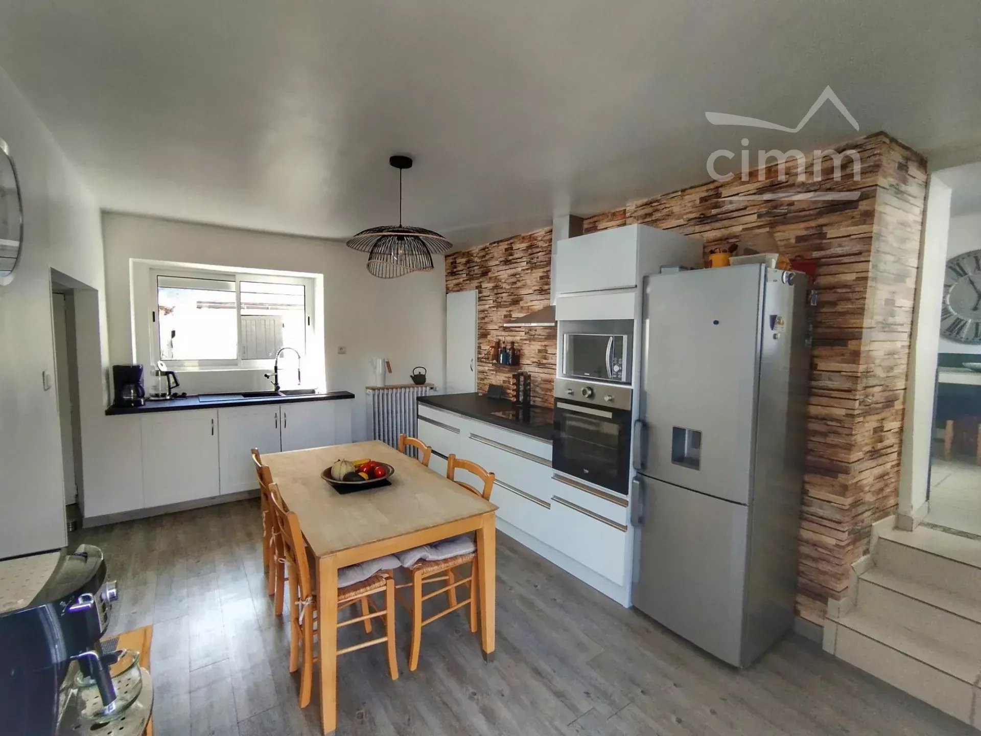 D’une surface habitable de 125 m², elle est constituée au rez-de-chaussée d’une cuisine aménagée et équipée de 18 m², d’un séjour de 21 m², d’une salle d’eau, de toilettes séparées et d’une chaufferie/buanderie.