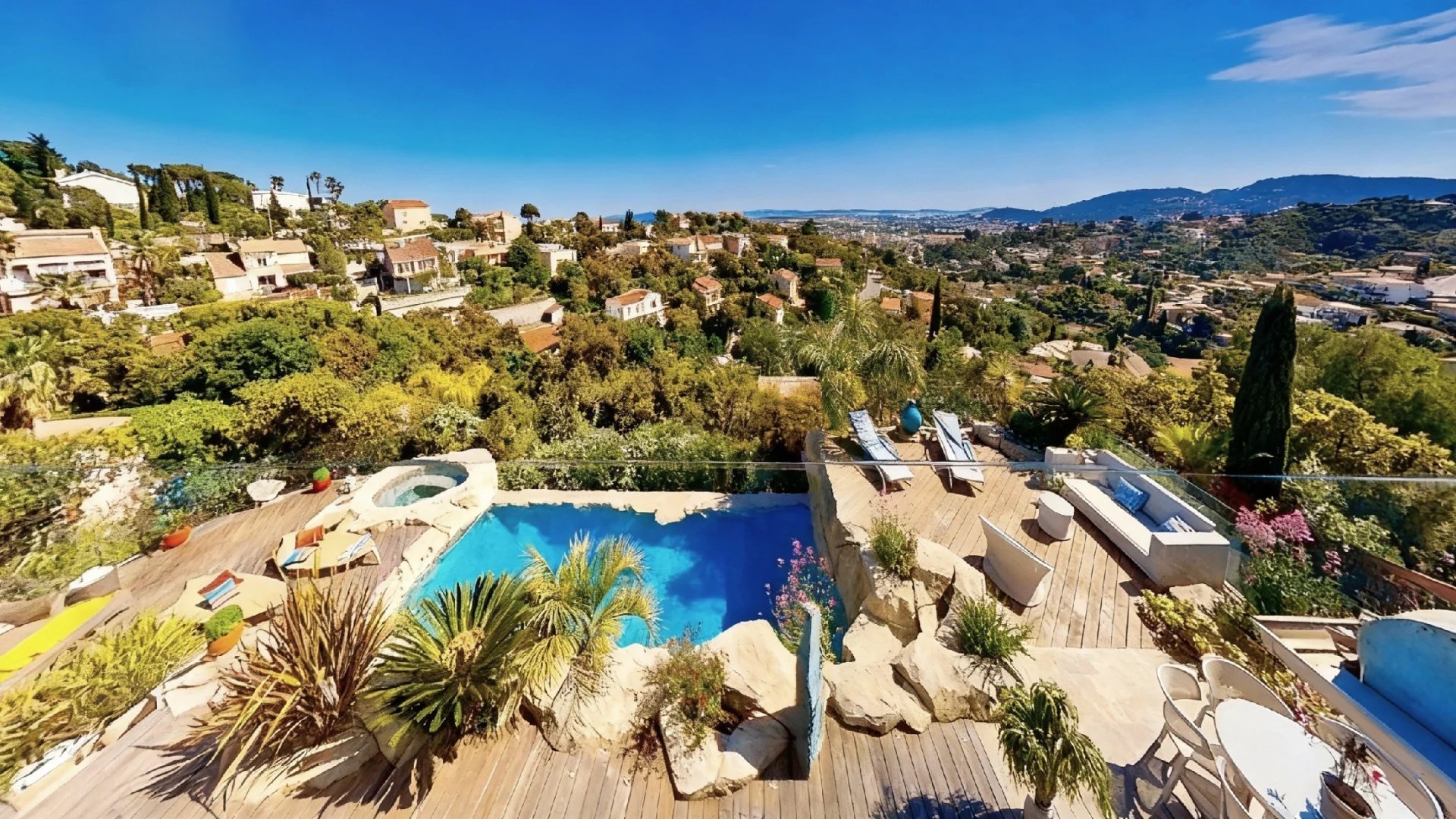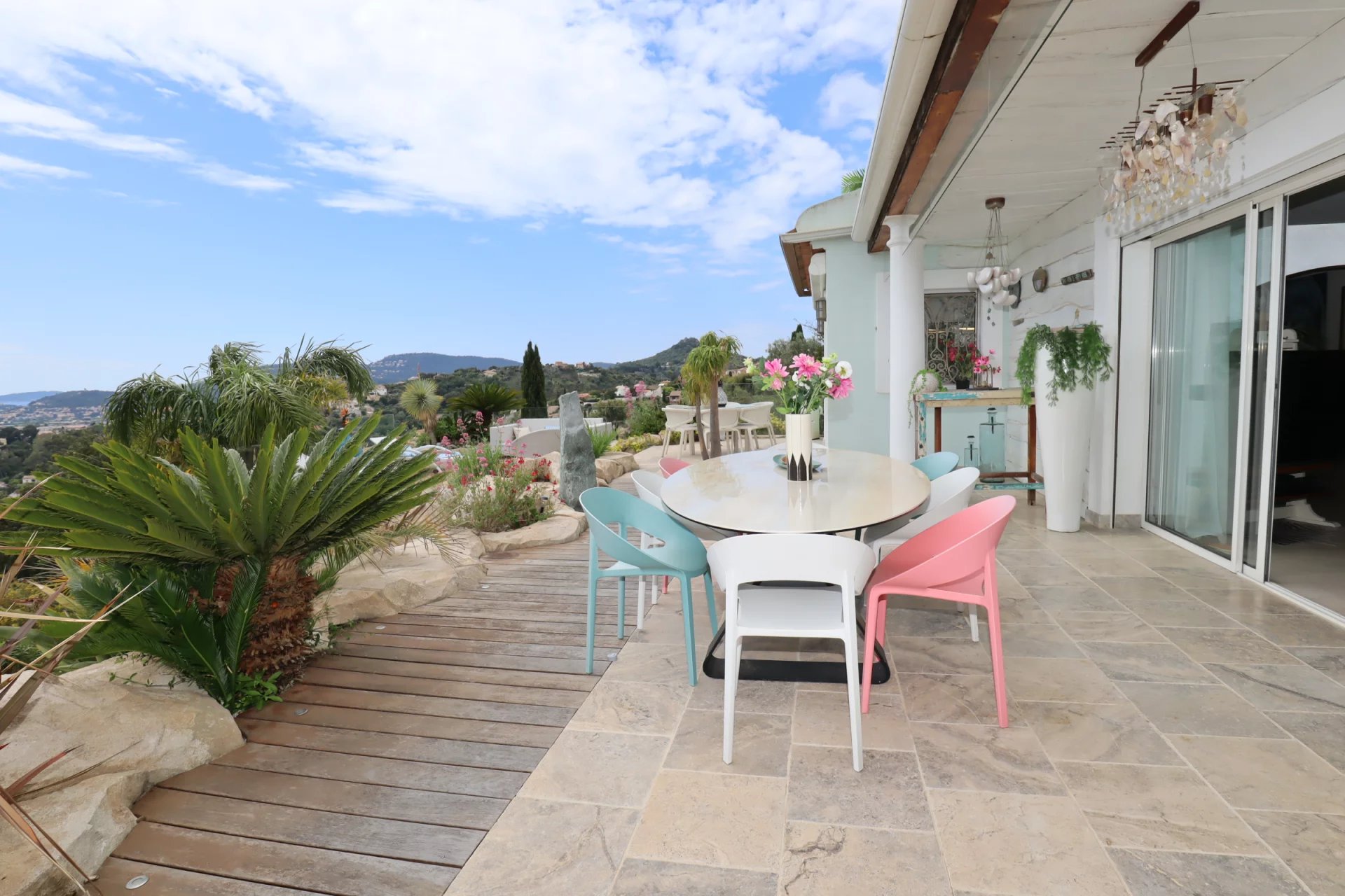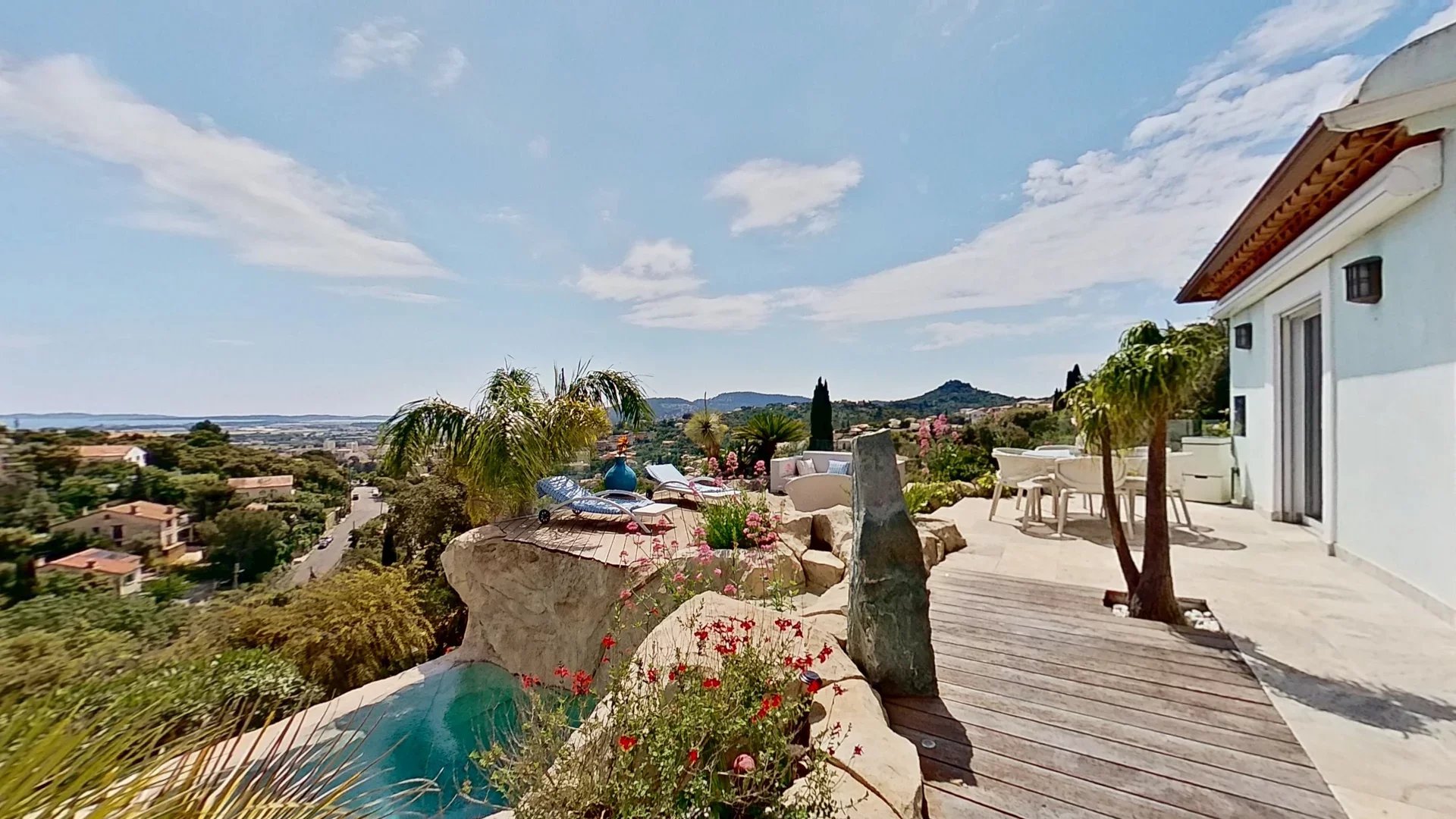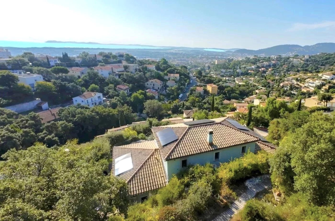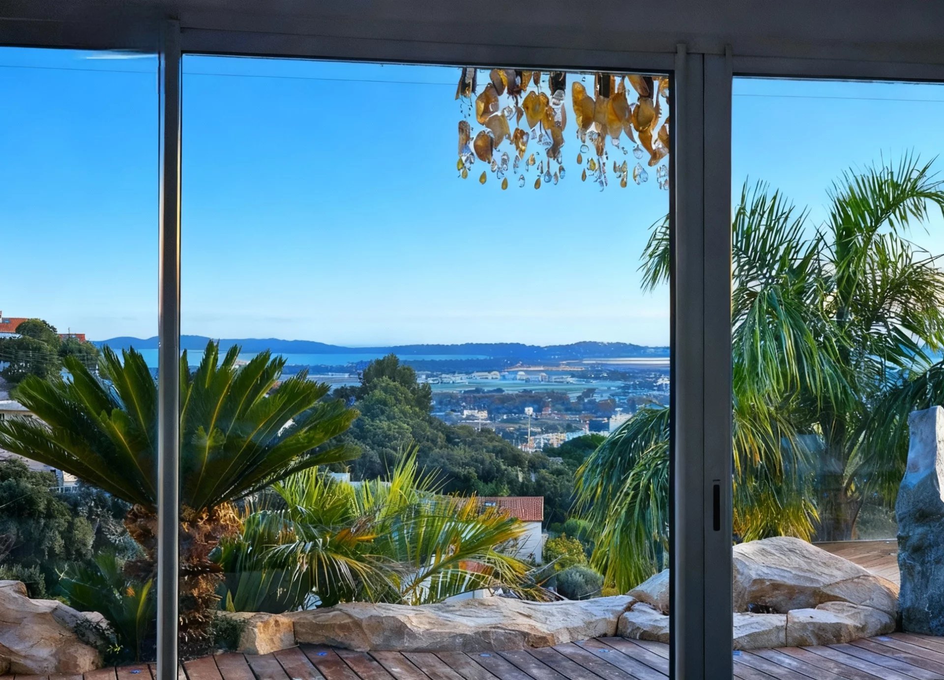 - Vue mer panoramique exceptionnelle sur le Tombolo, le Château, la Villa Noailles et les Îles d’Or