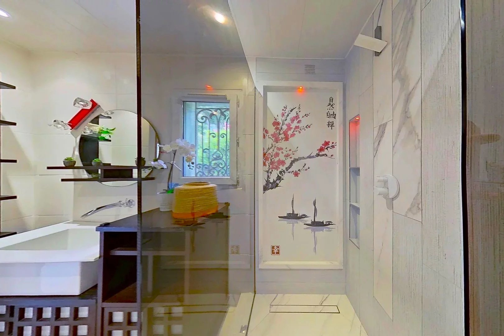 Une salle d’eau au style japonisant complète cet espace, épuré et harmonieux.