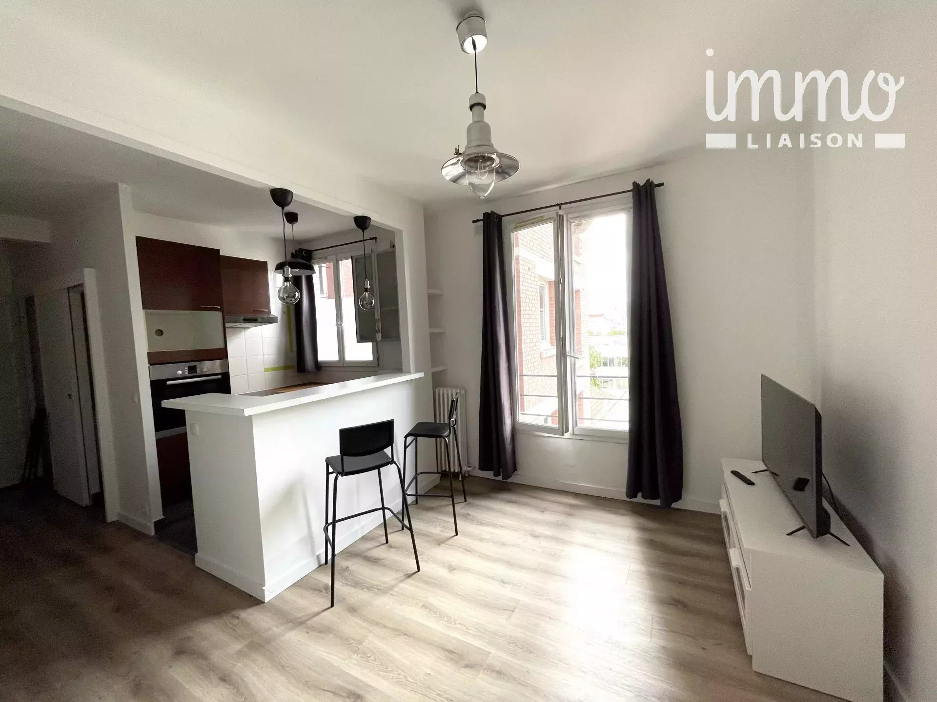Clichy. Exclusivité By Aurel. À moins de 10 mn à pied du métro Mairie de Clichy et la gare de Clichy Levallois, dans un bel immeuble en briques, typique de 1900, beau studio de 27,04 m2 au 4 ème étage sans ascenseur. Il se compose ainsi : entrée avec grands placards, toilettes séparés, salle d’eau, cuisine aménagée et équipée ouverte sur séjour/ chambre exposés Sud Ouest. Une cave en sous-sol complète ce bien.