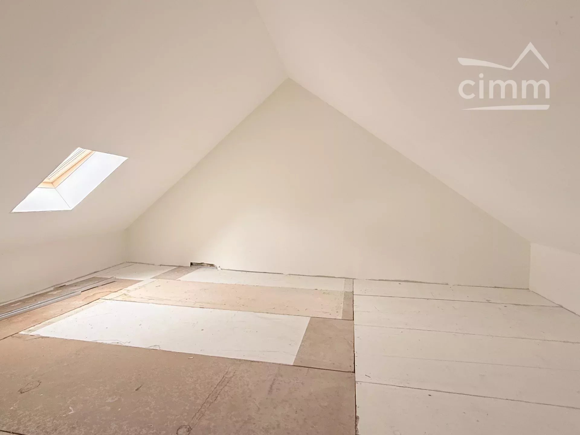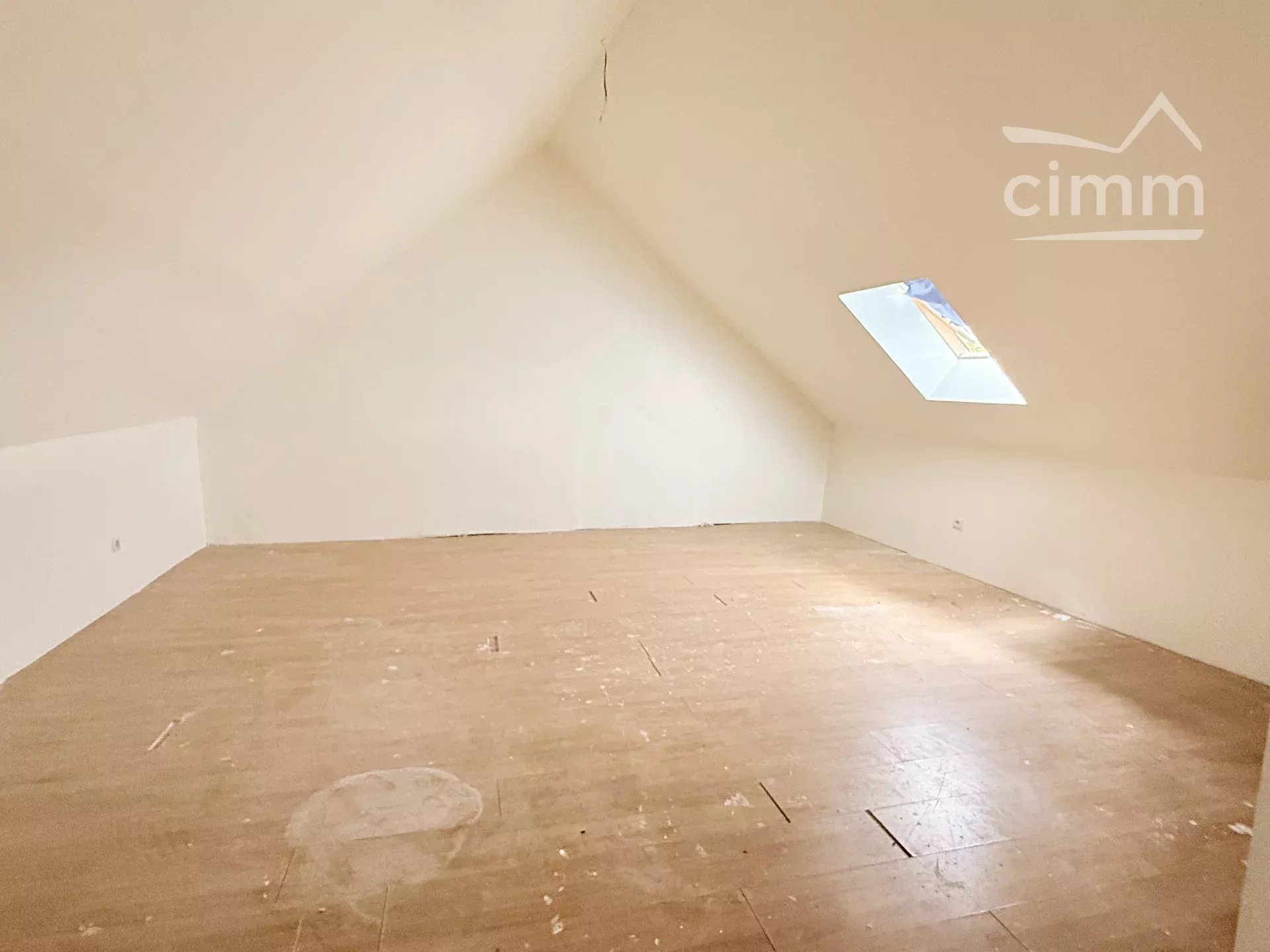 À l’étage, un large palier distribue plusieurs pièces : une grande chambre de 25 m², une salle d’eau à repenser, deux autres chambres confortables ainsi qu’un bureau/chambre supplémentaire. Plus haut, les combles ont été aménagés pour accueillir deux chambres mansardées, idéales pour un coin ado, une salle de jeux ou un espace détente.