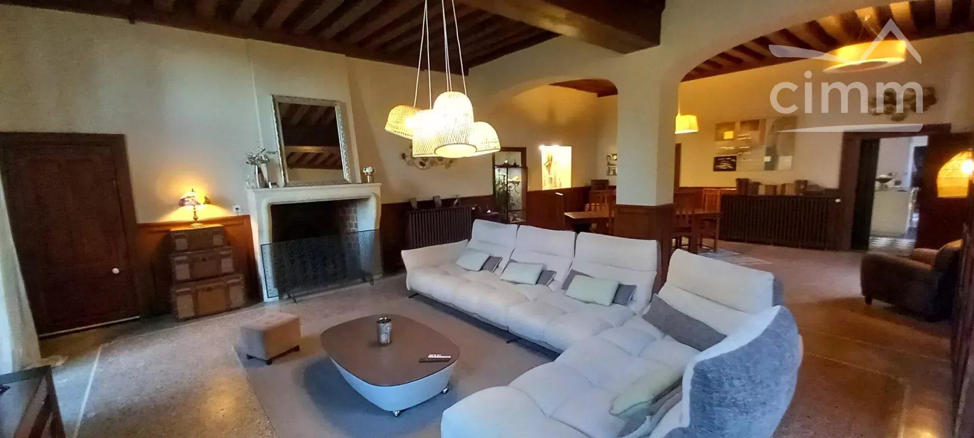 • Rez-de-chaussée : Vous serez accueilli par une belle entrée desservant 2 chambres avec une salle de douche et un toilette indépendant. La cuisine, entièrement équipée et aménagée, ravira les amateurs de gastronomie. Le grand séjour de 70 m², baigné de lumière, vous invite à la détente grâce à sa cheminée majestueuse et à ses portes fenêtres s'ouvrant sur les 2 terrasses.