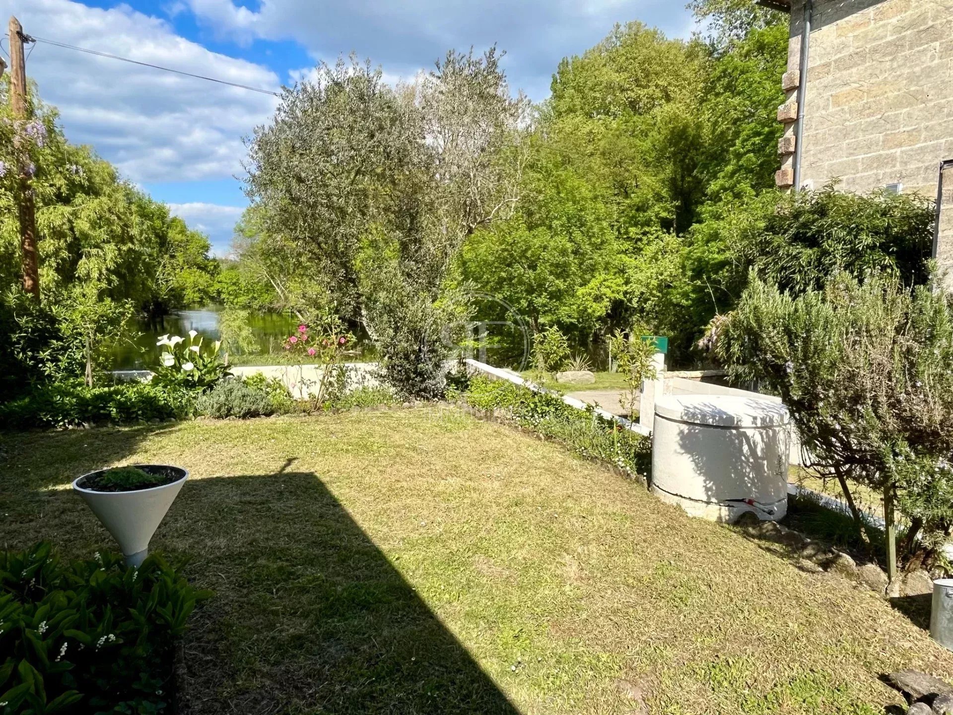 L'extérieur, parfaitement aménagé avec une terrasse, un jardin (irrigable grâce à un puits), un cabanon et un cagibi, vous offrira un espace de détente et de calme, avec vue sur la Dronne.