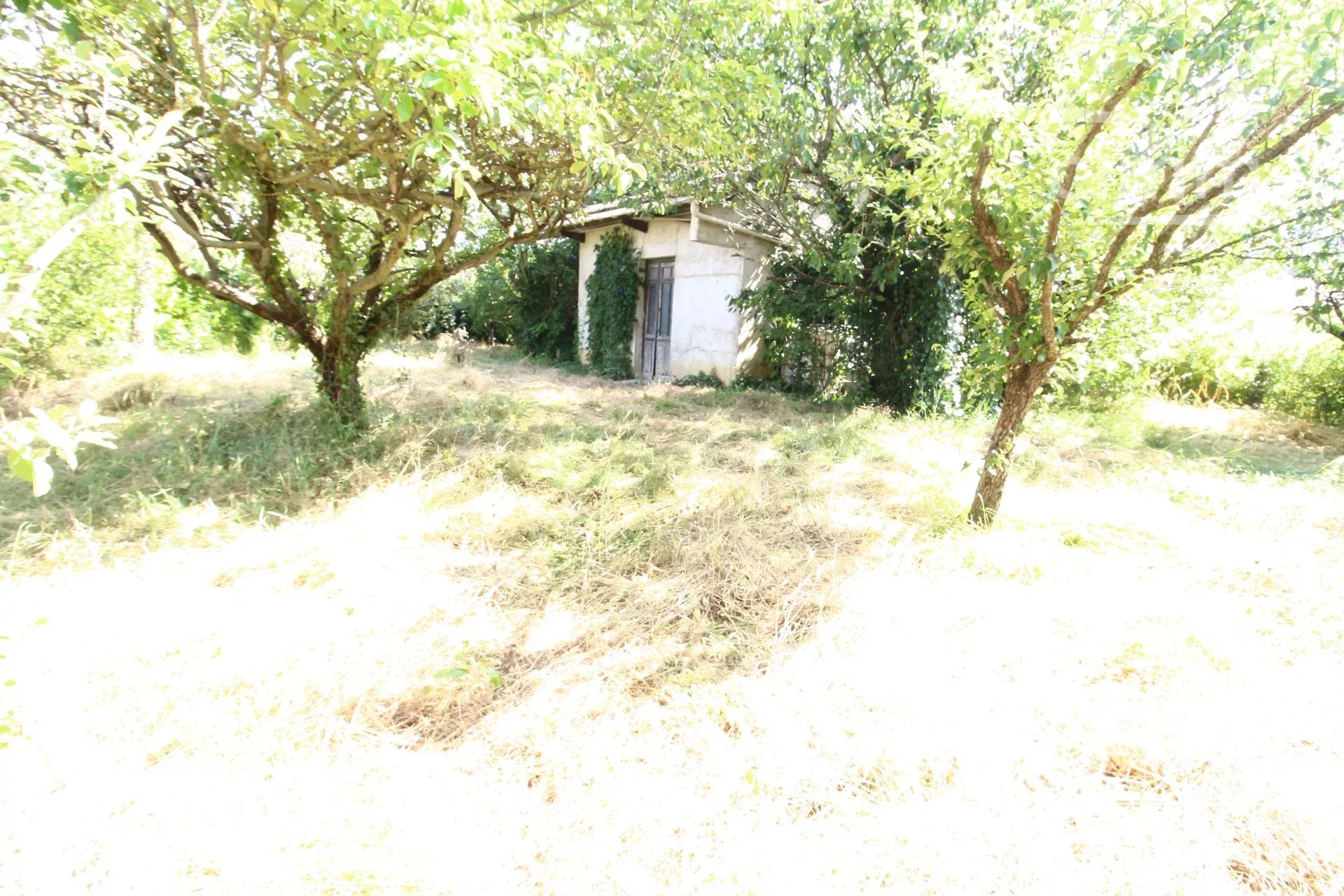 A vendre une grande maison en pierre avec un jardin clôturé, un grand garage de 132m² et une grange de 30m².