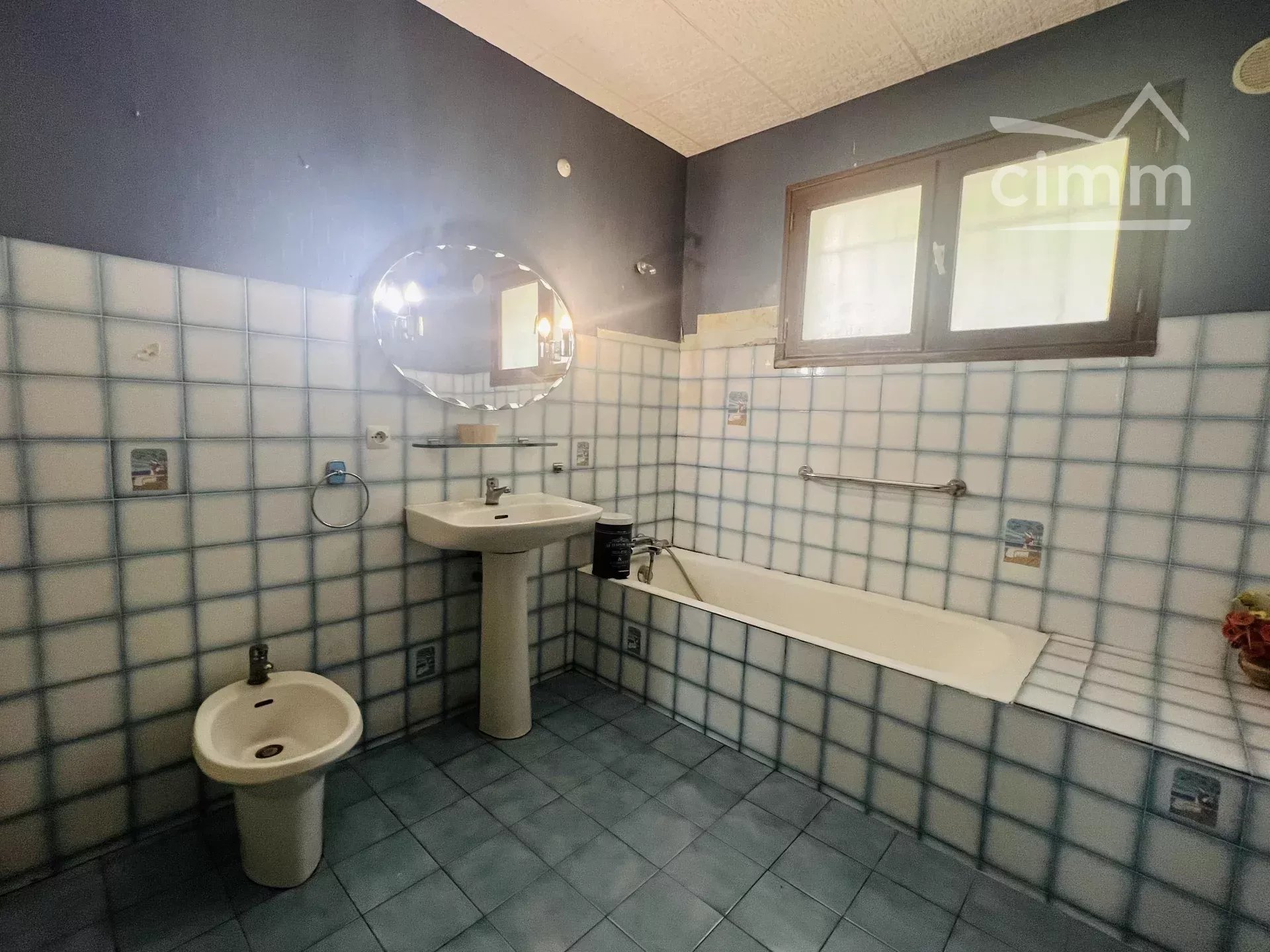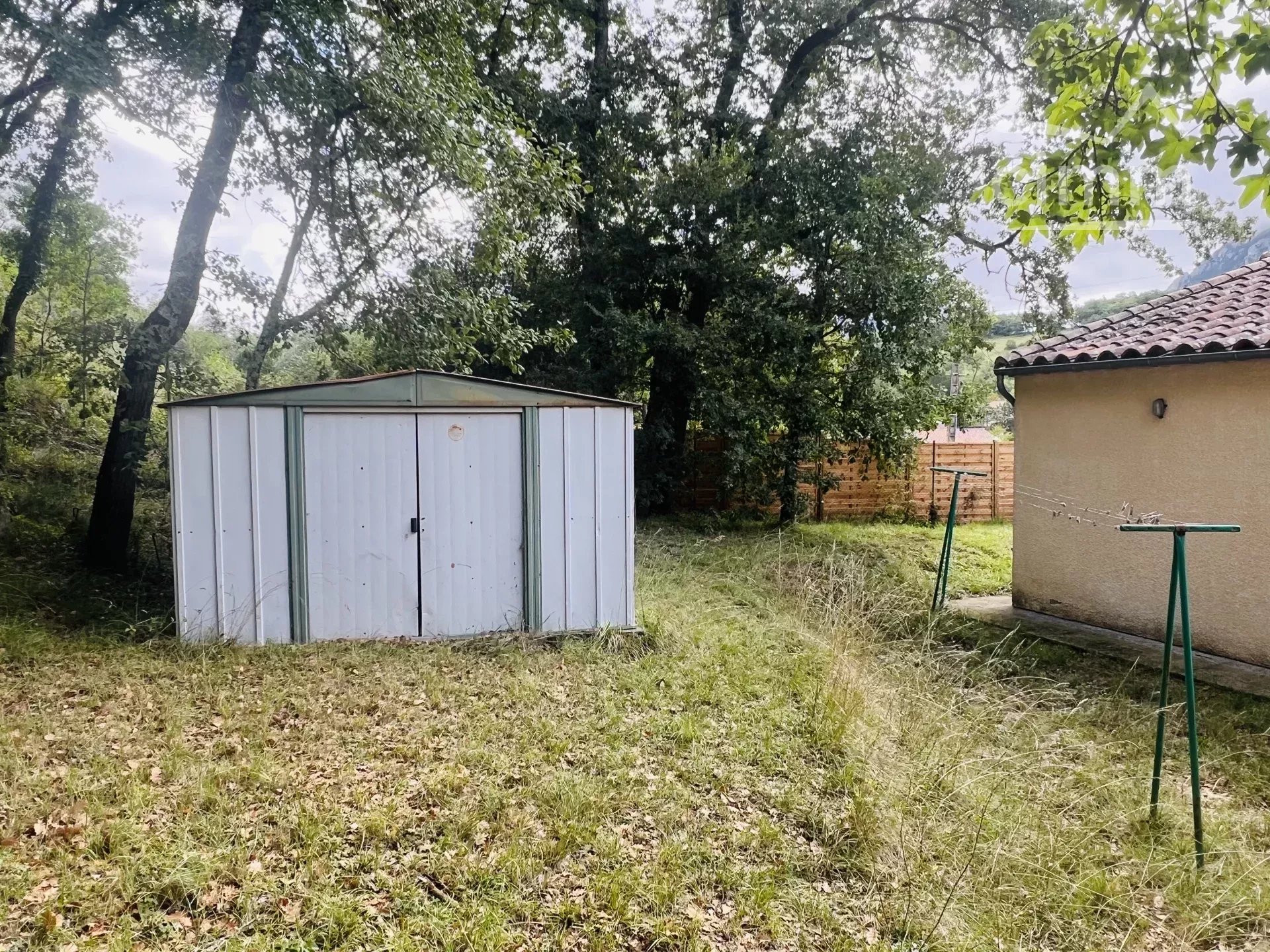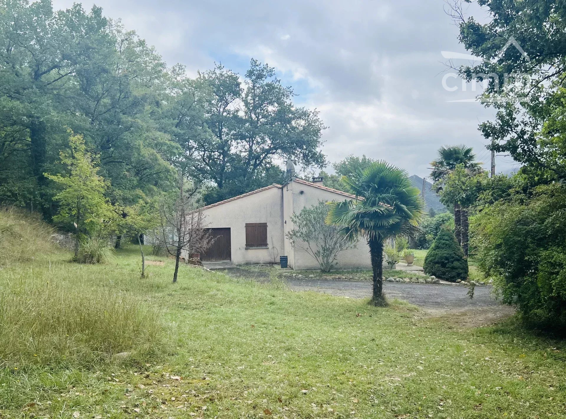 La propriété , bordée par un petit ruisseau qui coule en hiver, est protégée par la montagne et abrite des arbres majestueux. Construite en 1985 par les Caux frères, la construction est de bonne facture . Elle dispose d'un séjour avec cheminée, d'une cuisine séparée, de 3 chambres, d'un bureau, d'une salle d'eau avec baignoire, d'un WC et d'un garage accessible directement depuis la maison. Un atelier extérieur complète ce bien.