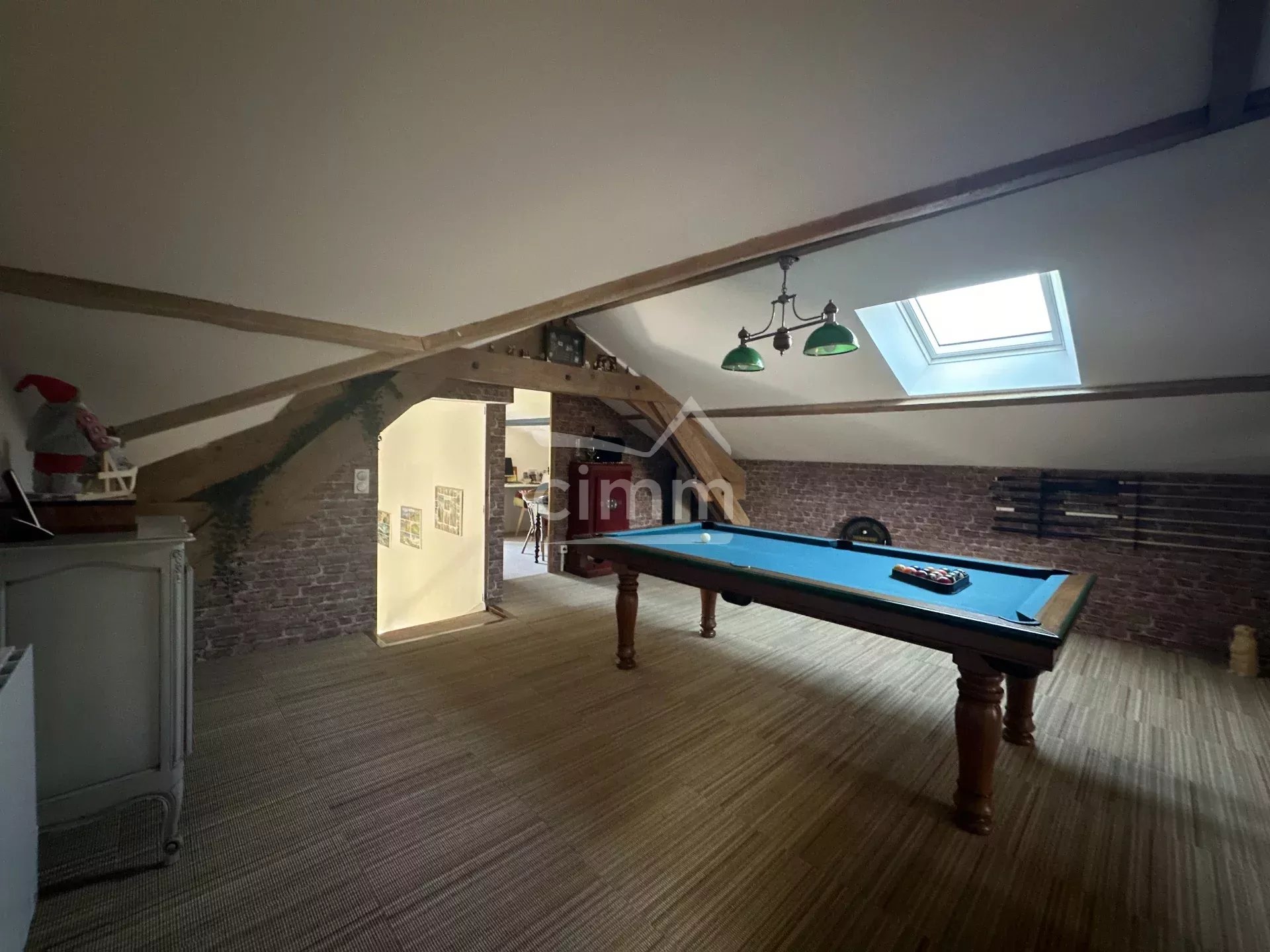 L’ensemble dispose également d’une annexe : maison en R+1 comprenant en RDC 5 garages dont 4 en locatif et à l’étage 2 appartements à rénover entièrement. La toiture est équipée de panneaux solaires à rendement ou utilisation pour la maison.