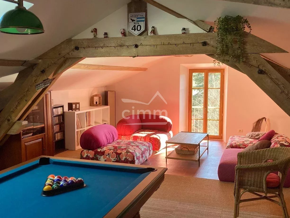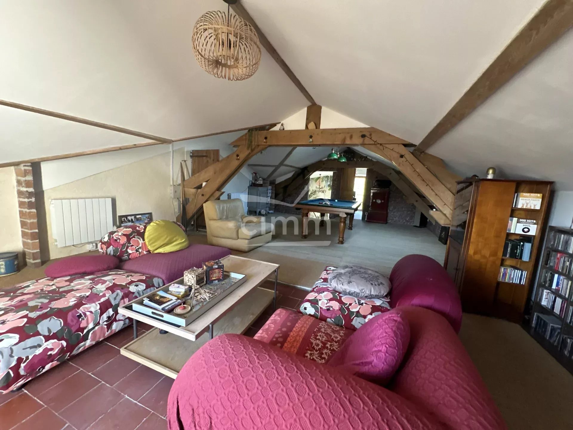 Le dernier niveau est dédié aux loisirs : ce grenier qui a conservé sa belle charpente a été aménagé en plusieurs espaces : un bureau, un salon de billard, une salle de lecture et jeux et enfin une salle de cinéma.