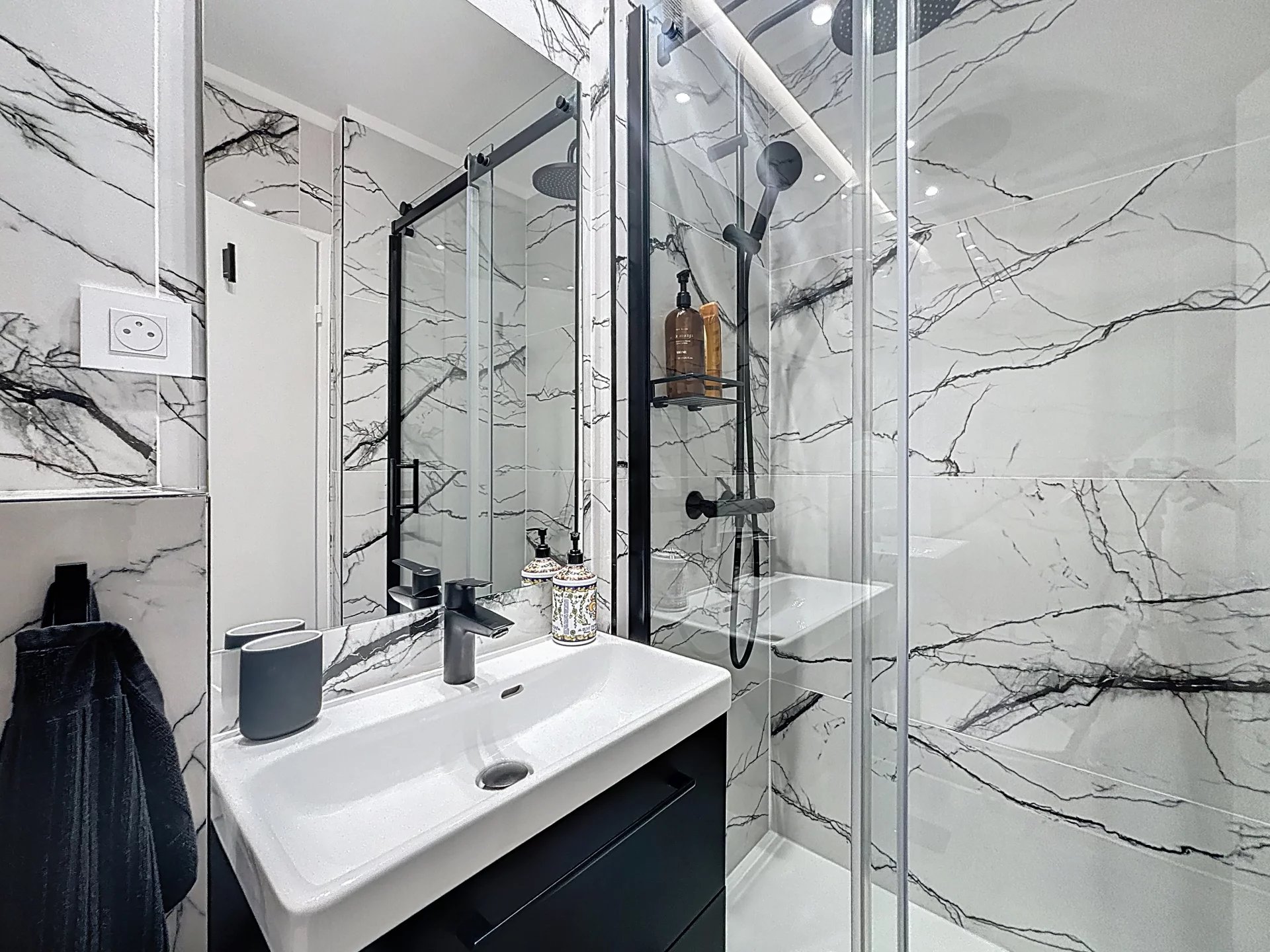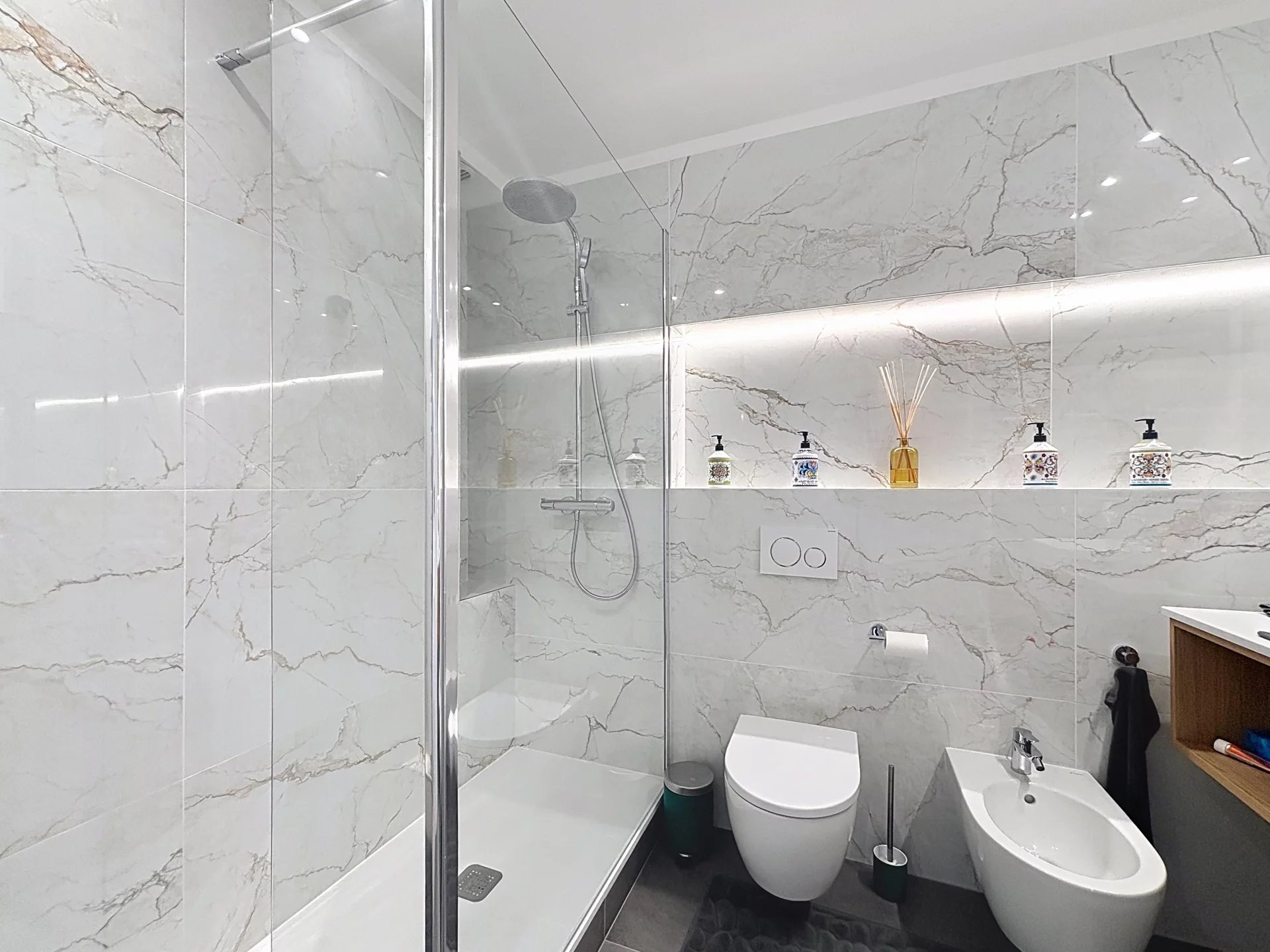 douche avec WC bidet et douche italienne.